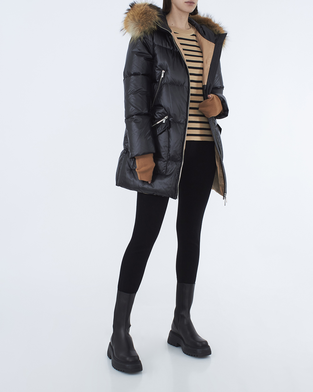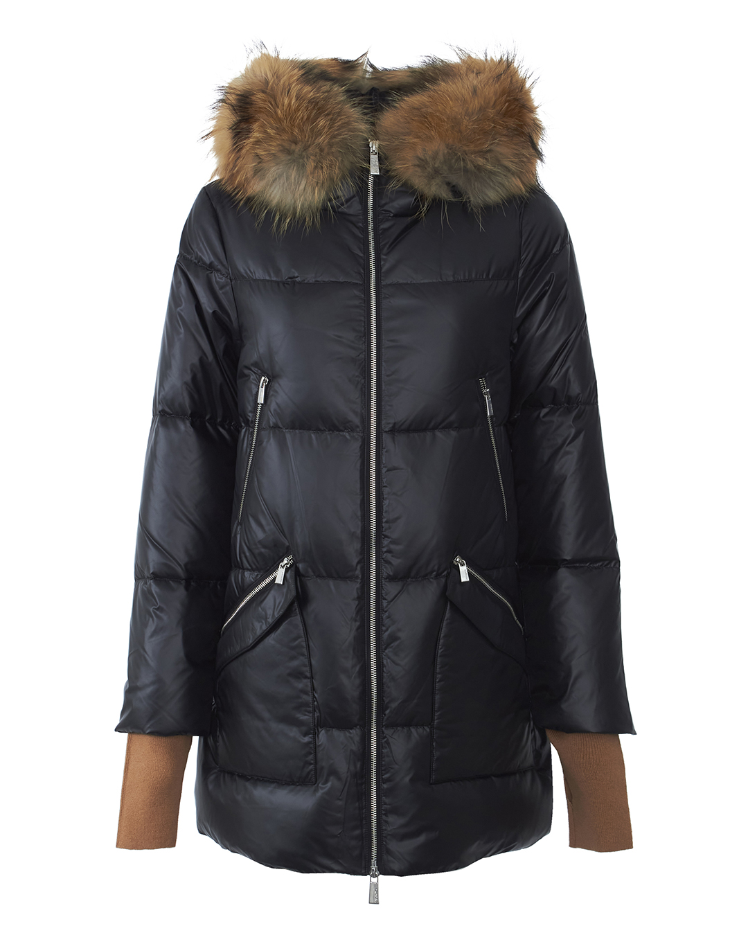 Пальто-пуховик MAX&MOI сшит из влагоотталкивающего нейлона коричневого оттенка. Модель прямого силуэта с застежкой на молнию и несколькими карманами дополнена трикотажными манжетами и объемным капюшоном с меховой отделкой.