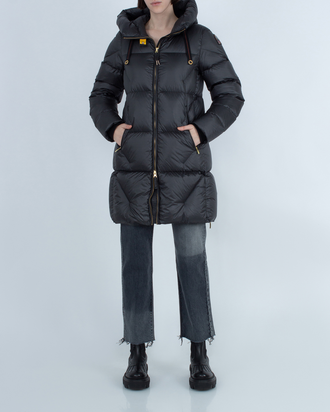 Пальто-пуховик Janet от Parajumpers – это длинная дутая модель непринужденного кроя оверсайз в современном молодежном стиле. Изделие прямого силуэта с застежкой на молнию дополнено двумя карманами на молниях и длинными рукавами с трикотажными манжетами. Пальто с воротником-стойкой, переходящим в объемный капюшон.