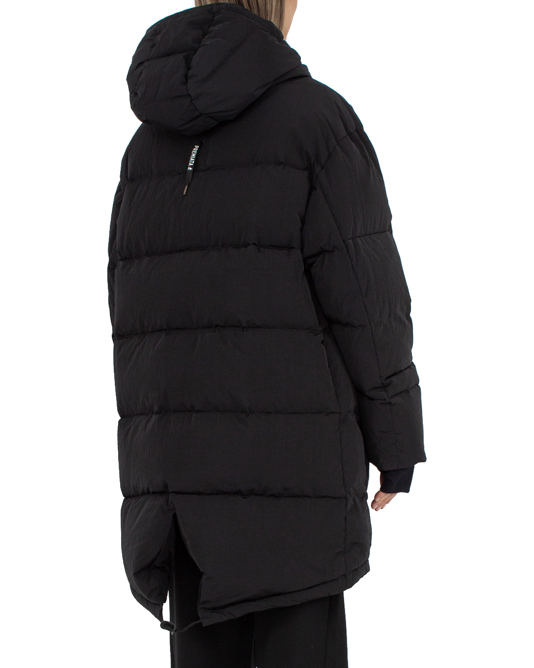 Дутая куртка-пуховик Premiata черного цвета сшита из прочного нейлона. Модель прямого силуэта с застежкой на молнию дополнена двумя карманами и капюшоном с завязками.