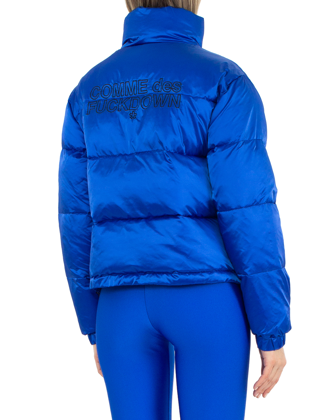 Дутая куртка COMME des FUCKDOWN из прочного нейлоны с вышивкой логотипа бренда. Модель укороченного силуэта с застежкой на молнию и двумя карманами по бокам.
