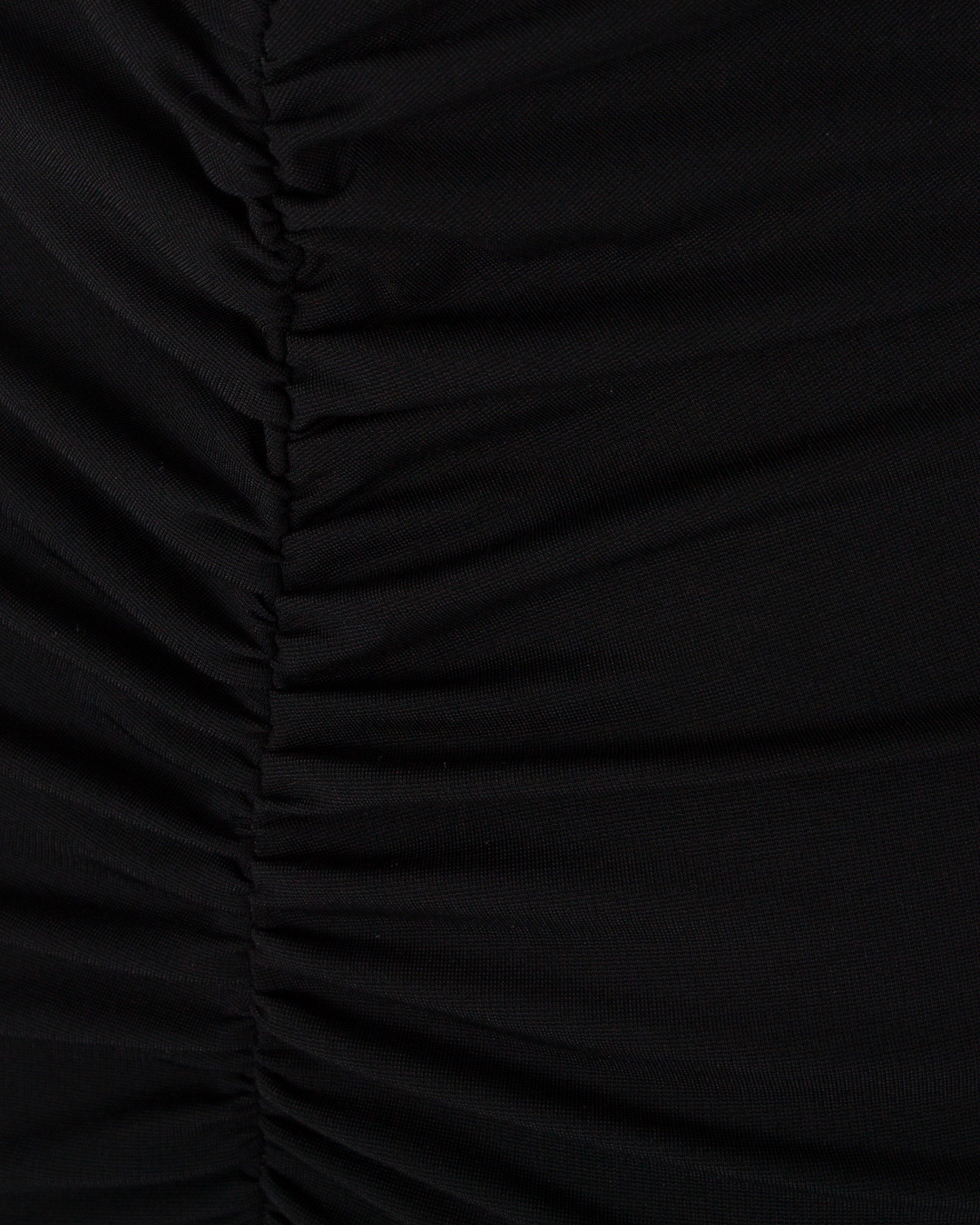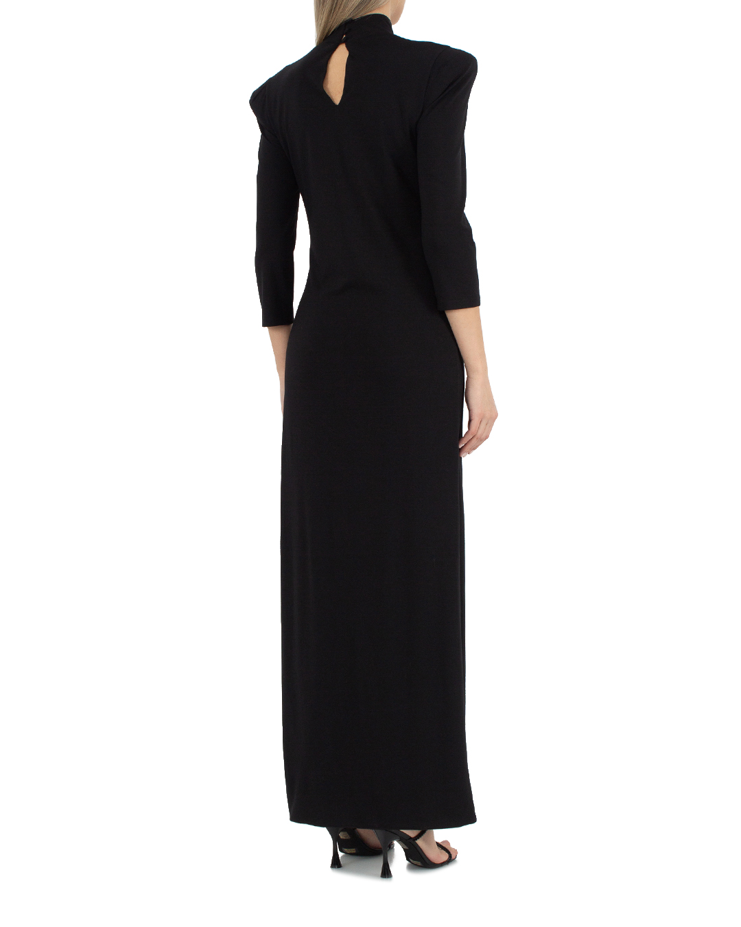 Платье макси ACTUALEE сшито из эластичного материала со сборкой по бокам. Изделие облегающего силуэта в вечернем стиле с высоким разрезом.