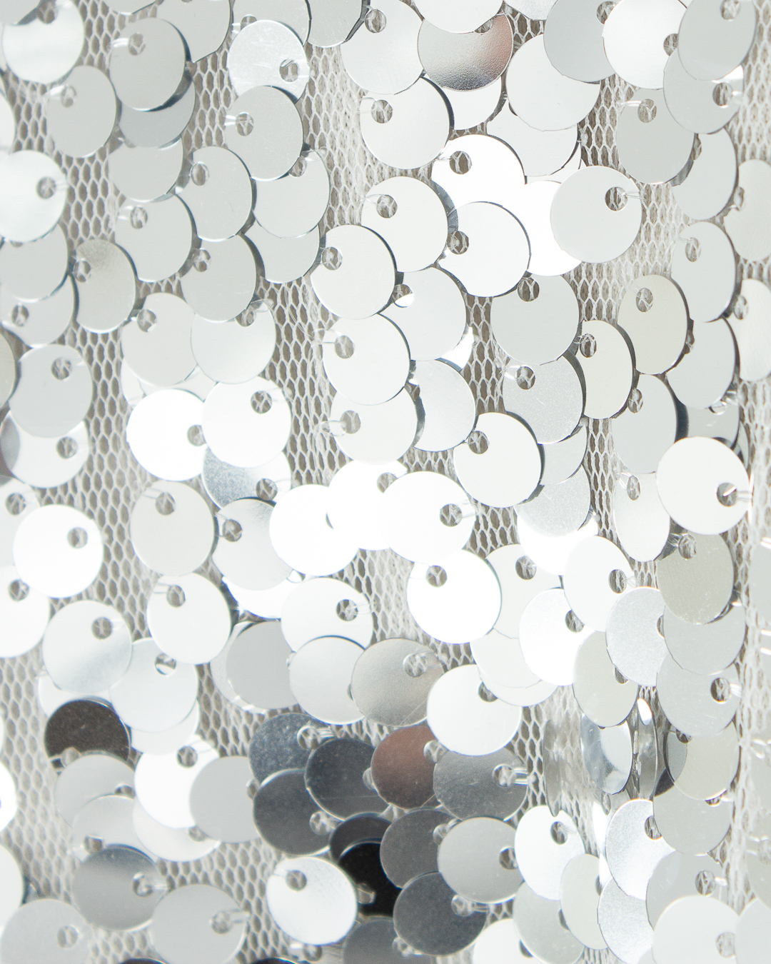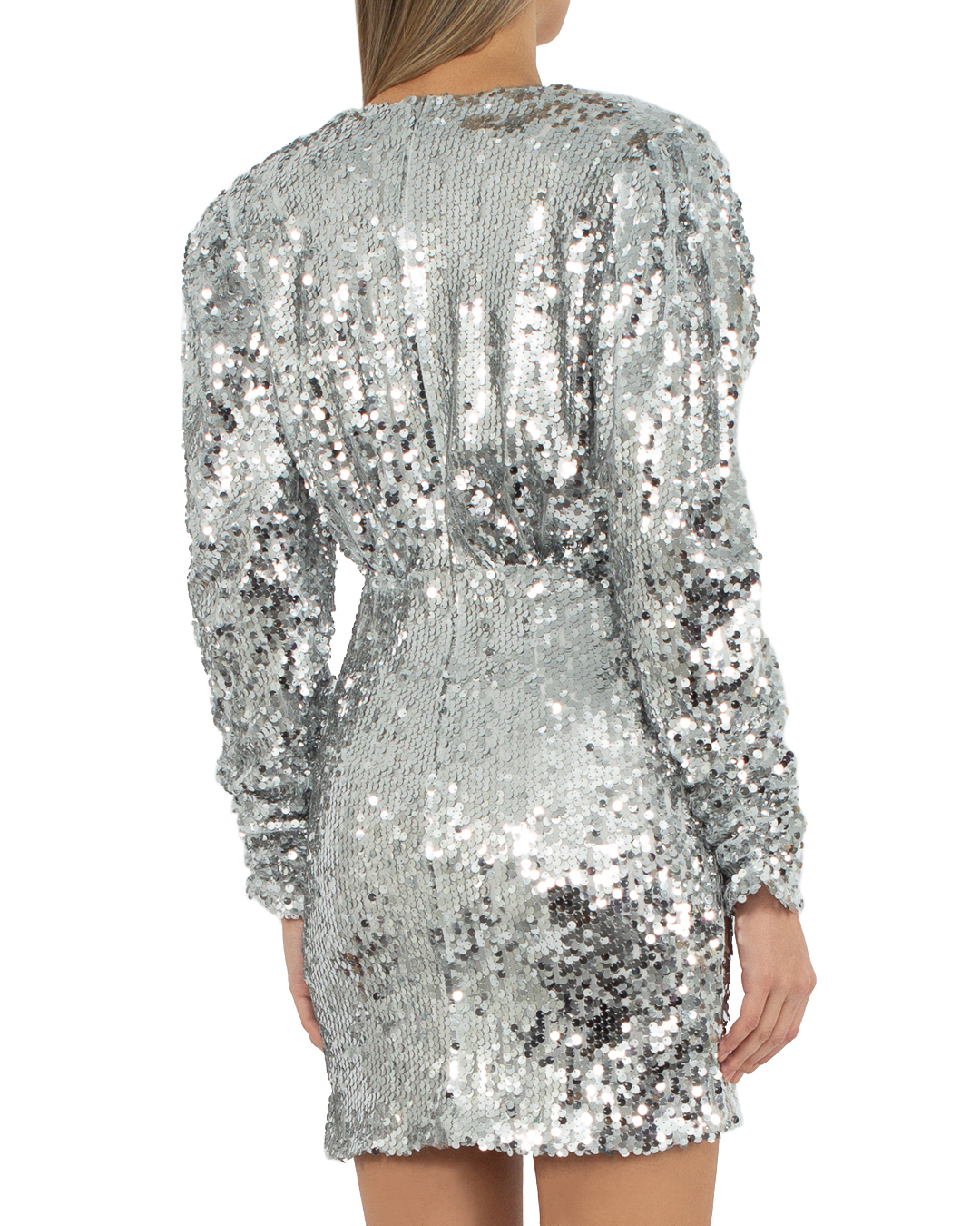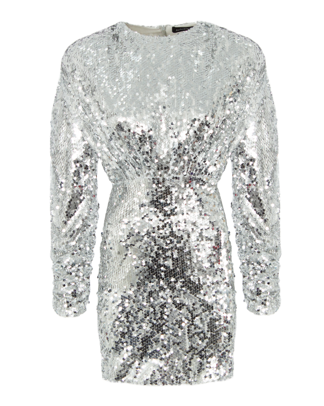 Платье мини ACTUALEE, расшитое пайетками серебряного оттенка. Модель с застежкой на спине на молнию.