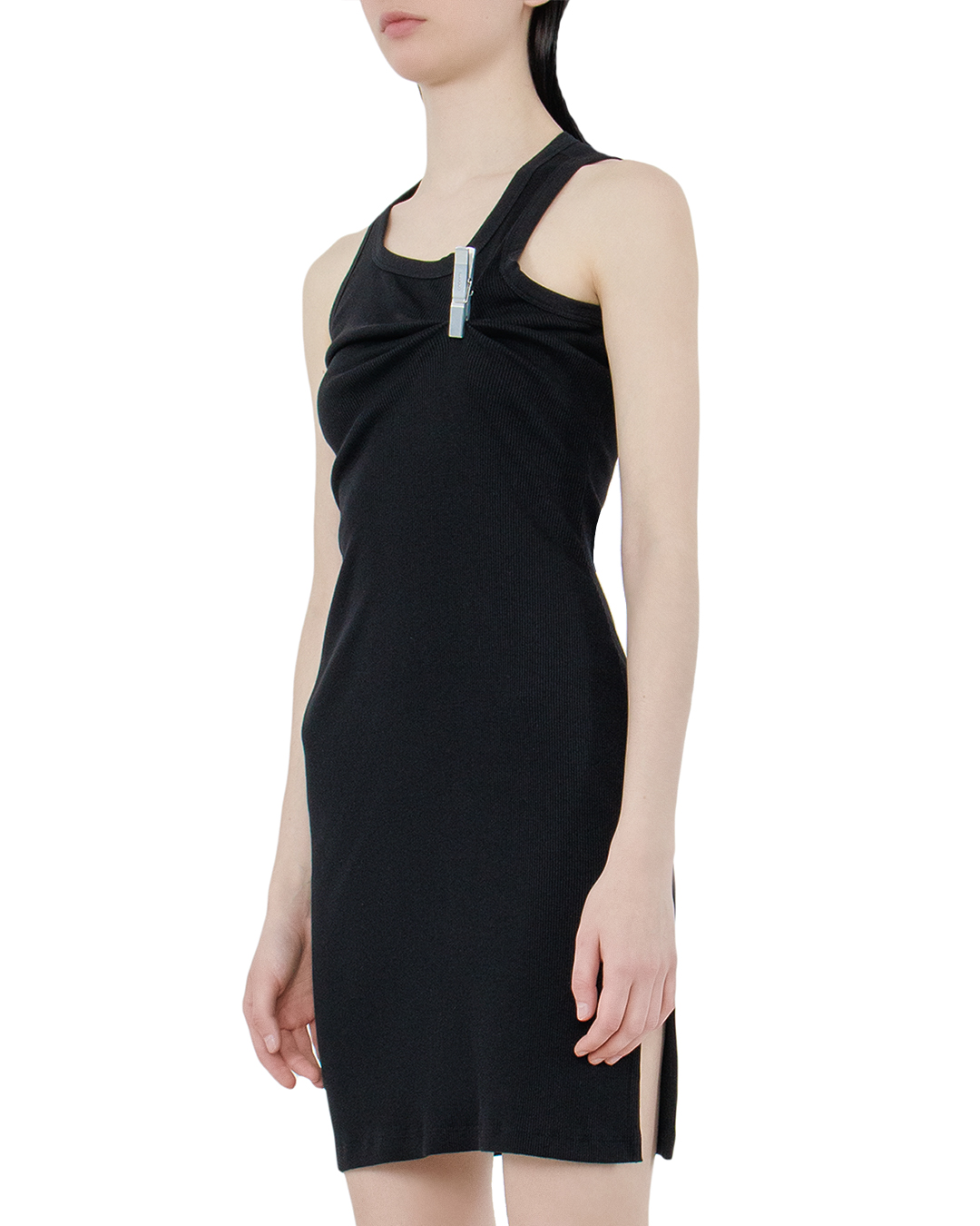Стильное платье мини черного цвета со сборками, выполнено из качественного хлопкового трикотажа в рубчик, который обеспечивает комфорт и отличную воздухопроницаемость. Плотный облегающий крой подчеркивает линии фигуры, акцентируя внимание на её достоинствах и создавая эффектный силуэт. Уникальной деталью этого платья является металлическая брошка в виде прищепки, которая добавляет нотку оригинальности и современности. Она служит не только стильным акцентом, но и функциональным элементом, позволяя вам экспериментировать с образом: прикрепите её к горловине или на пояс для создания индивидуального стиля. Платье идеально подходит для активной жизни — его можно носить как на работу, так и на вечерние мероприятия. Сочетайте его с кроссовками для повседневного образа или с элегантными туфлями на каблуке для более формального выхода. Благодаря универсальному черному цвету и текстуре в рубчик, это платье легко комбинируется с различными аксессуарами и верхней одеждой. Добавьте к нему яркий пояс или statement-украшения, чтобы завершить свой образ. Это платье станет незаменимым элементом вашего гардероба, позволяя вам выглядеть стильно и уверенно в любой ситуации!