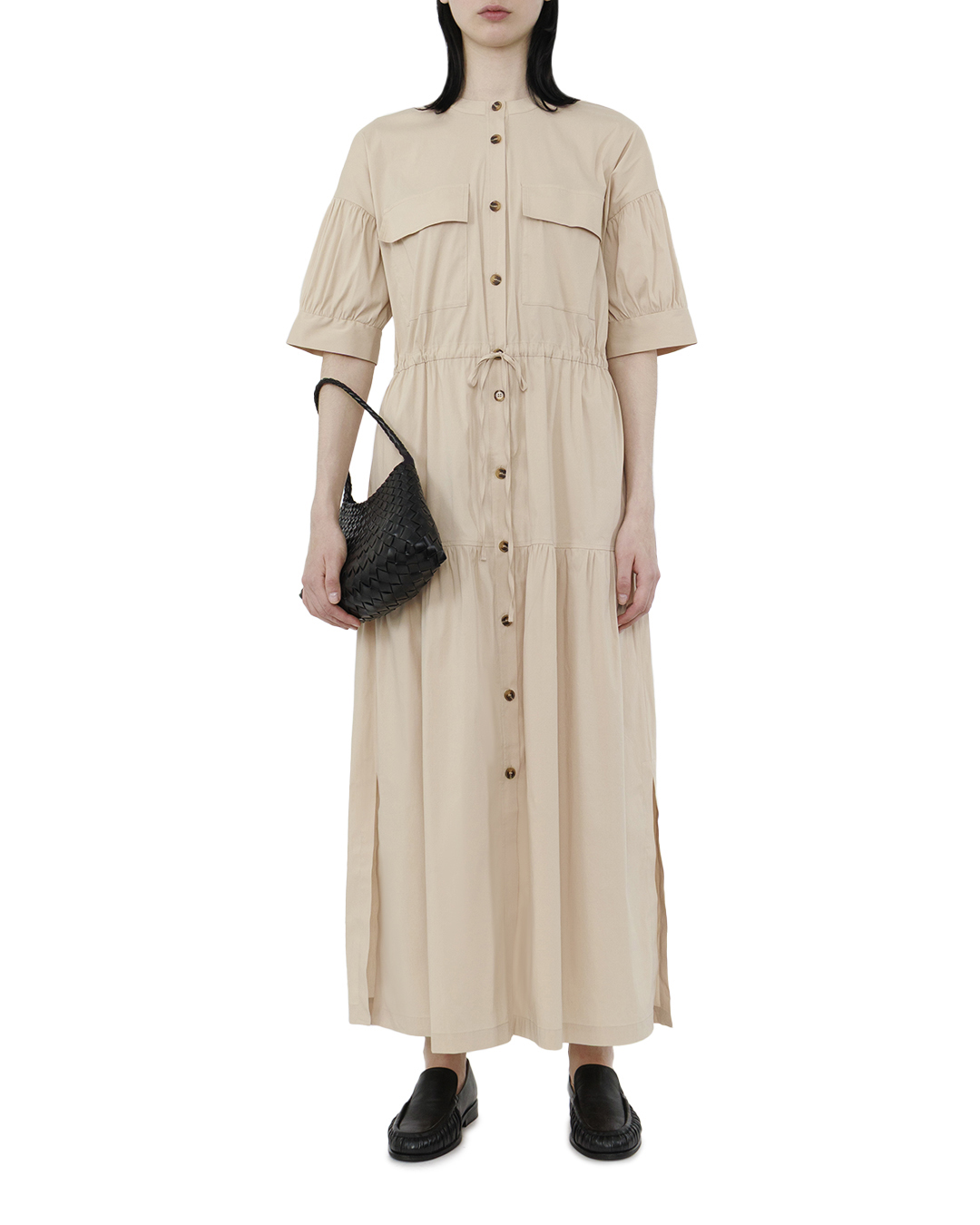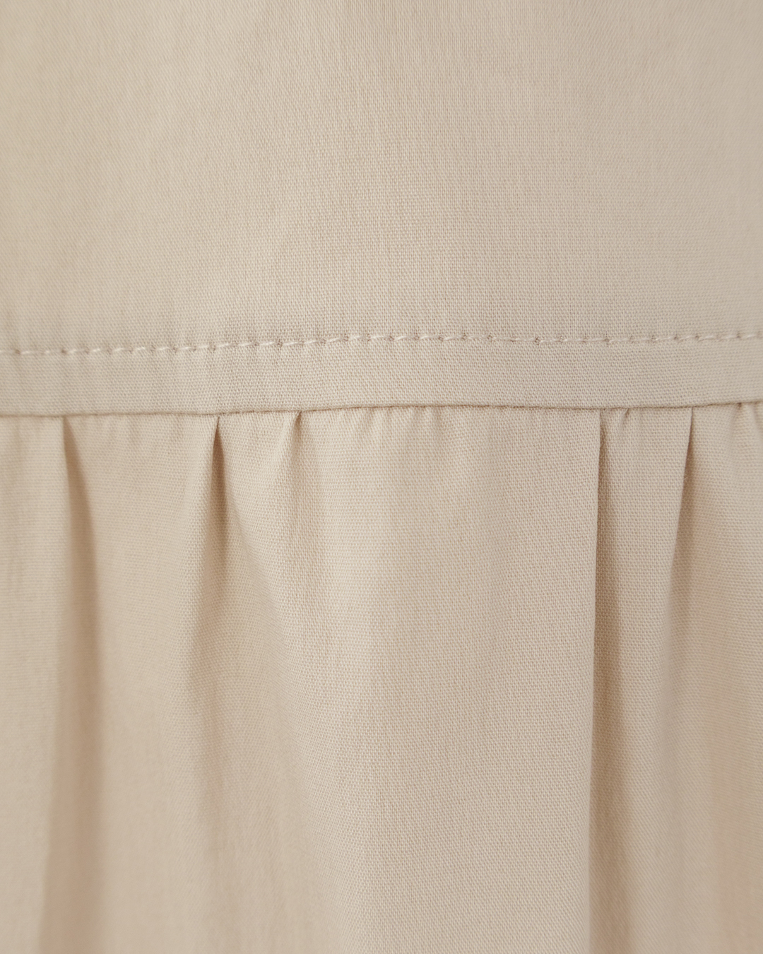 Стильное платье макси в бежевом цвете выполнено из легкого и приятного на ощупь хлопка, что делает его идеальным выбором для теплых дней. Дизайн в стиле сафари включает в себя множество функциональных деталей, которые придают ему уникальный характер. Платье оснащено накладными карманами на груди, что добавляет практичности и стиля. Пуговицы по всей длине платья не только служат элементом дизайна, но и позволяют регулировать степень открытости. Короткие рукава обеспечивают комфорт и свободу движений, а завязки на талии подчеркивают фигуру и создают эффектный силуэт. Разрезы по бокам добавляют динамичности и делают платье более игривым. Это изделие отлично подойдет как для повседневной носки, так и для прогулок или встреч с друзьями. Сочетайте его с сандалиями или кроссовками для создания стильного образа в стиле сафари!
