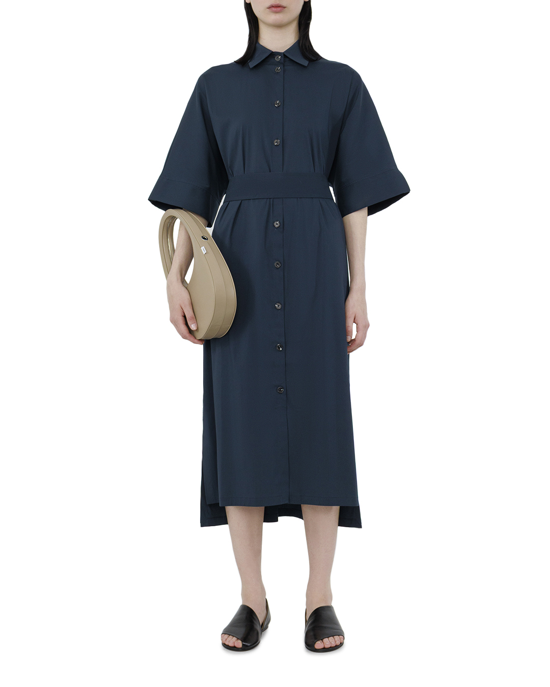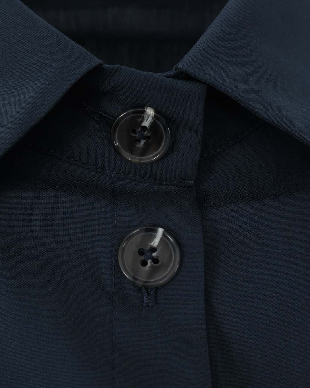 Элегантное платье-рубашка длины миди — идеальный выбор для тех, кто ценит стиль и комфорт. Изготовленное из хлопка стрейч с добавлением нейлона, оно обеспечивает отличную посадку и свободу движений, а также приятные ощущения на коже. Платье представлено в насыщенном цвете индиго, который придает образу глубину и утонченность. Модель на пуговицах спереди позволяет легко регулировать степень открытости, а боковые разрезы добавляют нотку игривости и делают платье более динамичным. Широкий съемный пояс-лента подчеркивает талию и позволяет создавать различные силуэты — от свободного до более приталенного. Это платье идеально подходит как для повседневной носки, так и для особых случаев, сочетаясь с различными аксессуарами и обувью. Добавьте это стильное платье-рубашку в свой гардероб и наслаждайтесь универсальностью и комфортом в любой ситуации!