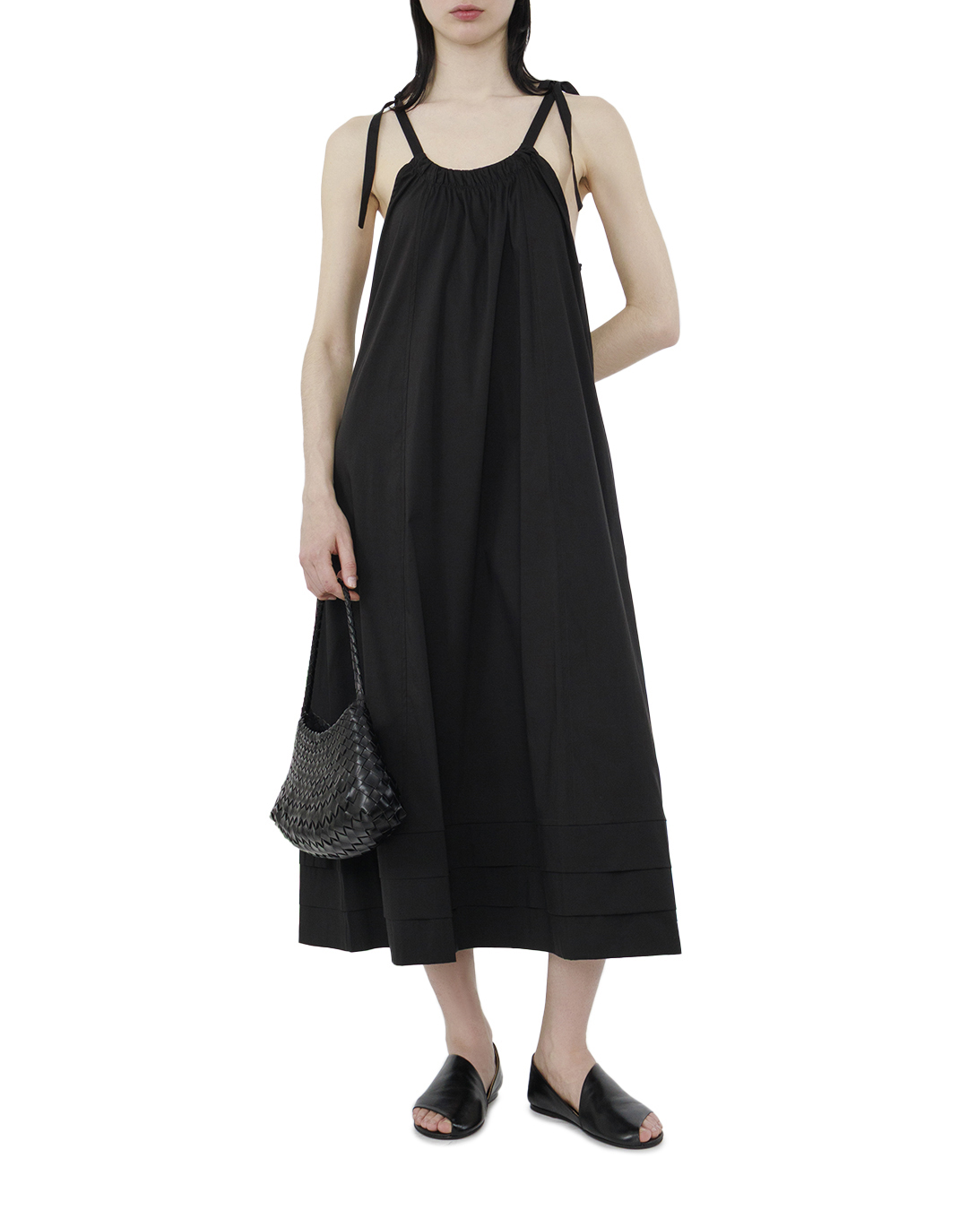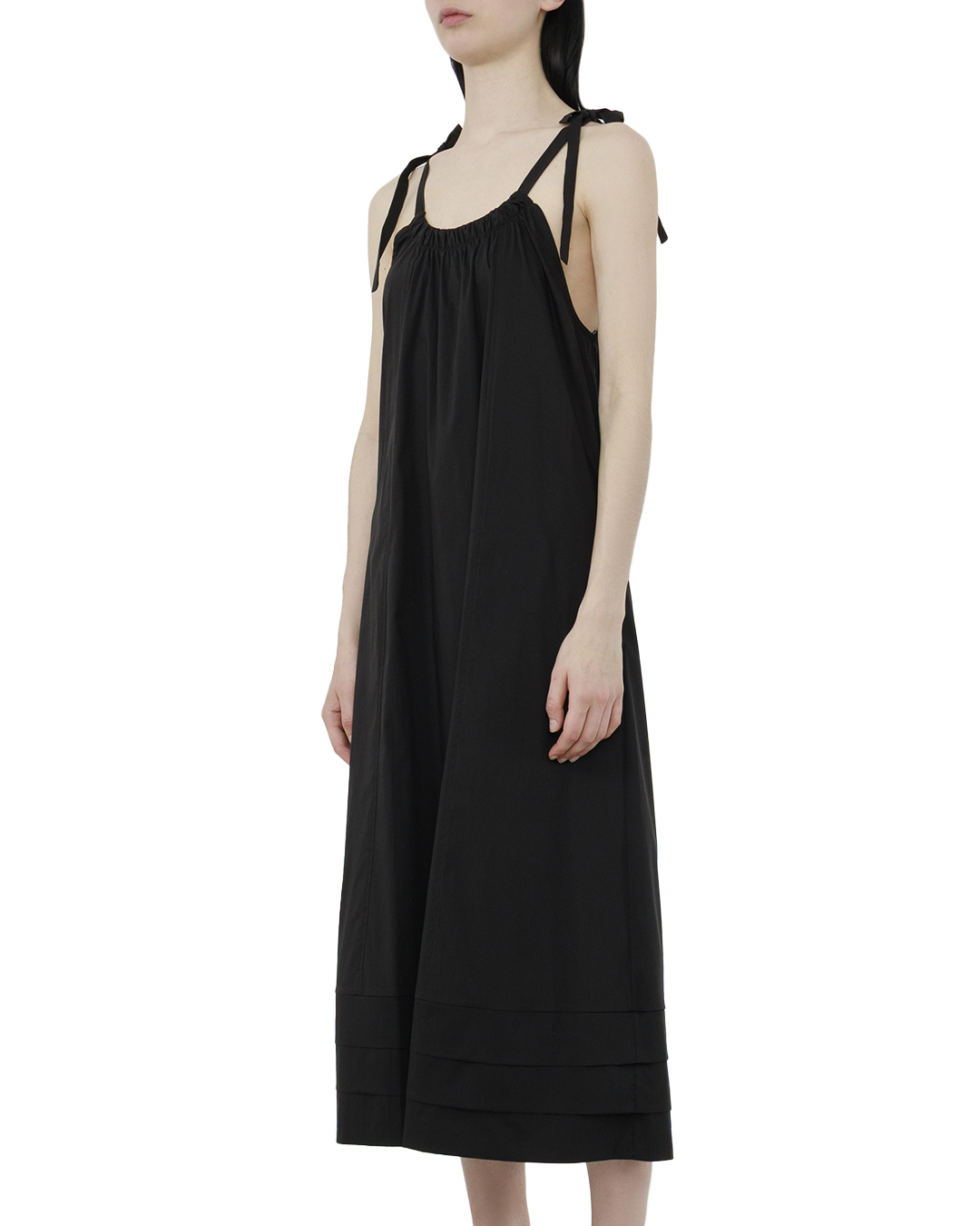 Платье миди выполненое из высококачественного хлопка, что обеспечивает комфорт и воздухопроницаемость. Насыщенный черный цвет делает его универсальным и стильным выбором для различных мероприятий. Платье имеет прямой свободный крой, который подчеркивает фигуру, не сковывая движений. Регулируемые бретели позволяют настроить длину в зависимости от вашего роста и предпочтений, обеспечивая идеальную посадку. Сборки на шее и спине добавляют интересные акценты и создают эффектный силуэт. Это платье станет отличным вариантом как для повседневной носки, так и для более торжественных случаев. Сочетайте его с обувью на каблуке или кроссовками для создания стильных образов. Обновите свой гардероб с этим универсальным платьем миди!