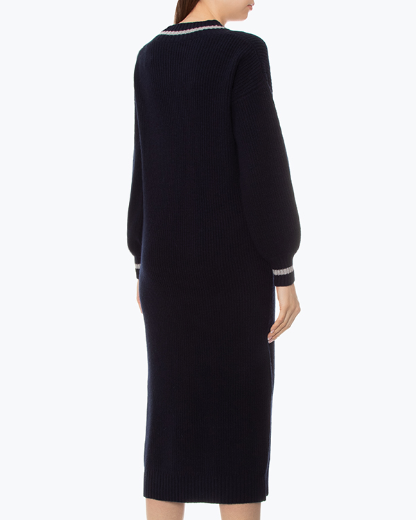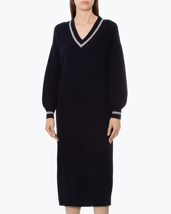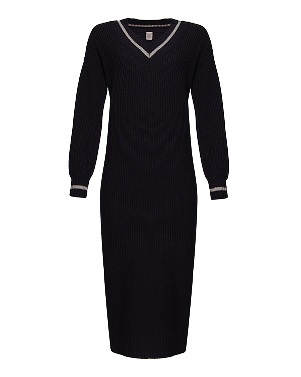 Платье-миди из вязаной мягкой итальянской шерсти и вискозы с добавлением кашемира черного цвета. Эластичное изделие со спущенной линией плеч и объемными рукавами