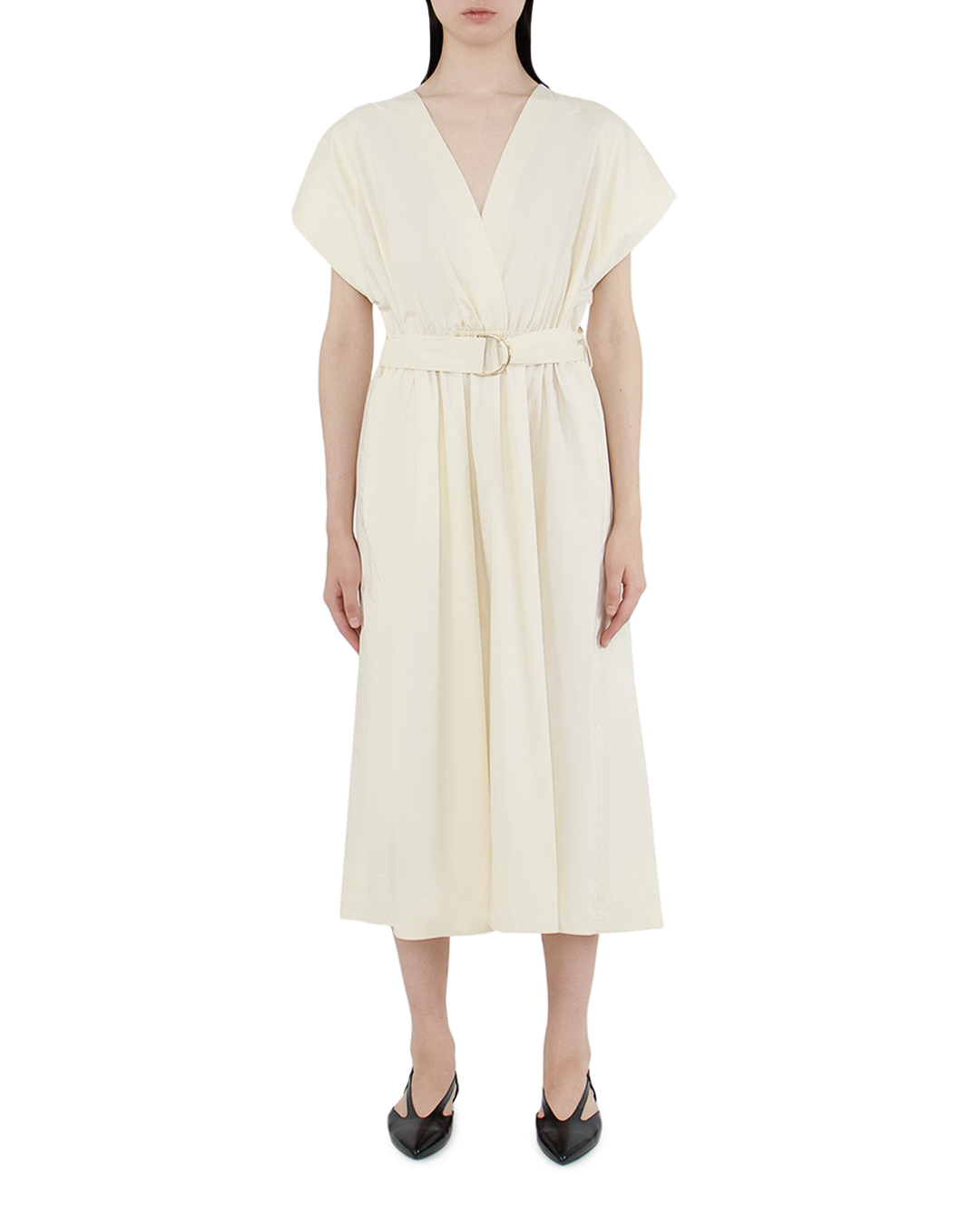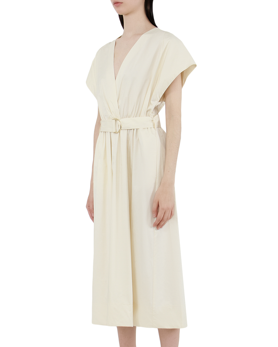 Перед вами великолепное платье с воздушными силуэтами, идеально подходящее для создания романтичного и непринужденного образа. Его изящный фасон подчёркнут мягким V-образным вырезом, который акцентирует внимание на декольте и визуально удлиняет шею. Широкие плечи, слегка свободные и струящиеся, придают платью дополнительный объём и современное звучание. Пояс с декоративной пряжкой в виде кольца подчёркивает талию, создавая гармонию между верхом и низом. Этот пояс не только функционален, но и является стильным акцентом, придающим индивидуальность и изысканность. Ткань, лёгкая и дышащая, окутывает фигуру, создавая плавные линии и элегантный силуэт. Это платье станет незаменимым в гардеробе модницы благодаря своему универсальному дизайну и возможности сочетания с разнообразными аксессуарами для разных поводов.