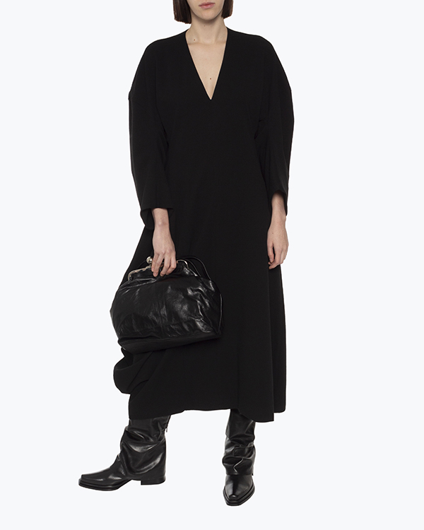 Платье MALLONI из вискозы с добавлением хлопка и прочных нитей нейлона черного цвета. Непринужденный крой приталенного силуэта с глубоким V—образным вырезом.
