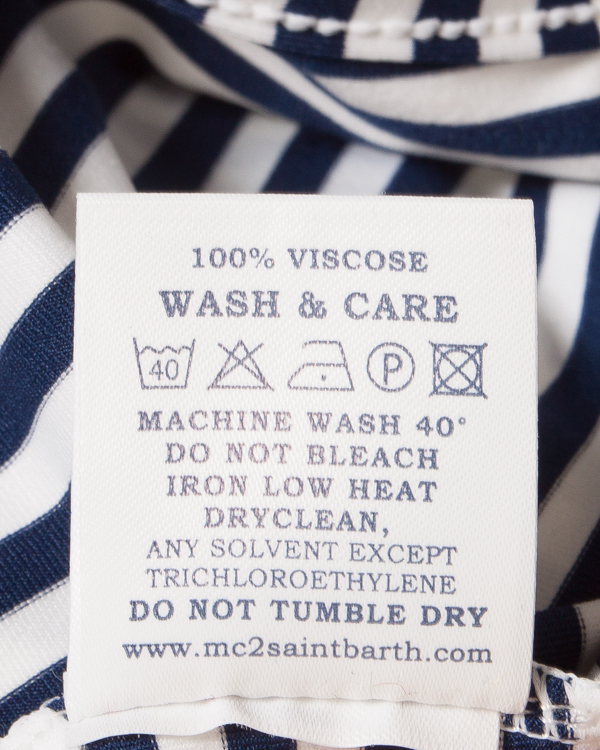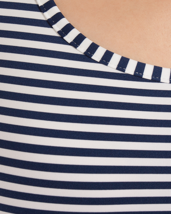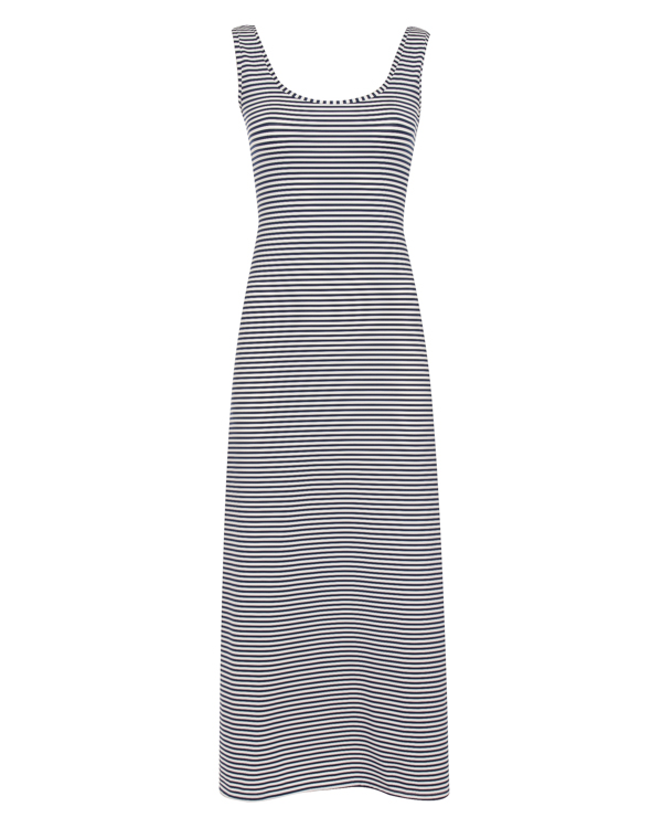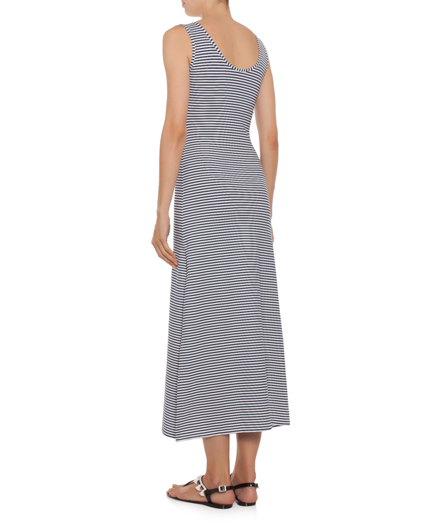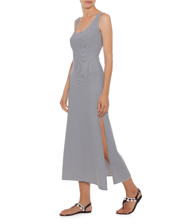 Платье-макси из эластичной вискозы сине-белую полоску. Модель облегающего силуэта с разрезами по бокам.