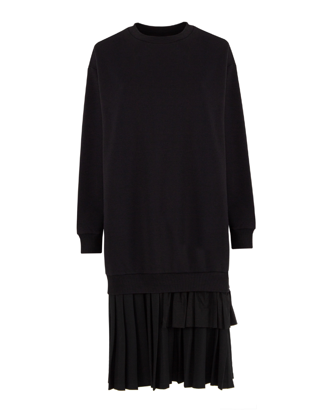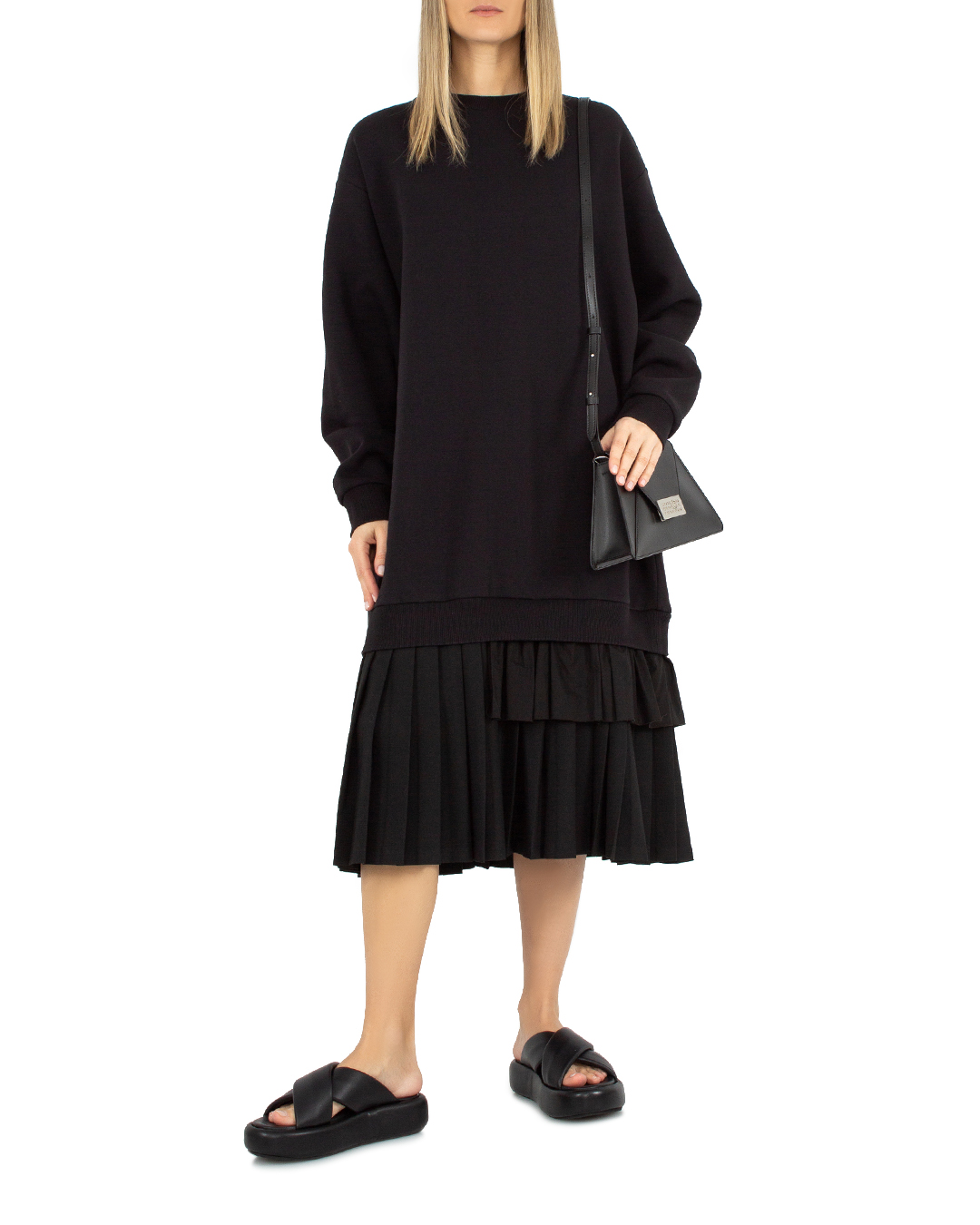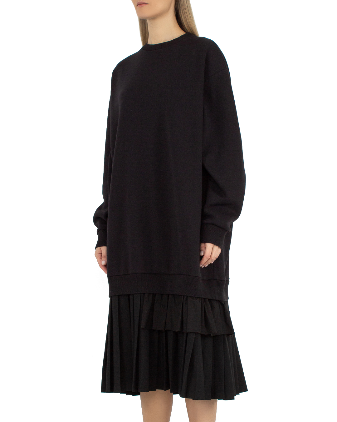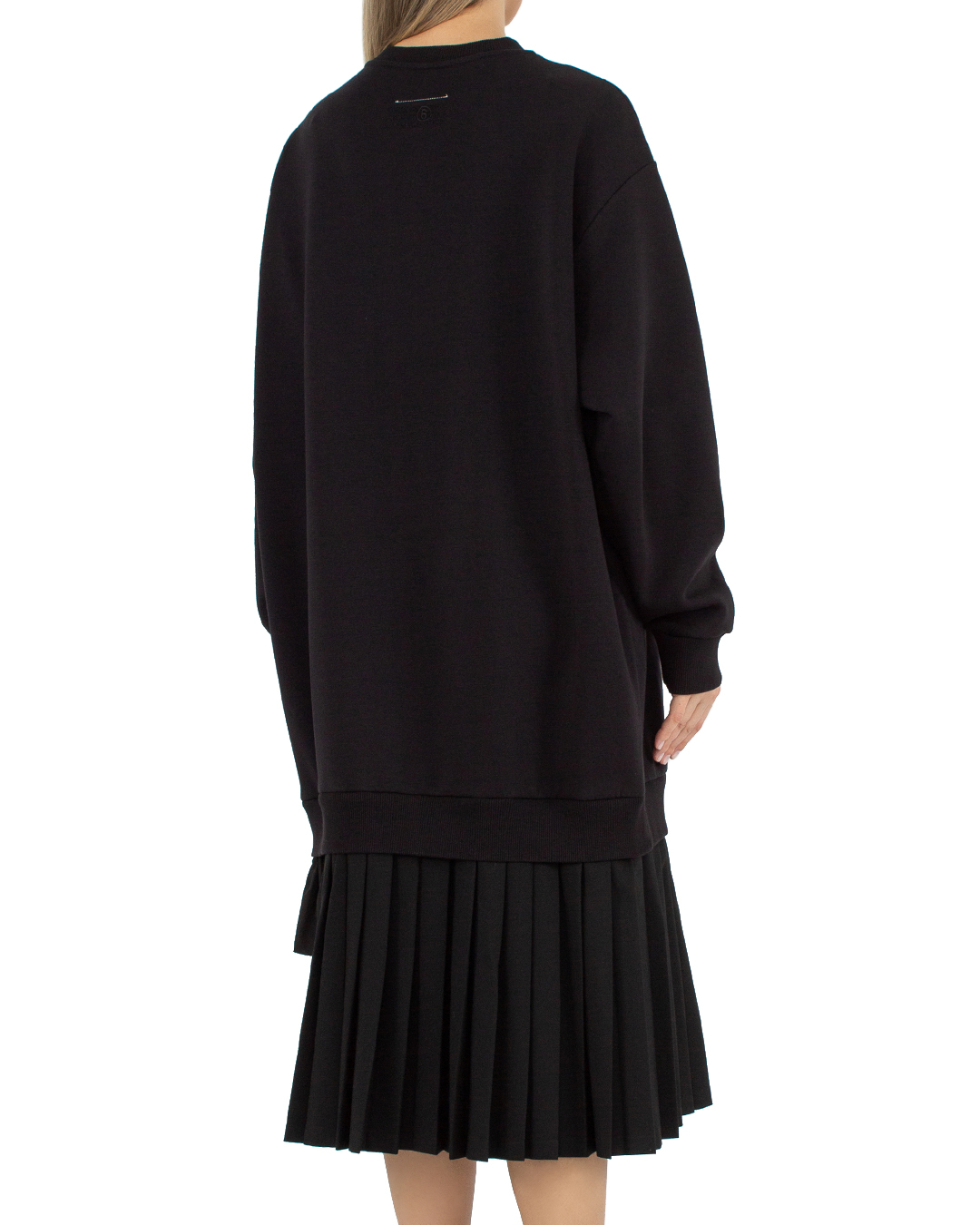 Платье MM6 Maison Margiela выполнено из комбинированного хлопка в виде свитшота и юбки. Верх сшит в виде трикотажного объемного свитшота и дополнен юбкой в складку.