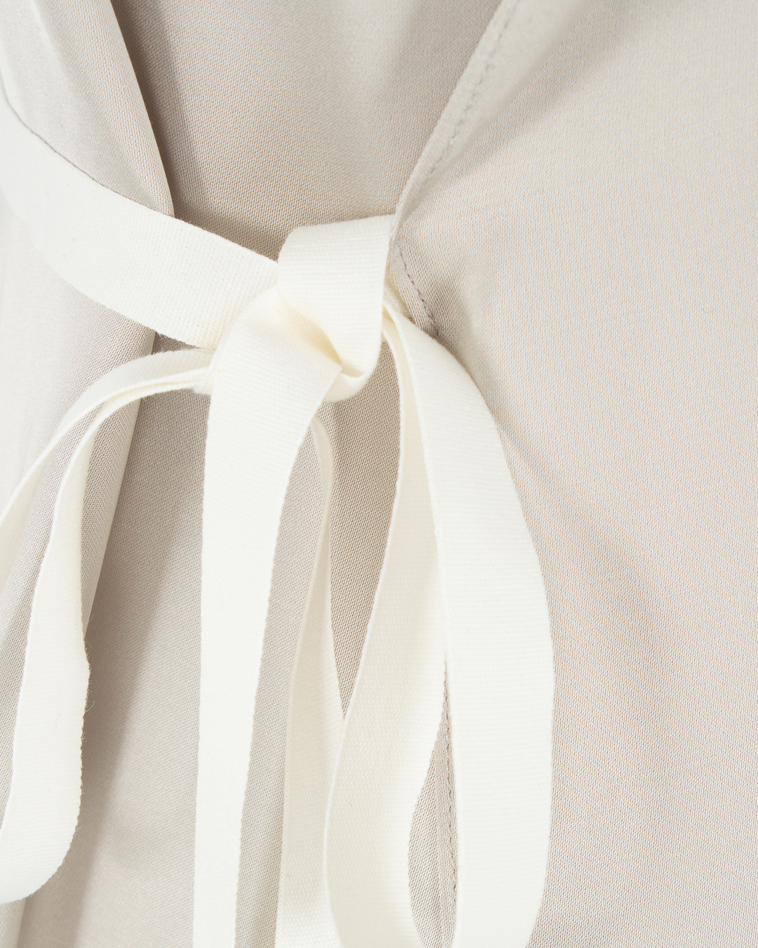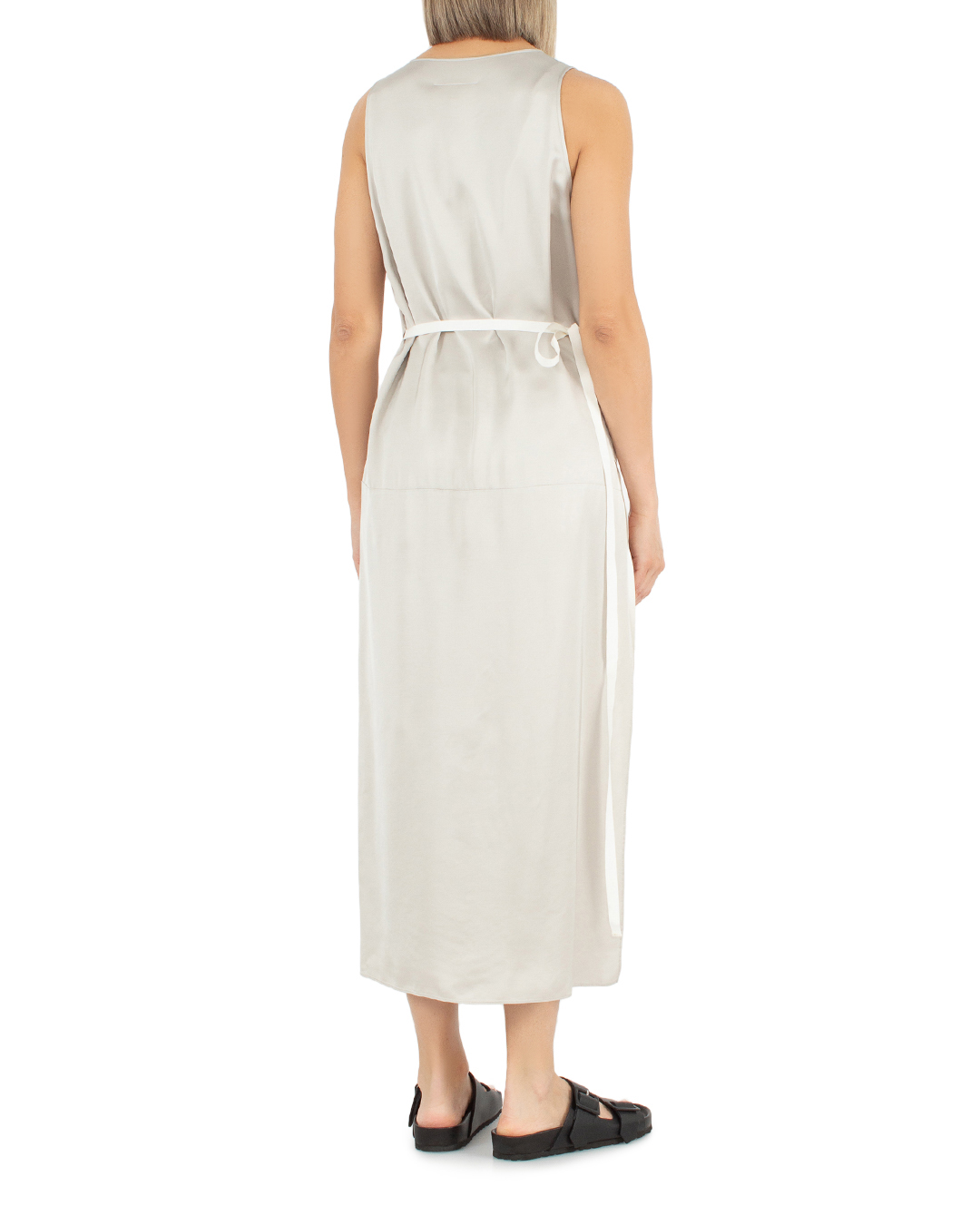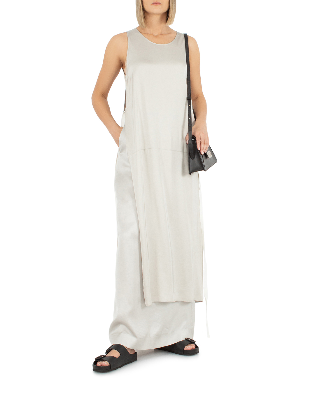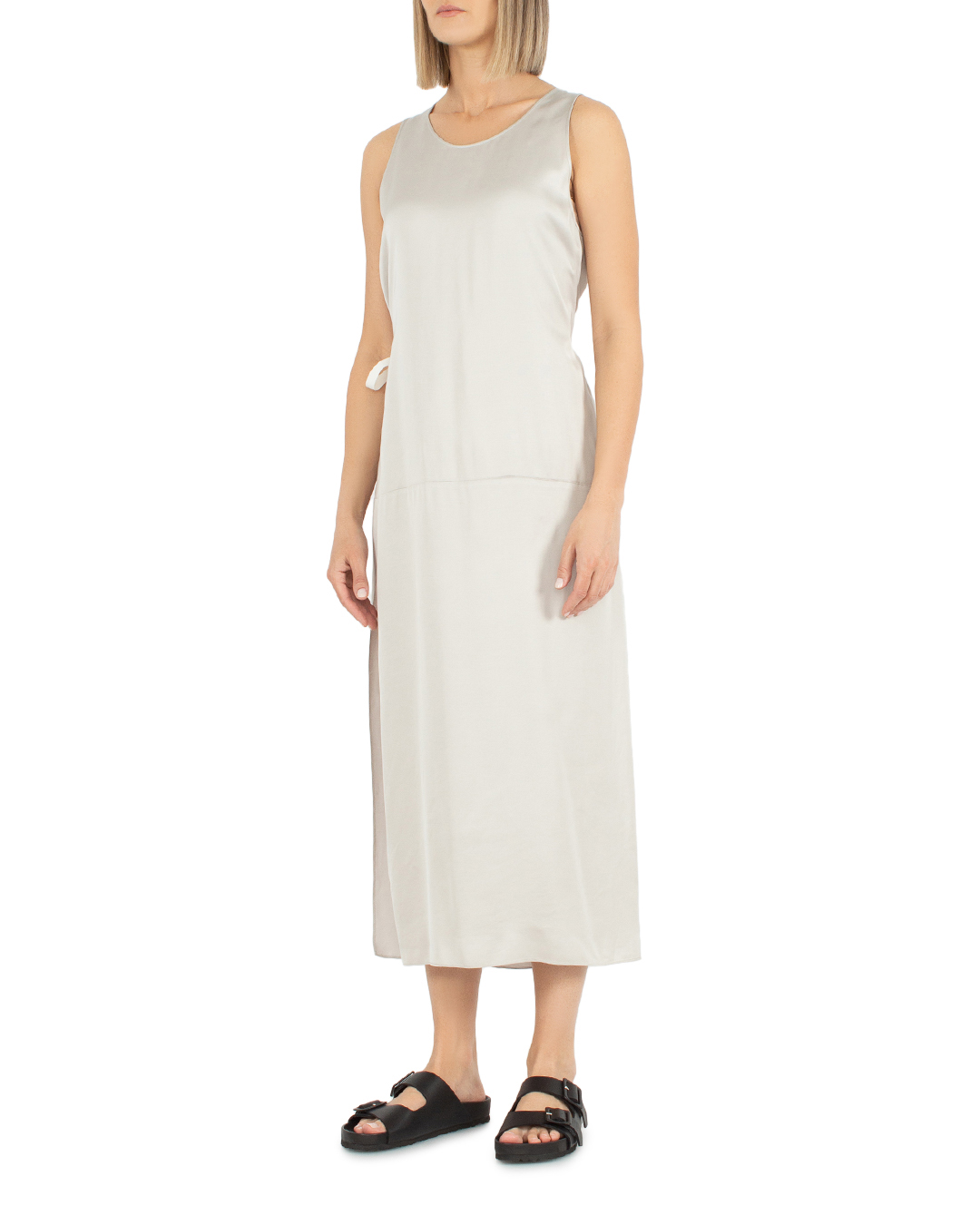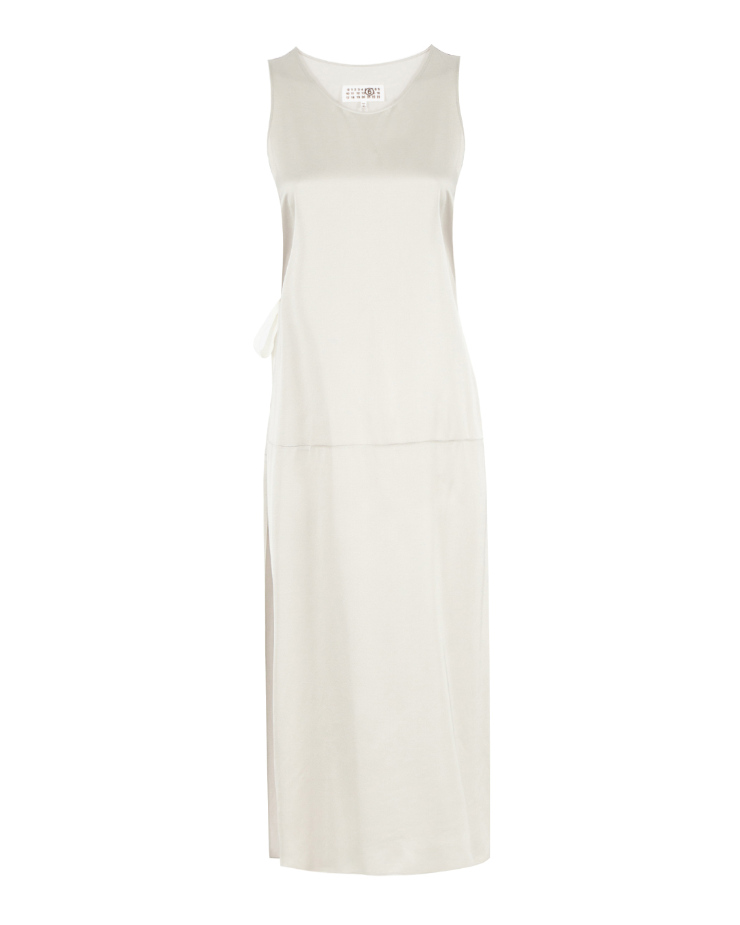 Платье MM6 Maison Margiela сшито из вискозы яичного серого оттенка. Модель длины миди с завязками на спине.
