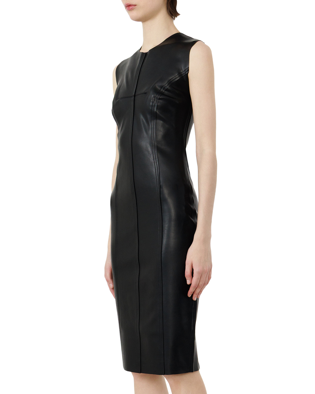 Это чёрное кожаное платье-футляр — воплощение элегантной сдержанности и современного шика. Модель завораживает своей лаконичностью: облегающий крой подчёркивает достоинства фигуры, создавая изящный, чуть провокационный силуэт. Глубокий чёрный цвет придаёт образу универсальность и благородство. Глянцевая фактура экокожи играет на свету, добавляя платью роскошную динамику. Приталенный фасон мастерски балансирует между строгостью и чувственностью, визуально выделяя талию и подчёркивая женственные линии. Отсутствие лишних деталей делает платье по-настоящему стильным: минимализм здесь становится главным украшением. Модель легко трансформируется — она одинаково органично смотрится как в вечернем образе с массивными украшениями и высокими каблуками, так и в более сдержанном офисном луке с лаконичным жакетом и классическими лодочками. Это платье — не просто предмет гардероба, а инструмент для создания выразительных образов. Оно идеально подойдёт для коктейльной вечеринки, делового ужина или даже художественной фотосессии. Сочетайте его с аксессуарами в металлической гамме, чтобы усилить эффект современного гламура, или добавьте контрастные детали для создания дерзкого настроения. В этом наряде каждая деталь работает на создание безупречного силуэта: платье подчёркивает индивидуальность, оставаясь при этом воплощением модной классики. Идеальный выбор для тех, кто ценит качество, стиль и умеет говорить с миром на языке моды.