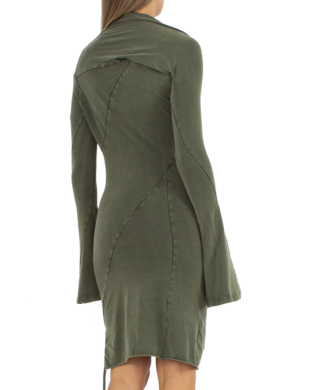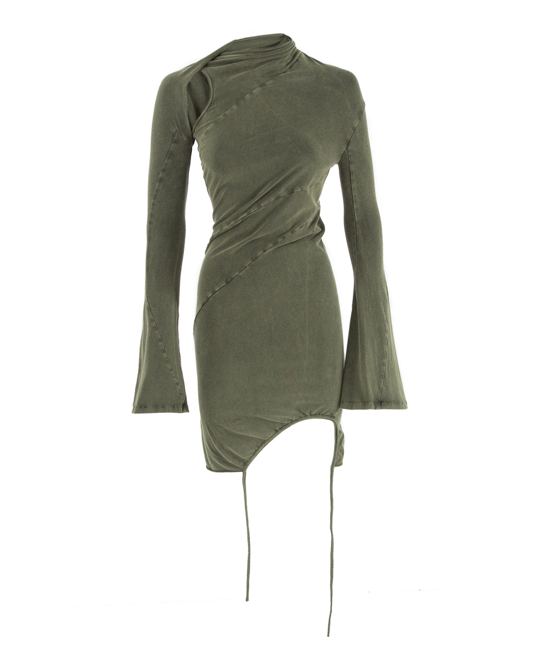 Платье мини OTTOLINGER из трикотажного хлопка а. Нестандартный асимметричный крой дополнен удлиненными рукавами и завязками.