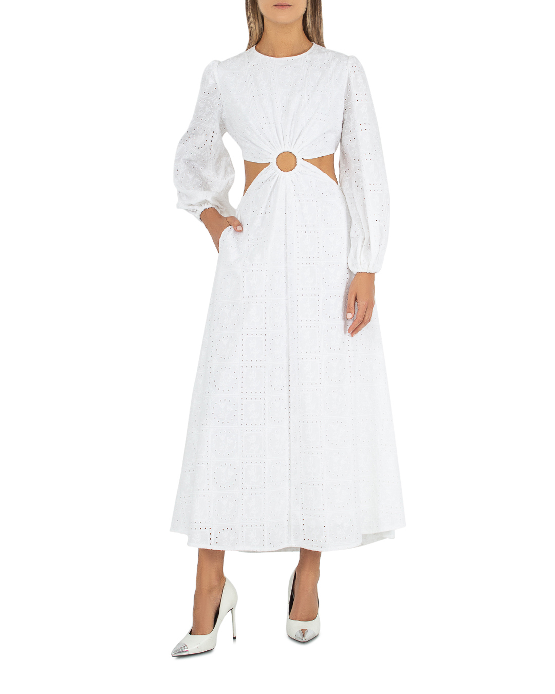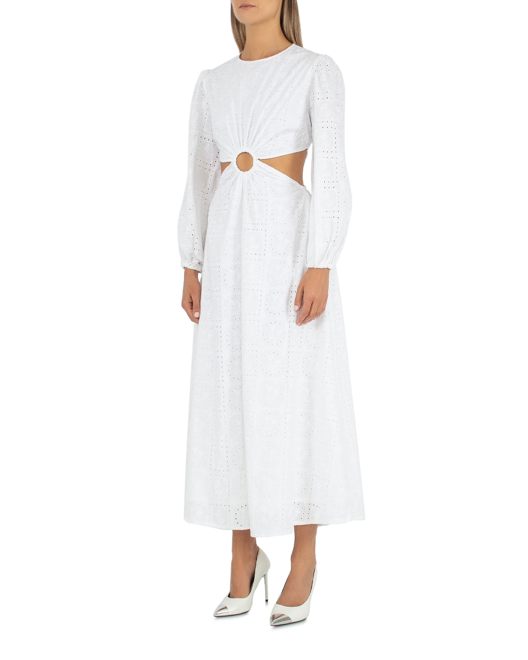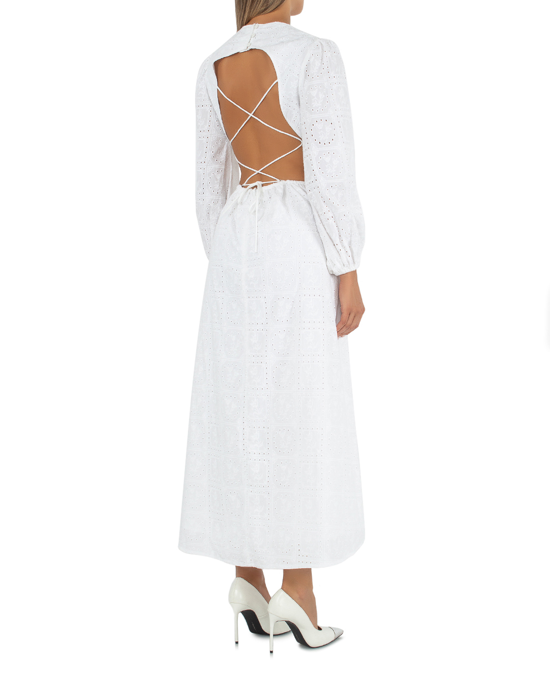 Платье Palm Noosa из хлопка с шитьем. Модель длины макси с вырезами по бокам и открытой спиной с фиксирующими тонкими завязками.