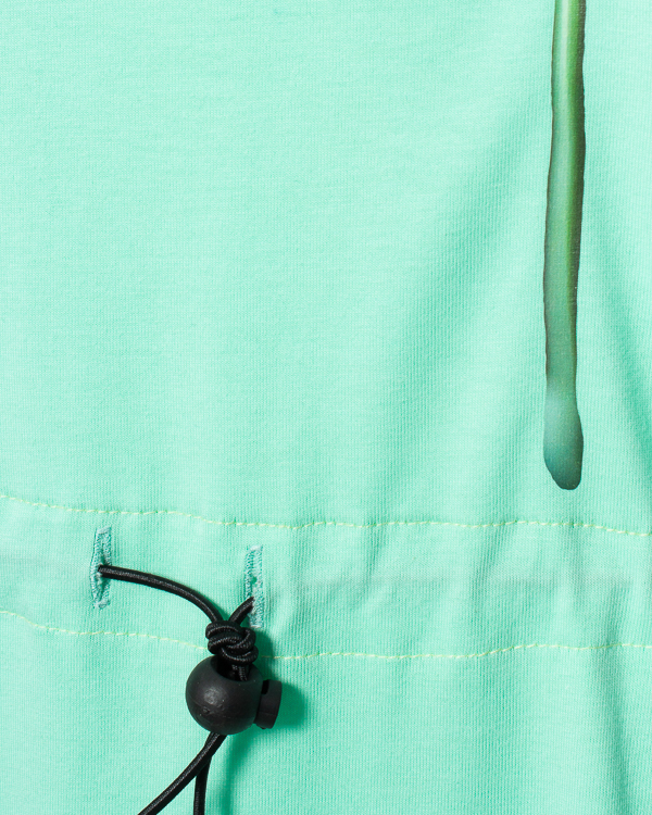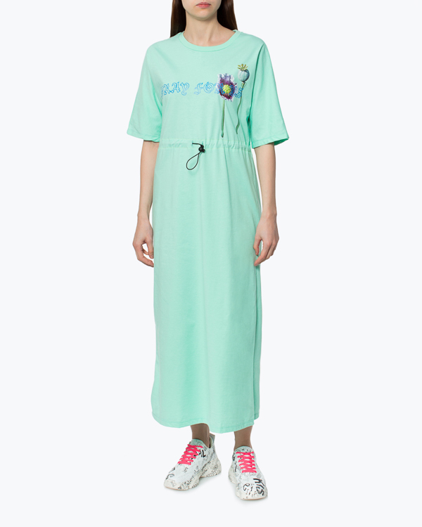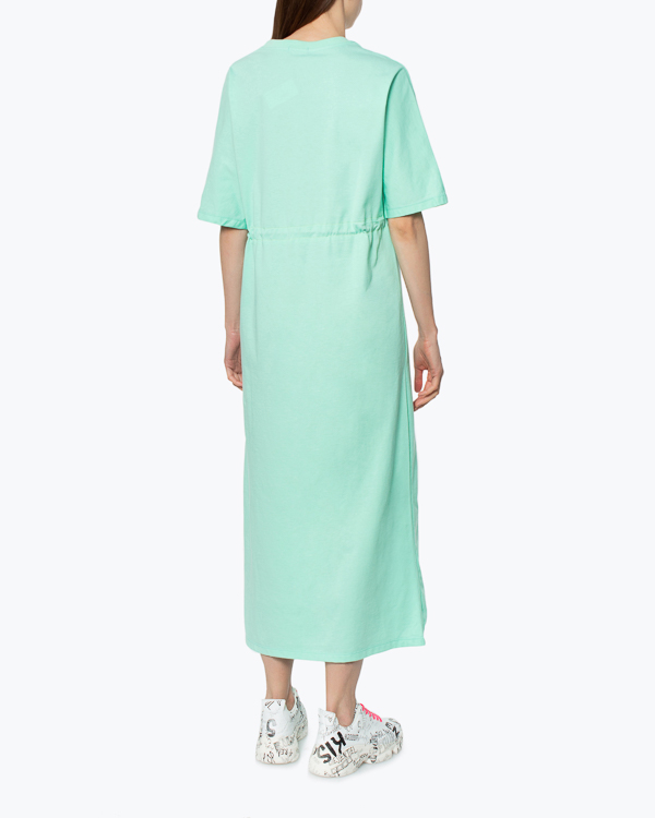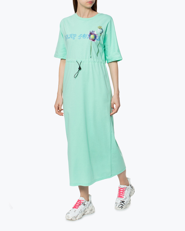 Платье-макси из органического хлопка мятного оттенка с принтом. Модель прямого силуэта с завязками на талии.