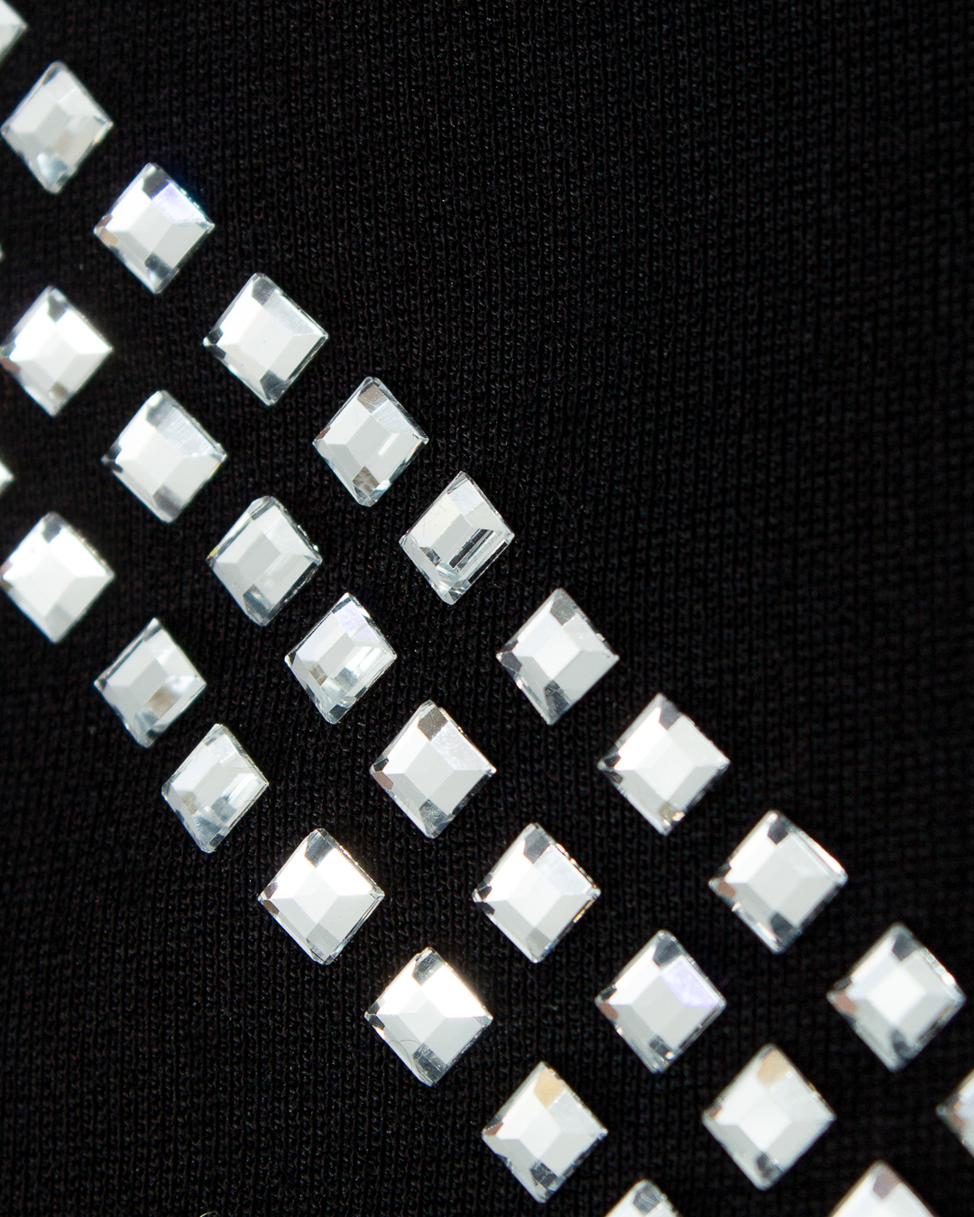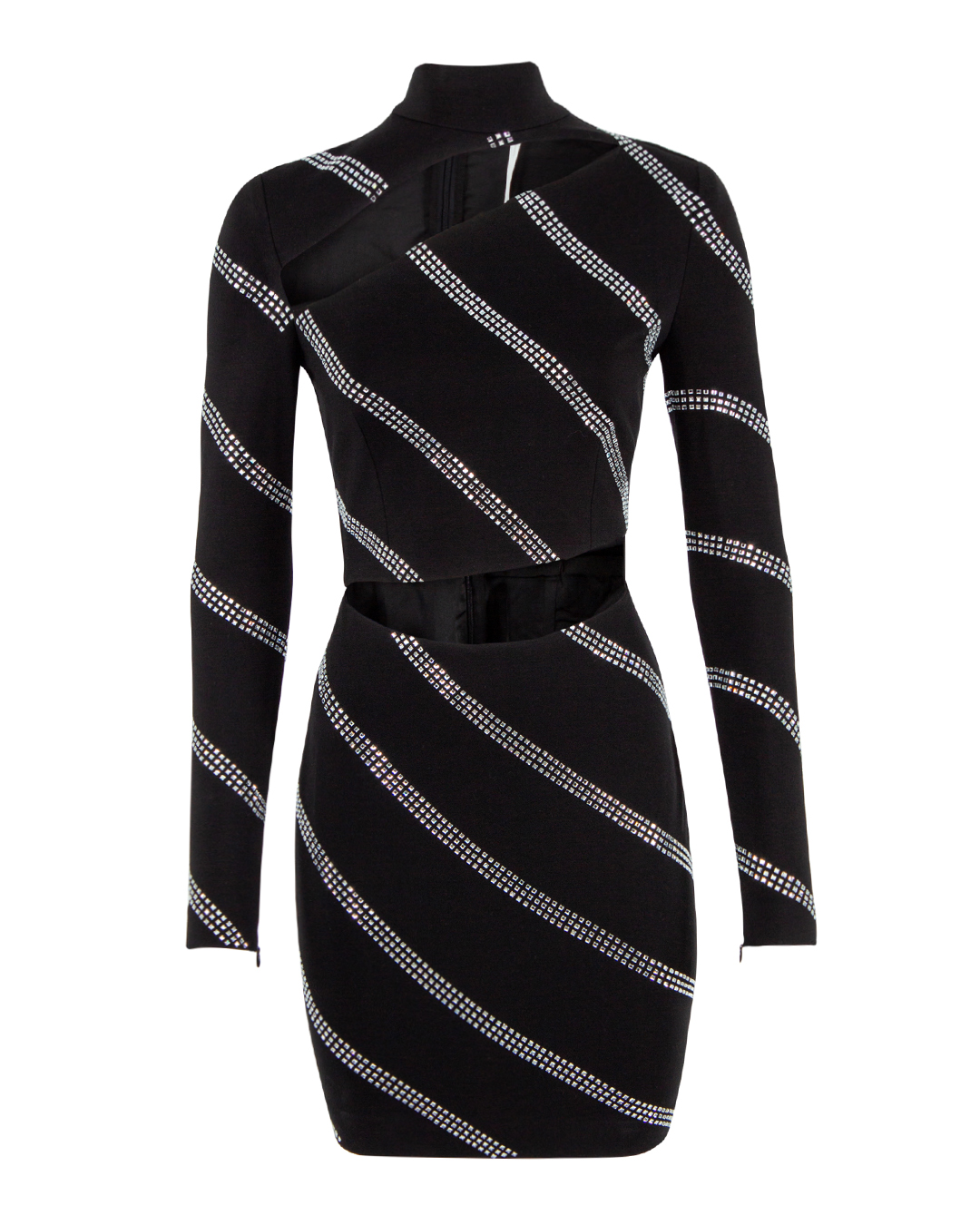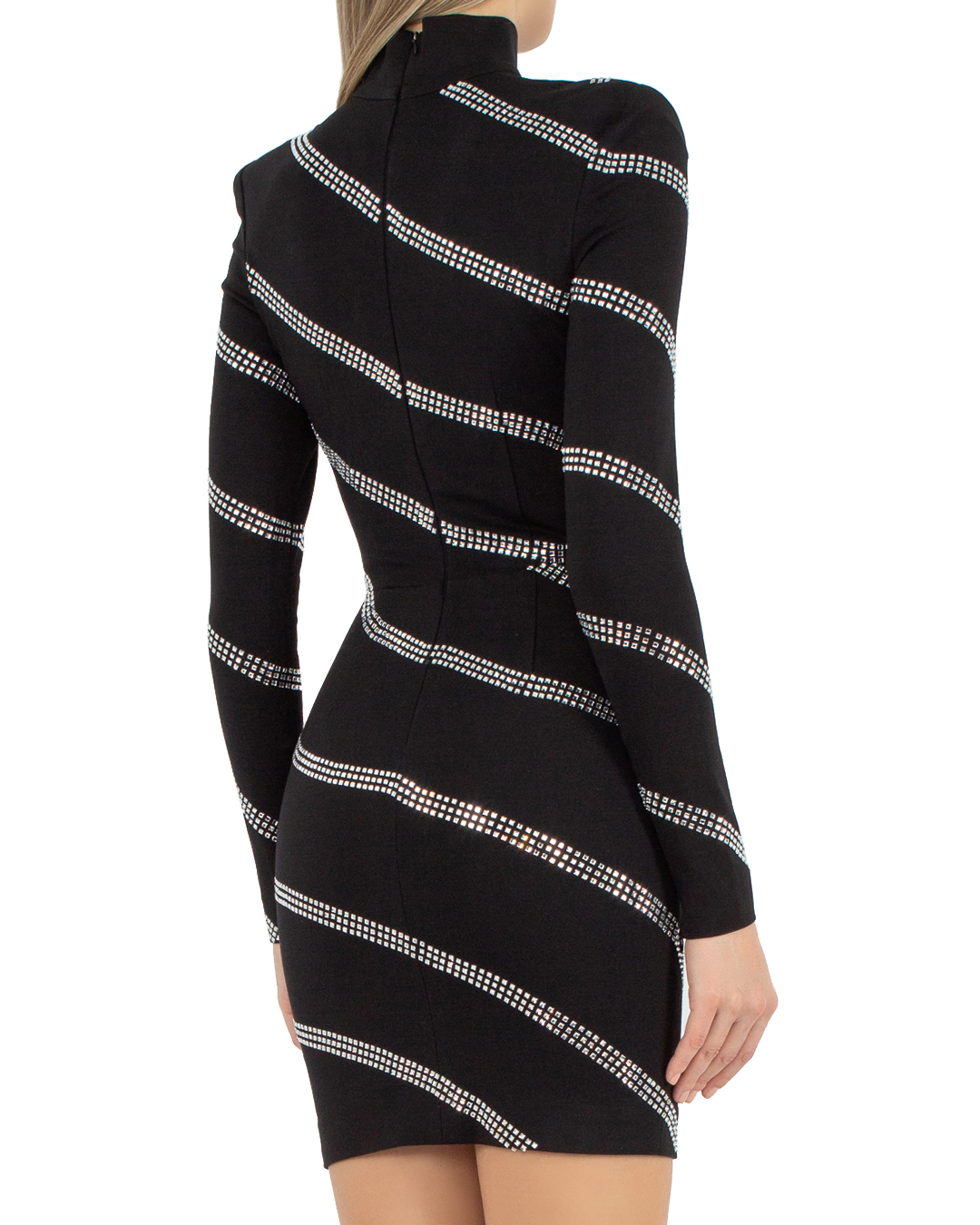 Платье SOLANGEL из эластичной вискозы черного цвета с отделкой кристаллами. Модель облегающего силуэта с вырезами и застежкой на потайную молнию на спине.