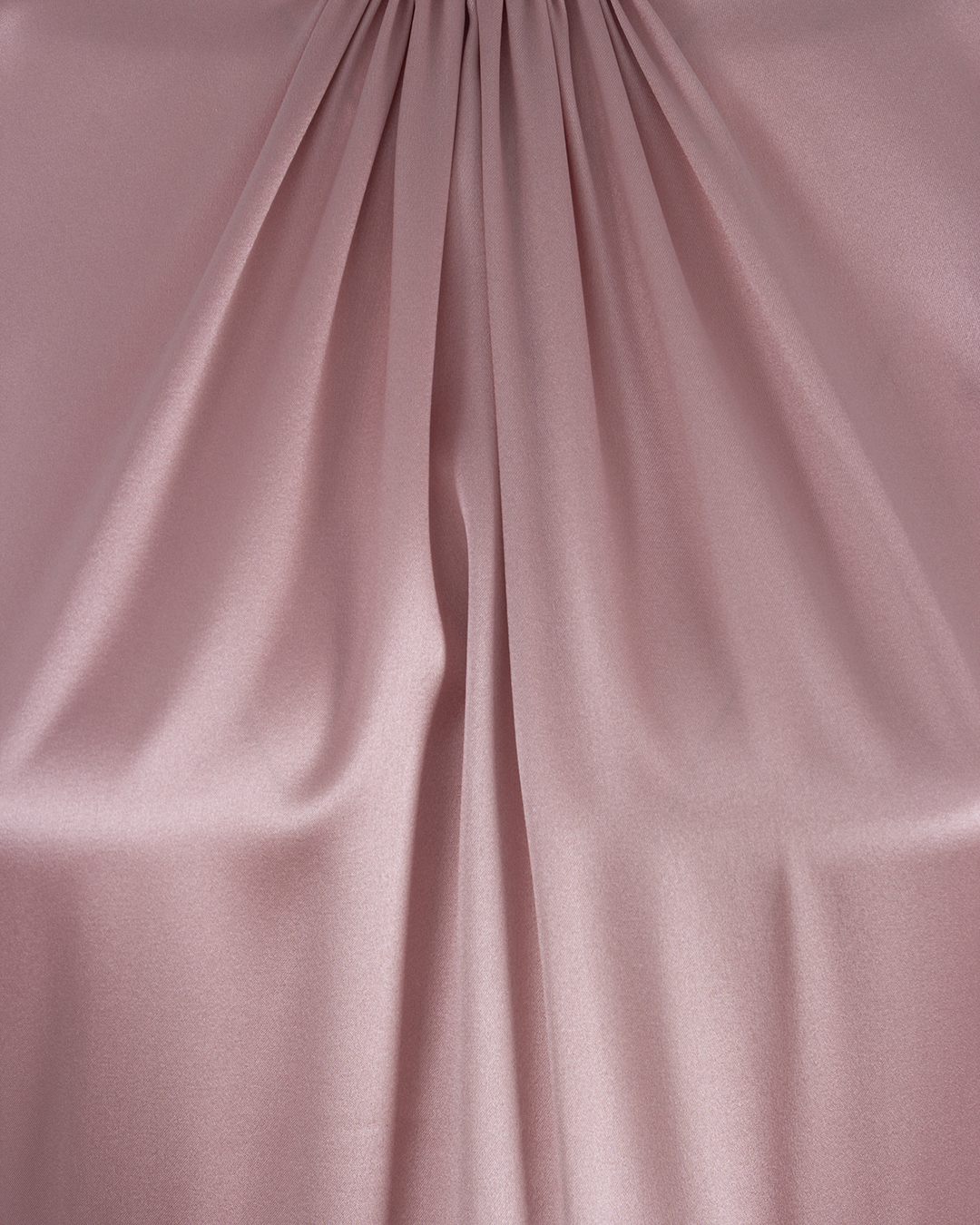 Платье Veronica Iorio из атласного шелка розового оттенка. Модель приталенного силуэта с отрезной по линии пояса дополнено воротником-стойкой. Отдельного внимания заслуживают рукава, выполненные со сборкой материала, чтоб придает им воздушность и объем. Платье с застежкой на спине.