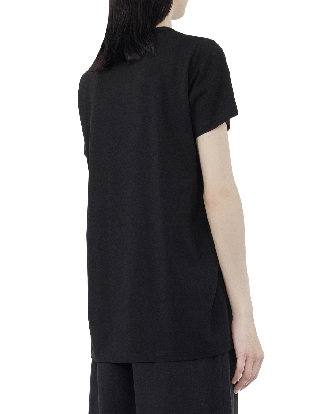 Эта футболка представляет собой квинтэссенцию минимализма и универсальности, являясь основой стильного гардероба. Выполненная из хлопка премиум-класса, она дарит мягкость и комфорт на каждый день. Лаконичный крой и прямой силуэт создают чистую линию и современный вид, подчеркивая естественность фигуры. Круглый вырез горловины с тонкой ребристой отделкой обеспечивает аккуратное обрамление, сохраняя форму и добавляя износостойкость. Швы выполнены с высокой точностью, демонстрируя внимание к деталям и качество исполнения. Цветовое решение в классическом черном оттенке делает эту футболку универсальной базой, которую легко сочетать с различными элементами гардероба, позволяя создавать разнообразные образы — от кэжуал до более изысканного повседневного стиля. Эта футболка — идеальный выбор для тех, кто ценит сочетание простоты и изысканности в повседневной жизни.