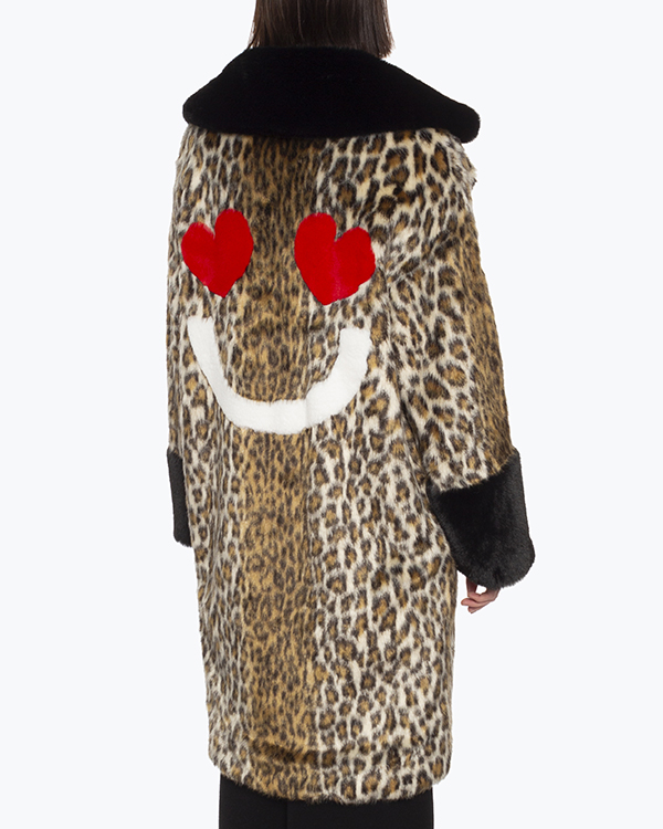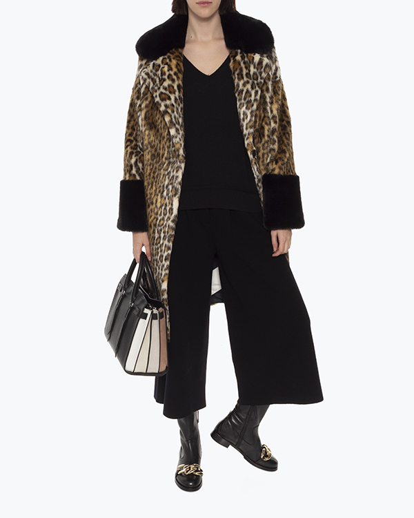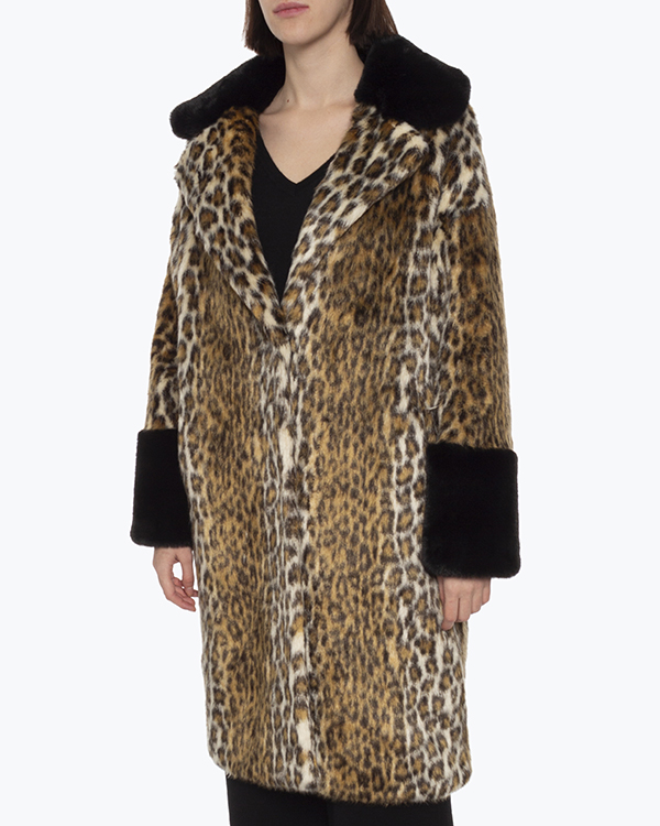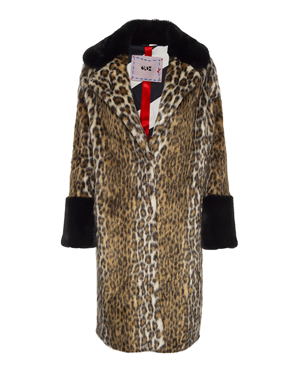Дизайнерская шуба GLOX из мягкого декоративного меха с анималистичным принтом. Модель прямого силуэта с застежкой на крючки. Шуба дополнена контрастной отделкой манжет и воротника.