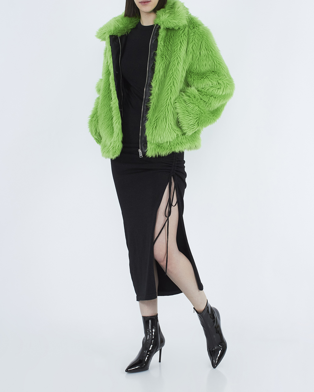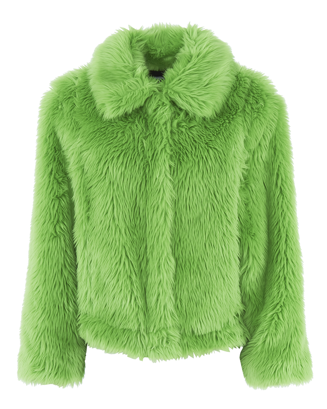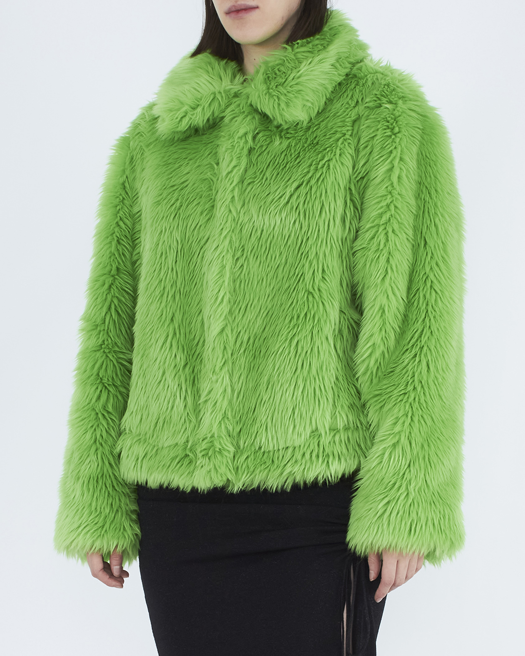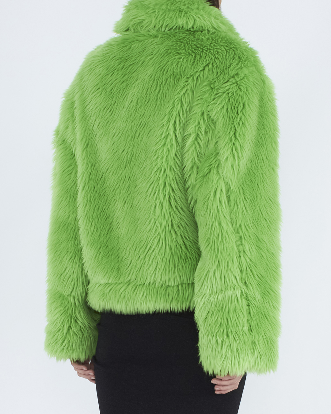 Куртка MSGM из декоративного меха салатового оттенка. Модель прямого силуэта с отложным воротником.