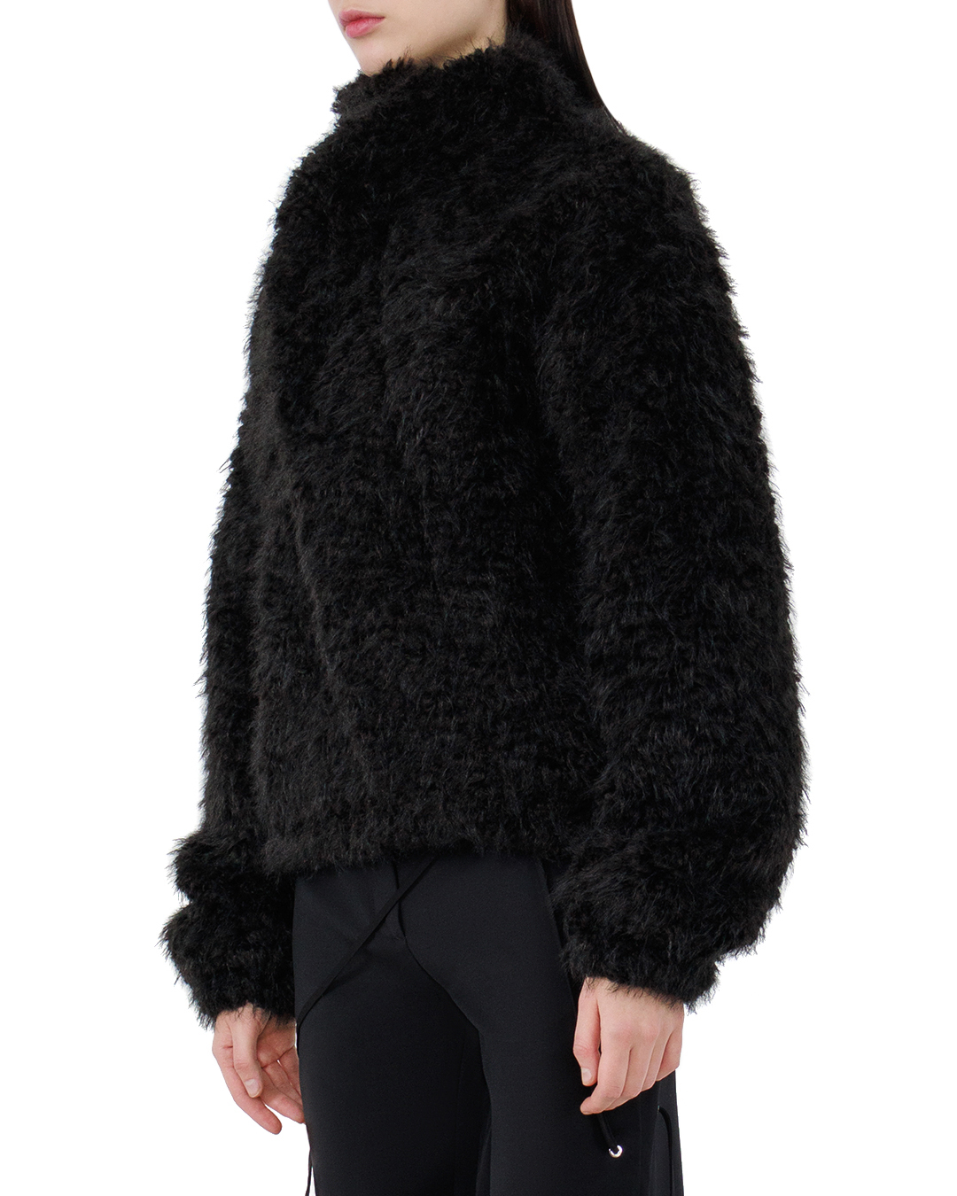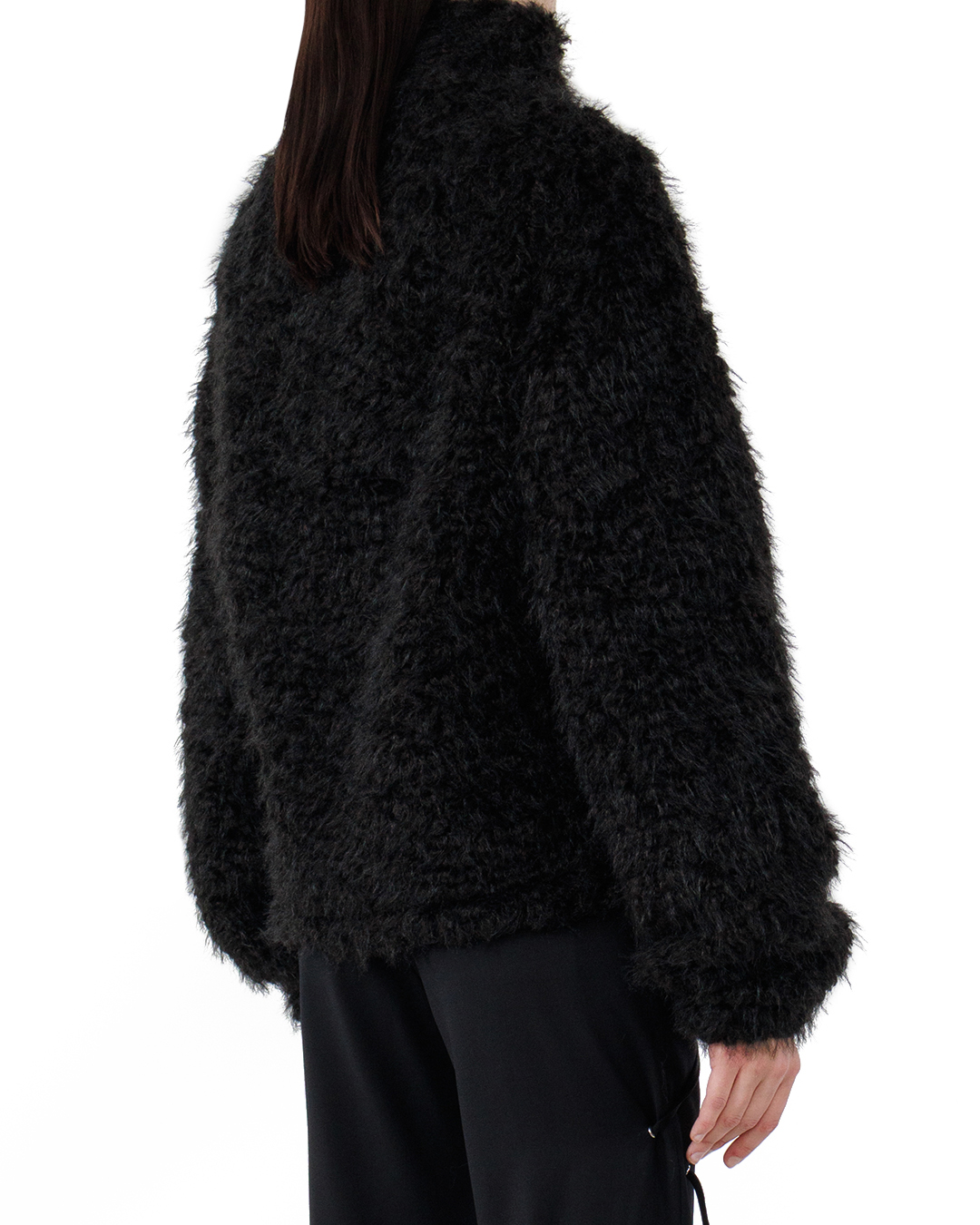 Эта стильная шуба — воплощение современной роскоши и утончённого шарма. Изготовленная из искусственного меха глубокого черного цвета, она идеально сочетает в себе комфорт и экологичность, создавая соблазнительный и роскошный образ. Эффектная текстура меха придаёт изделию динамичность, добавляя объем и игривость, что делает шубу неотъемлемым элементом стильного гардероба. Минималистичный силуэт с аккуратным кроем подчёркивает элегантность, делая акцент на изысканности форм. Высокий воротник добавляет эксклюзивности и обеспечивает дополнительное тепло, подчеркивая элегантность дизайна. Скрытая застежка создает плавные линии, сохраняя целостность визуального образа и добавляя нотку изысканности. Этот элемент верхней одежды станет великолепным завершением как вечернего, так и повседневного лука, добавляя в него дух современности и шик. Эта шуба — идеальный выбор для тех, кто хочет выразить свой стиль и уверенность через безупречно подобранные детали.
