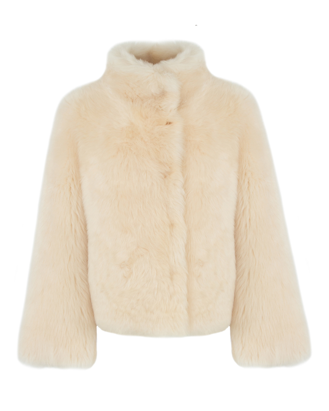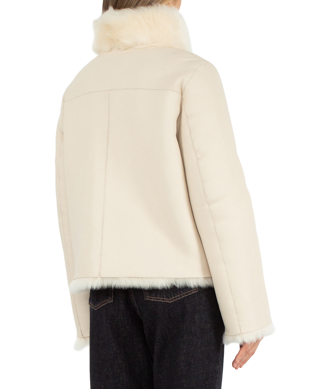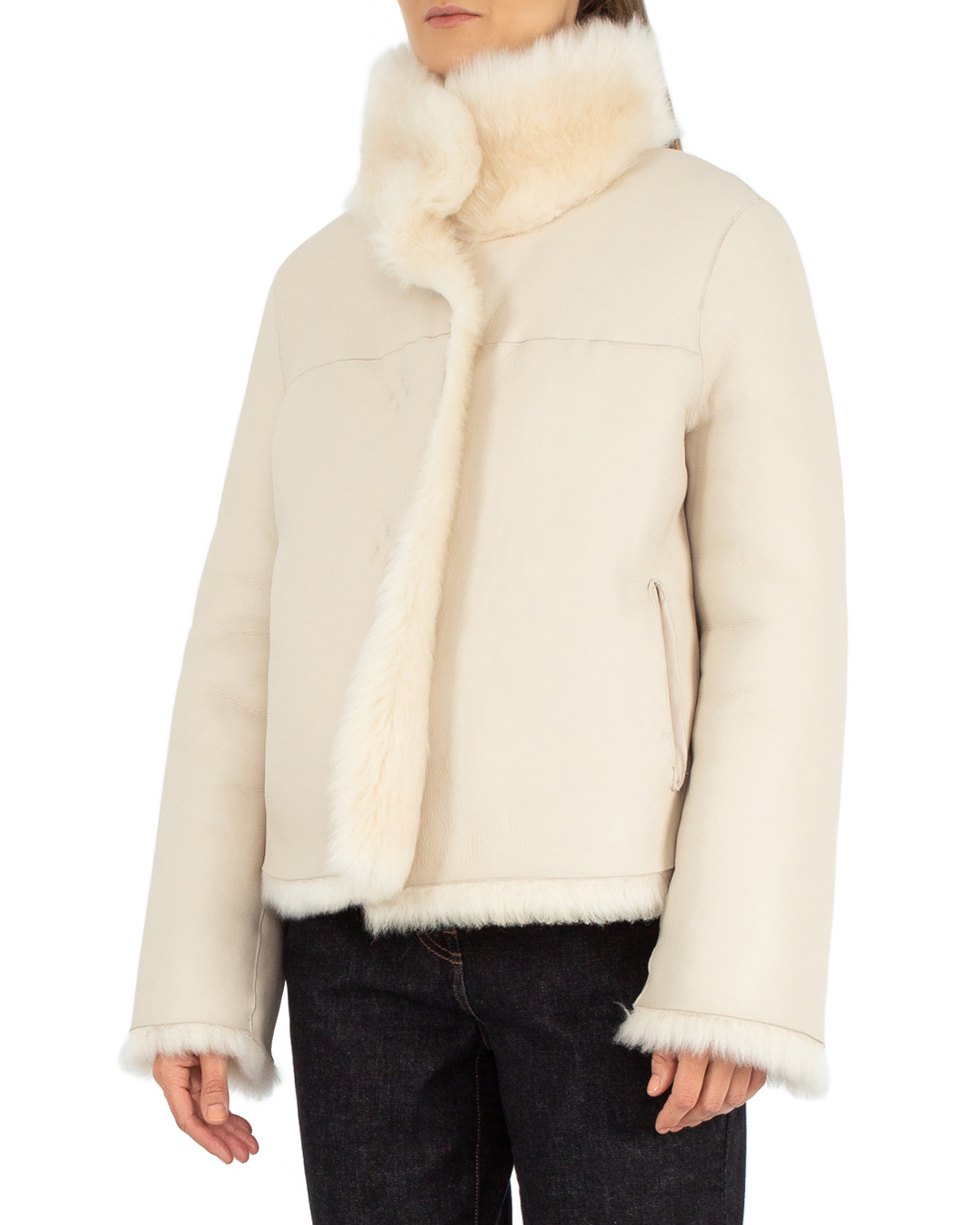 Двусторонняя дубленка CHAUD STUDIO сшита из натуральной овчины бежевого оттенка. Модель прямого укороченного силуэта с двумя карманами по бокам.