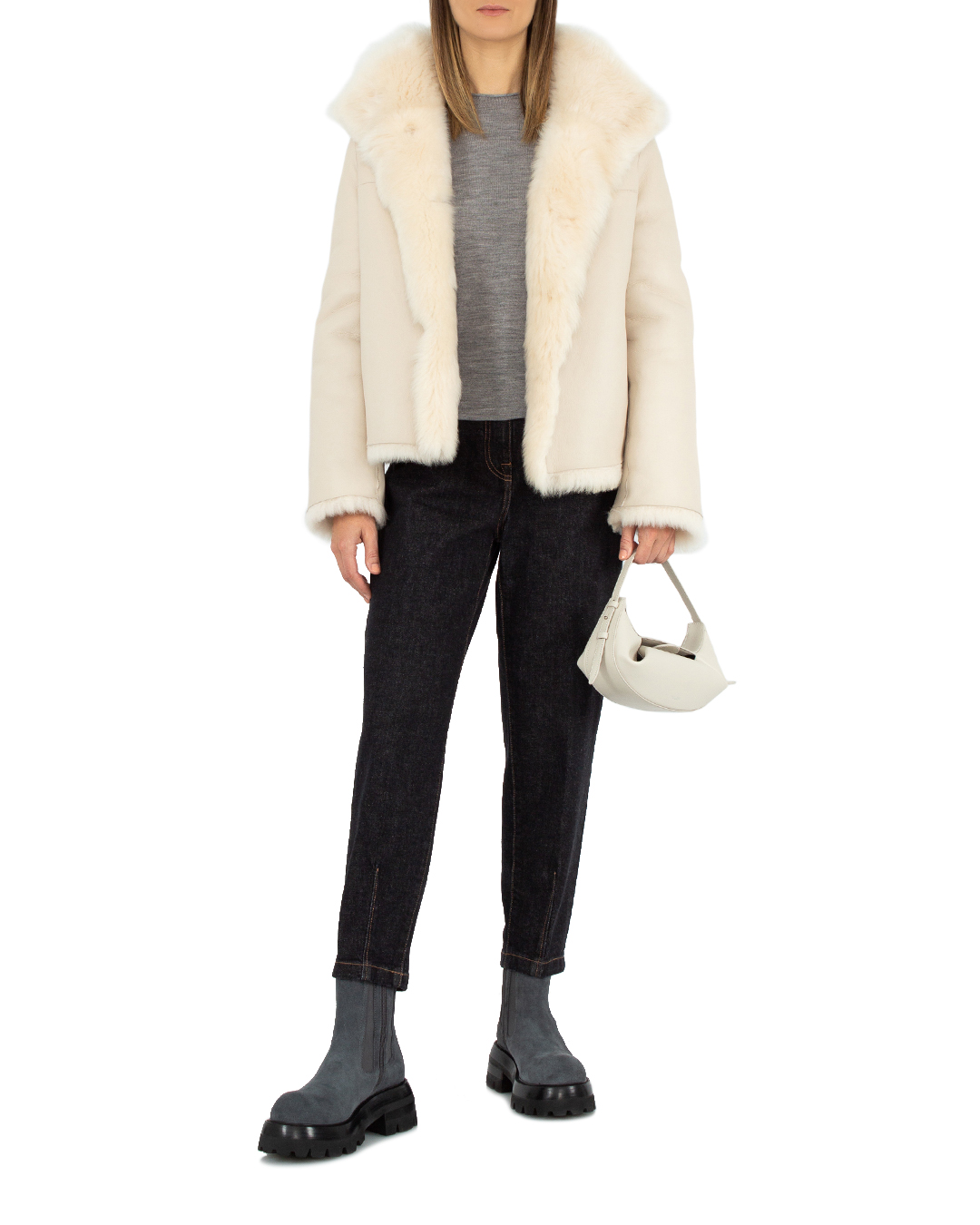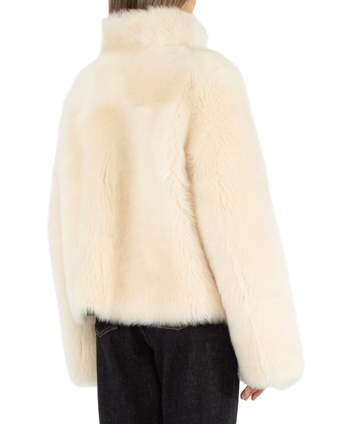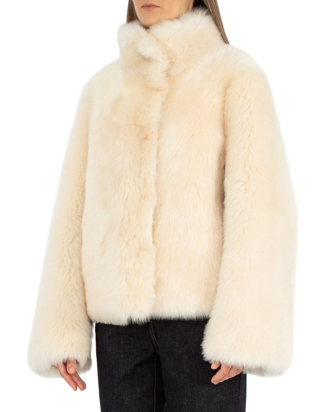 Двусторонняя дубленка CHAUD STUDIO сшита из натуральной овчины бежевого оттенка. Модель прямого укороченного силуэта с двумя карманами по бокам.