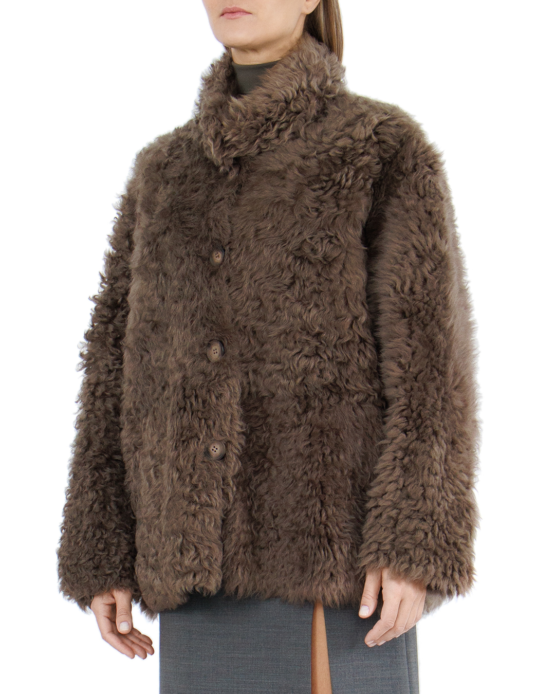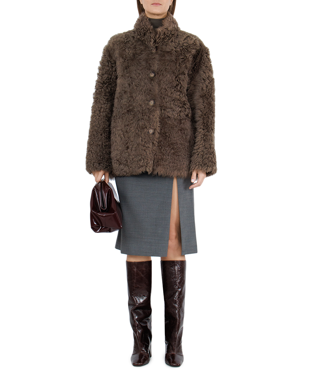 Эта дублёнка — воплощение элегантности и изысканности, подчёркивающее врождённое чувство стиля своей обладательницы. Изделие выполнено в изумительном насыщенном оттенке какао, который придаёт ему глубокую текстуру и совершает его обладательницу центром внимания. Основной материал обладает нежной, но массивной фактурой благодаря естественным завиткам овчины, что создаёт интересный визуальный эффект и способствует отличной теплоизоляции. Элегантный прямой силуэт дублёнки делает её универсальной и уместной в любой обстановке, от городской прогулки до вечернего выхода. Воротник-стойка добавляет ноту изысканности и защищает от холодного ветра, создавая эффект завершённого образа. Прорезные карманы на карманах предусмотрительно интегрированы в крой дублёнки, предлагая функциональность, не нарушая эстетическую гармонию дизайна. Застёжка на крупных пуговицах удачно подчёркивает структурность модели, добавляя к ней дополнительный акцент, который привлекает внимание и придаёт текстурную сложность этой изысканной верхней одежде.