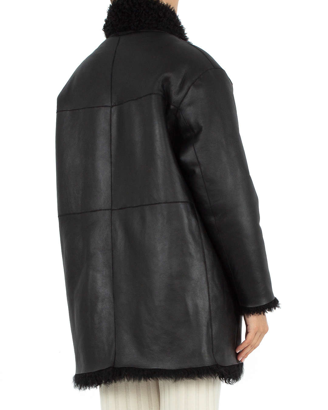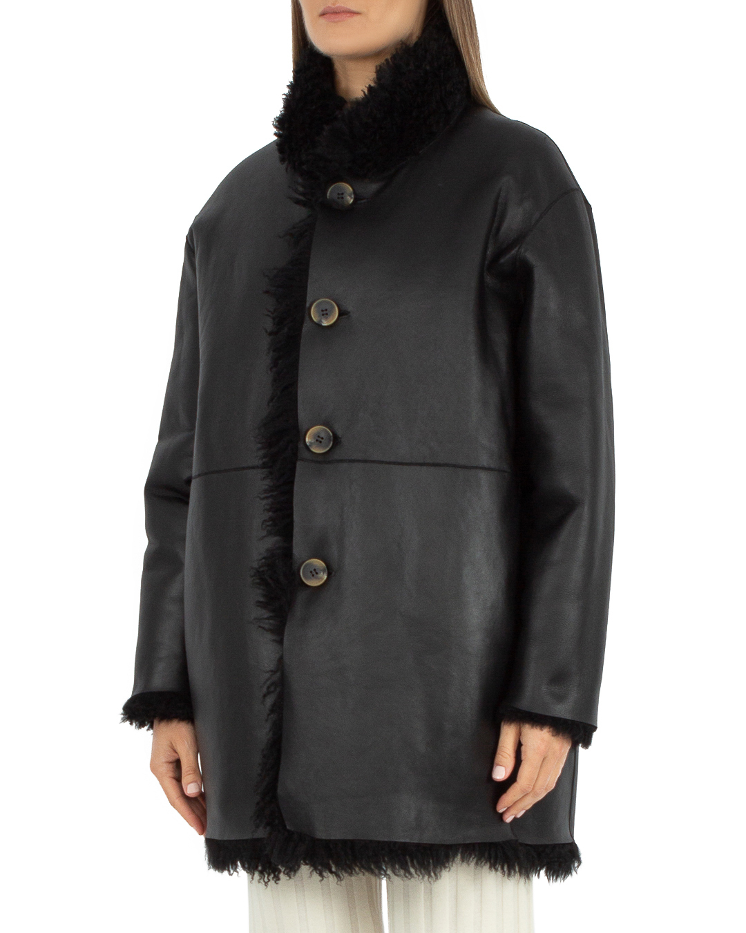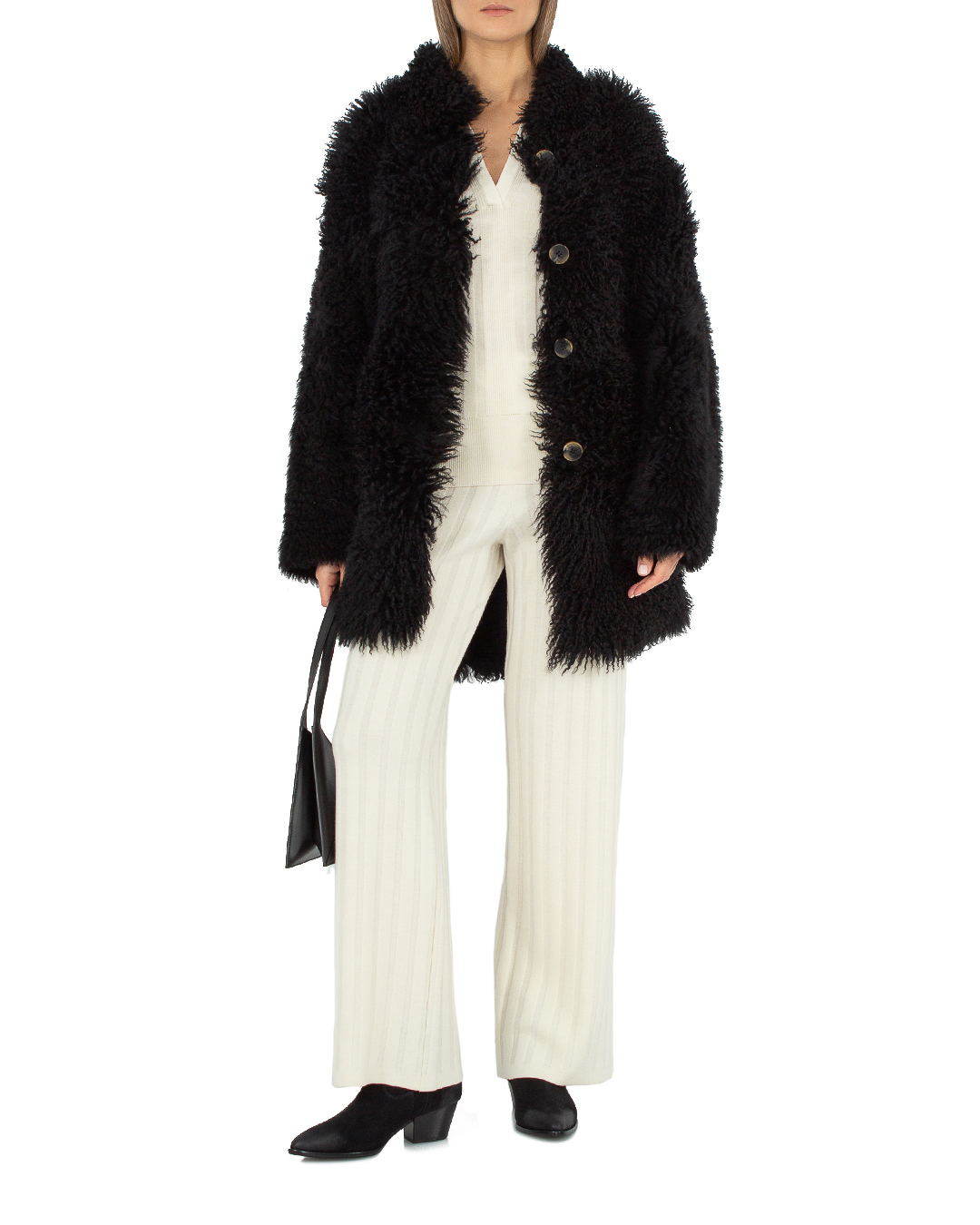 Дубленка CHAUD STUDIO сшита из натуральной овчины. Двустороннее изделие с застежкой на пуговицы дополнено двумя карманами.