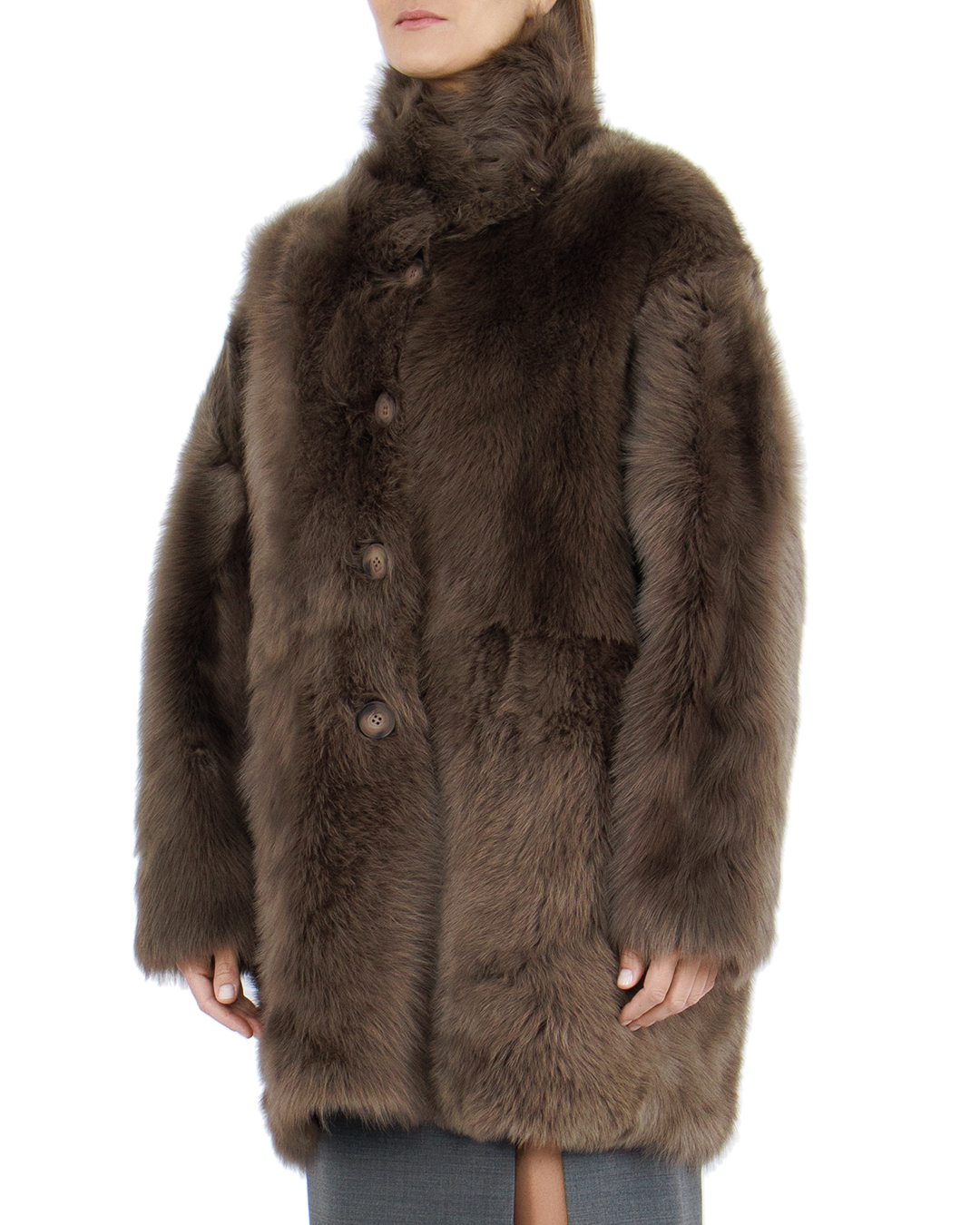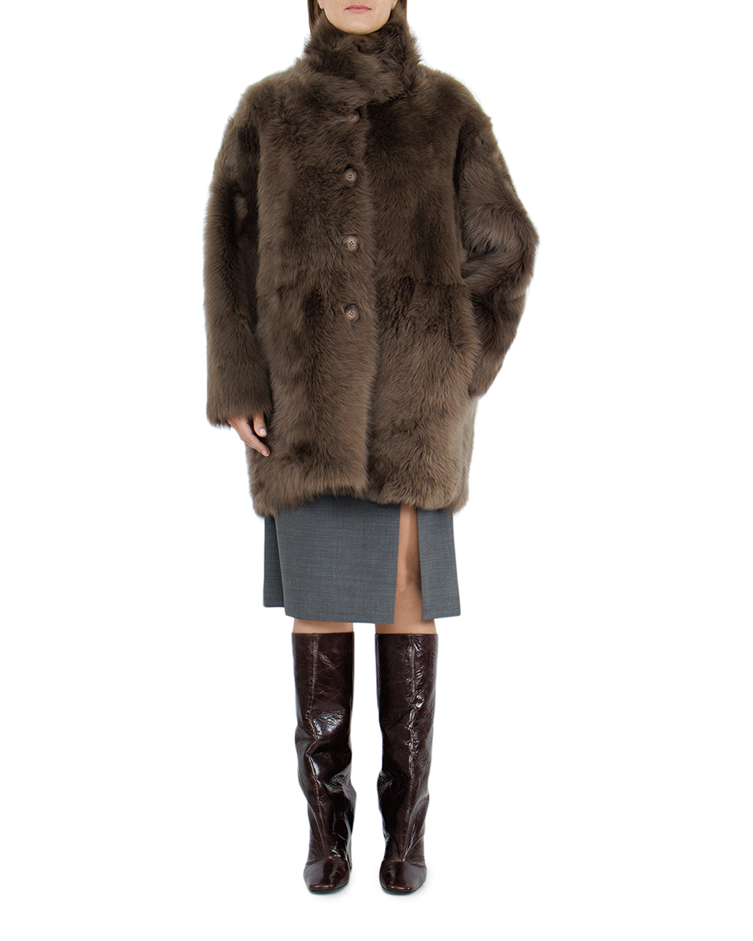 Эта стильная дублёнка представляет собой идеальный баланс между изысканностью и комфортом, воплощая в себе современное представление о роскоши. Глубокий шоколадный оттенок меха создаёт эффект благородства и утончённого вкуса, подчёркивая премиальность изделия. Силуэт модели характеризуется прямым и расслабленным кроем, что обеспечивает комфортную посадку и лёгкость в движении. Тщательно обработанная овчина создаёт гладкую, шелковистую текстуру, акцентируя внимание на полноту цвета и благородство материала. Интегрированный воротник-стойка не только добавляет элемент рафинированности, но и обеспечивает защиту от холодного ветра, гармонично завершая образ. Просторные прорезные карманы придают модели практичность, позволяя сохранять эстетику минимализма. Крупные пуговицы, выполненные в тон основному материалу, подчёркивают вертикаль изделия, добавляя изящный акцент и завершённость. Такая дублёнка станет великолепным дополнением к любому гардеробу, предлагая безупречный стиль как для повседневной носки, так и для более формальных выходов.