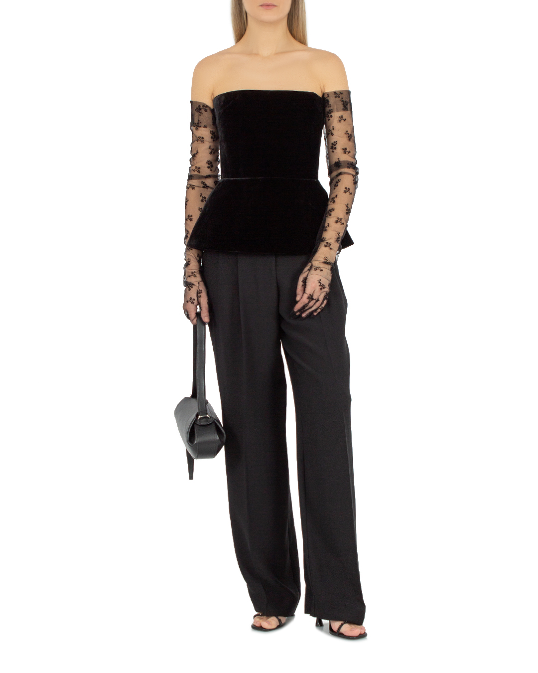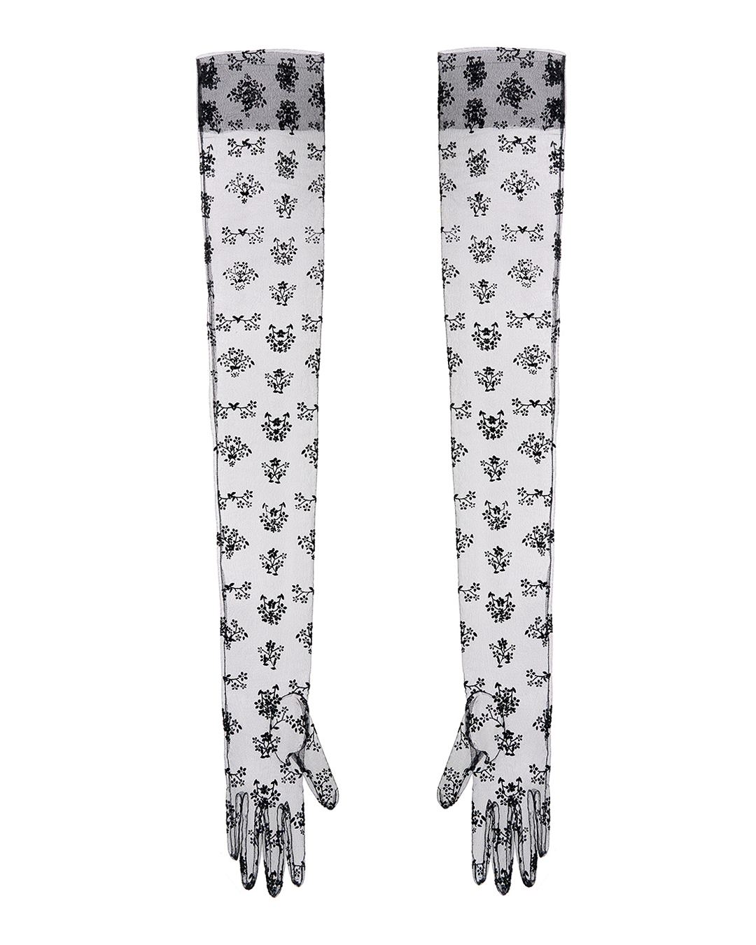 Высокие перчатки ROZIE из полупрозрачной сетки с цветочным узором.