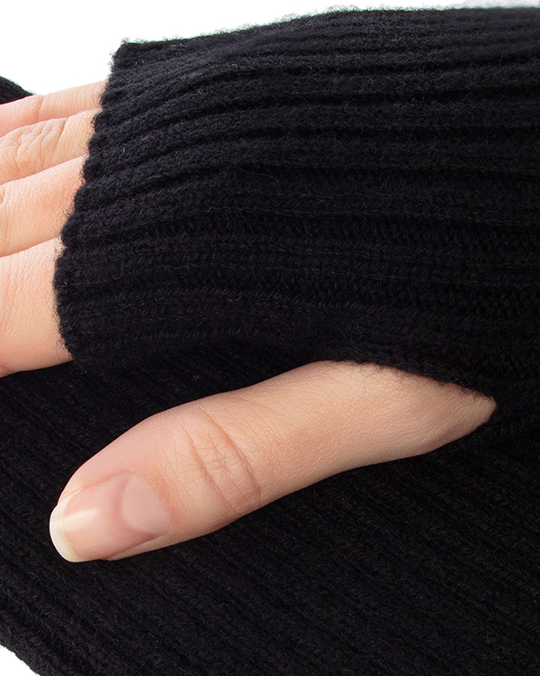 Митенки из мягкого кашемира, вискозы и шерсти черного цвета в рубчик.