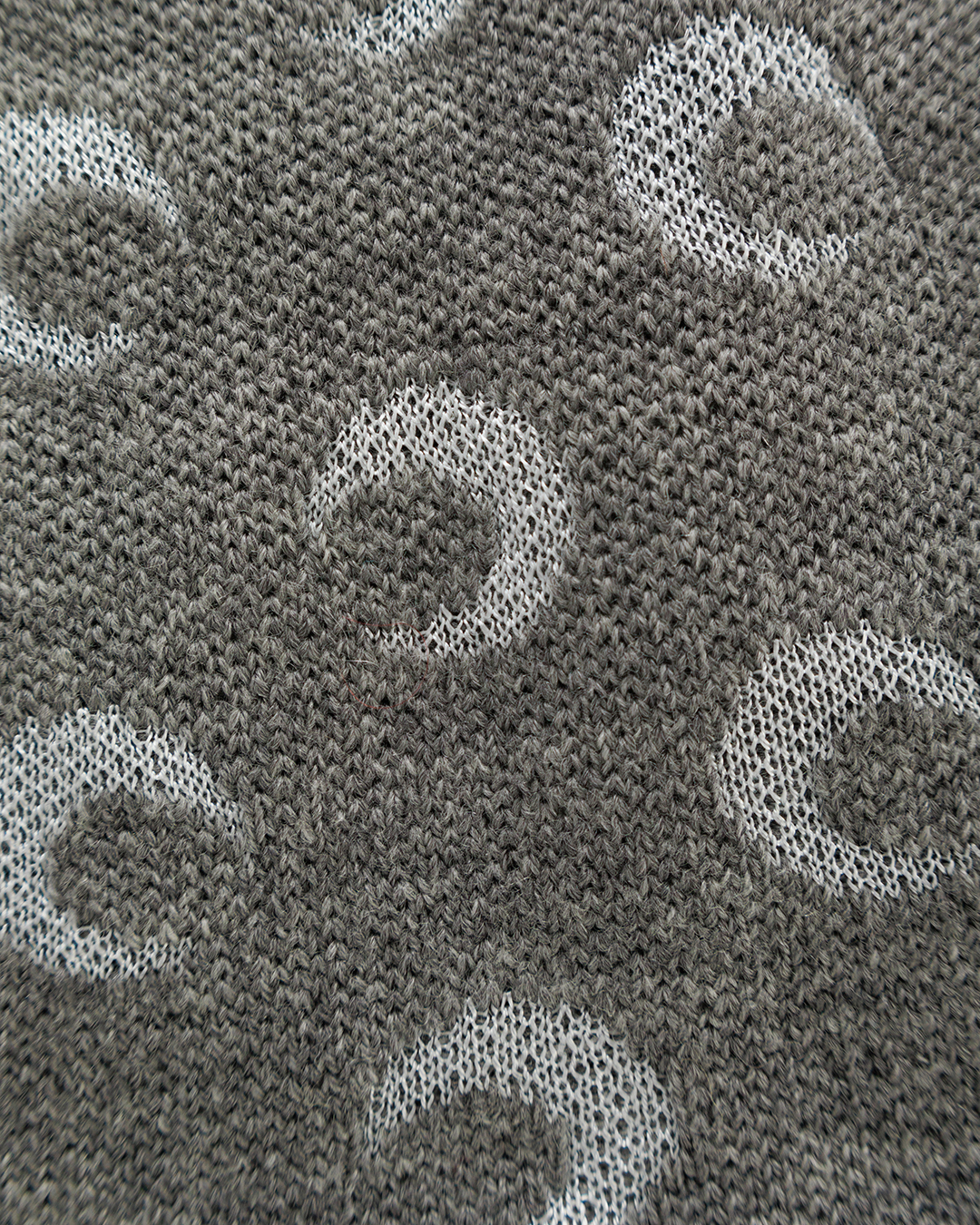 Эта балаклава воплощает изысканность современного стиля, умело сочетая минималистичный дизайн с текстурными элементами. Изделие выполнено из высококачественного трикотажа, что обеспечивает не только приятные тактильные ощущения, но и превосходную посадку по форме головы. Трикотажная основа украшена утонченным жаккардовым узором, который добавляет визуальную глубину и объем. Серо-коричневый базовый тон балаклавы выгодно контрастирует с серебристыми полумесяцами, создавая эффект игры света и тени. Отделка выполнена с использованием метода аккуратной обвязки, что придает изделию завершенный и утонченный вид. Линия вокруг лица обрамлена более плотной вязкой, что не только добавляет функциональности в виде защиты от ветра, но и визуально акцентирует внимание на линиях формы. Нижний край изделия оформлен эластичной манжетой, обеспечивающей надежное прилегание и комфорт при ношении. Такая балаклава становится не только функциональным элементом гардероба, но и стильным акцентом, способным дополнить как повседневный, так и спортивный образ.