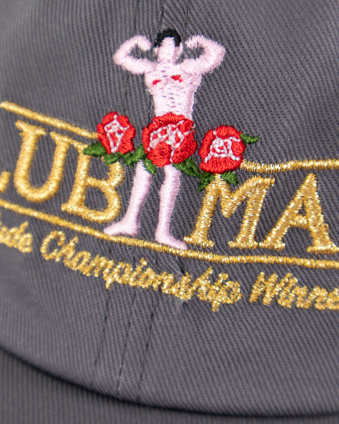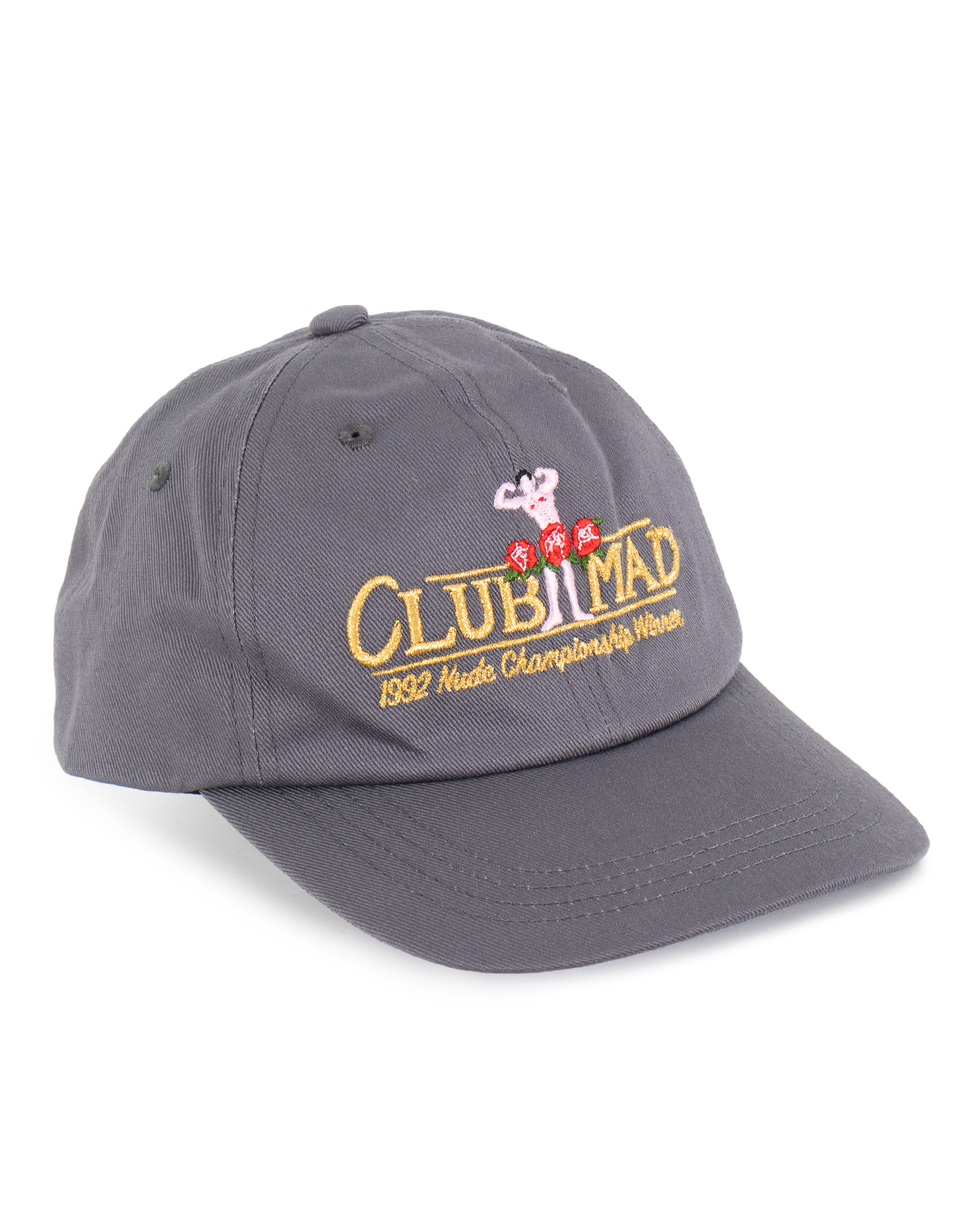 Базовые кепки с контрастными вышивками - один из важнейших трендов в этом сезоне. Эта кепка серого цвета Carne Bollente, украшенная яркой вышивкой "Club Mad 1992" спереди.