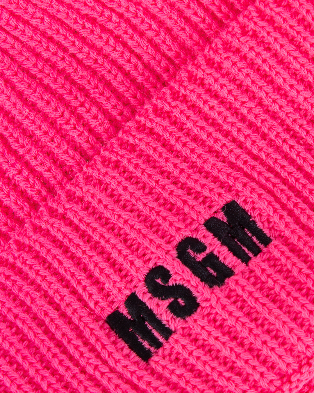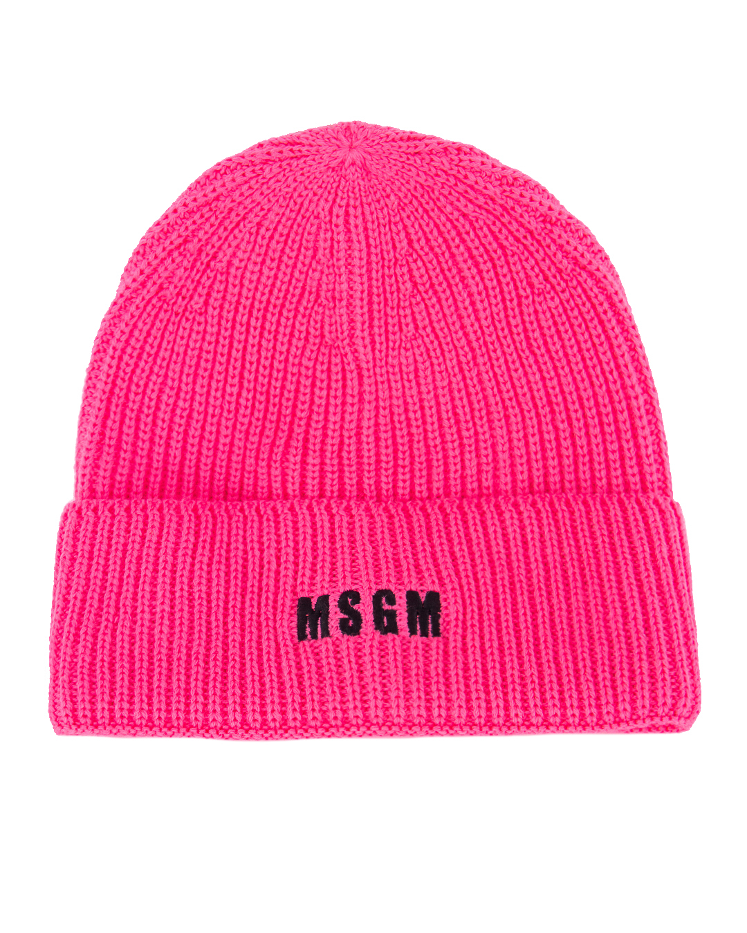 Вязаная шапка MSGM из смесовой шерсти в крупный рубчик с вышивкой логотипа бренда. Эластичное изделие с широким отворотом.