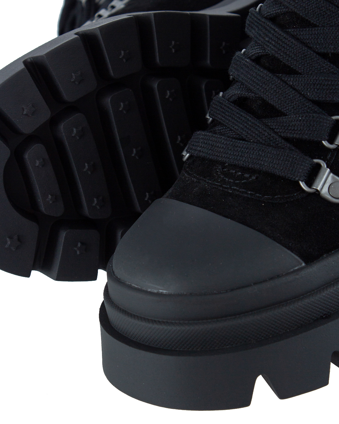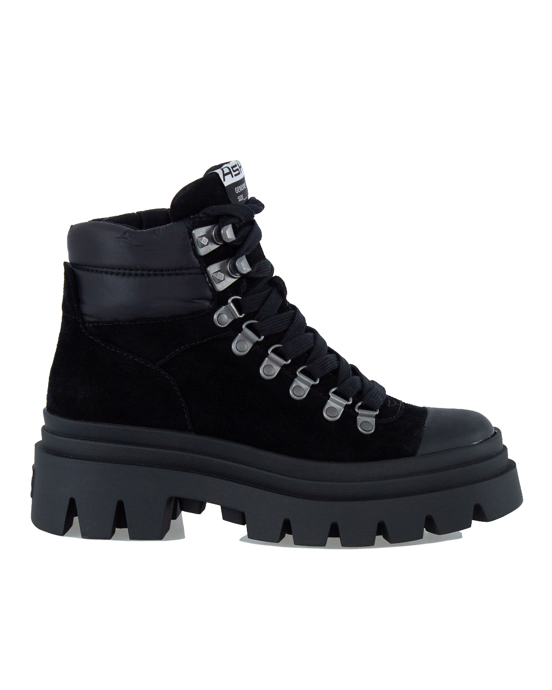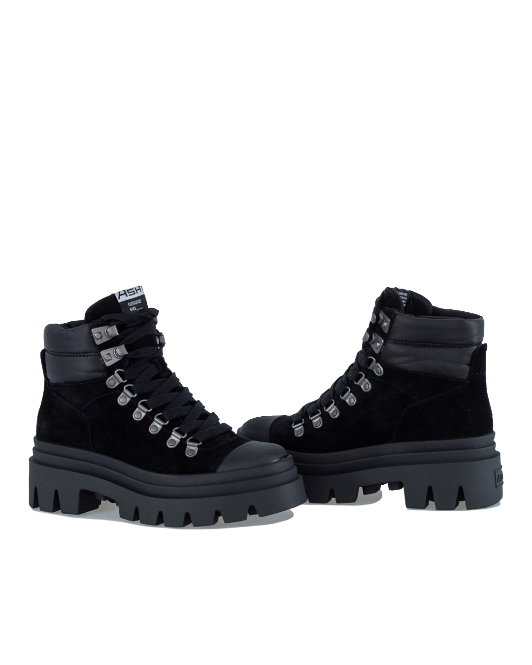 Кожаные ботинки ASH с треккинговой шнуровкой. Пара на ребристой резиновой подошве с закругленным мысом с отделкой.
