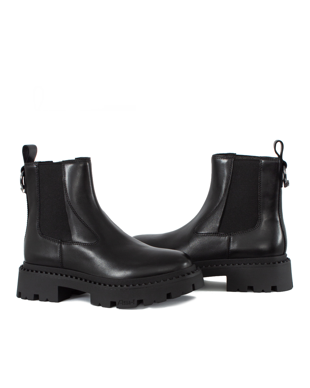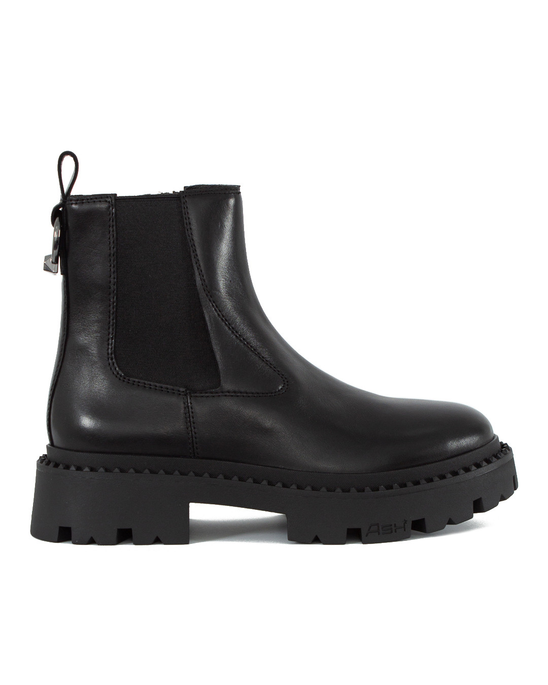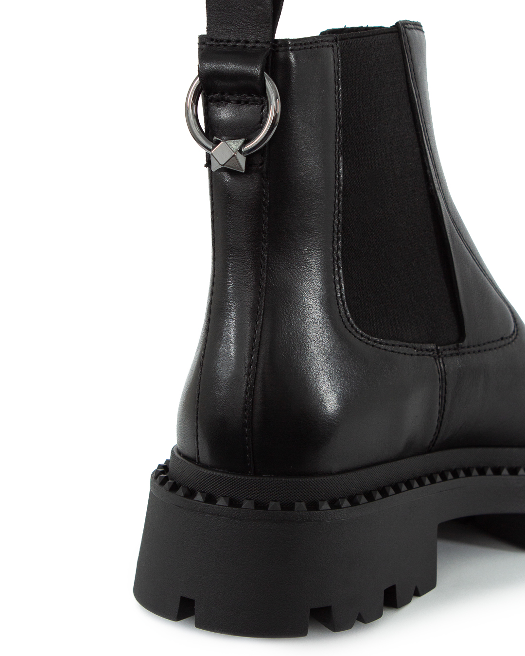 Классические ботинки челси GENESIS RING выполнены из натуральной кожи черного цвета с эластичными вставками по бокам и украшены петелькой на голенище с металлическим кольцом, имитирующим пирсинг. Массивная подошва с глубоким протектором и объемным узором вдоль ранта обеспечивает устойчивость и поддерживает брутальное настроение пары.