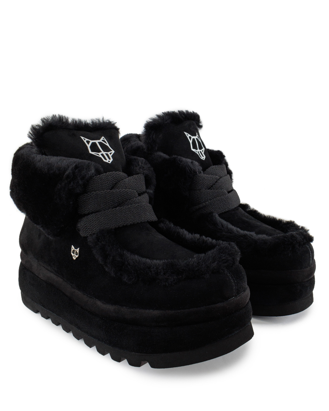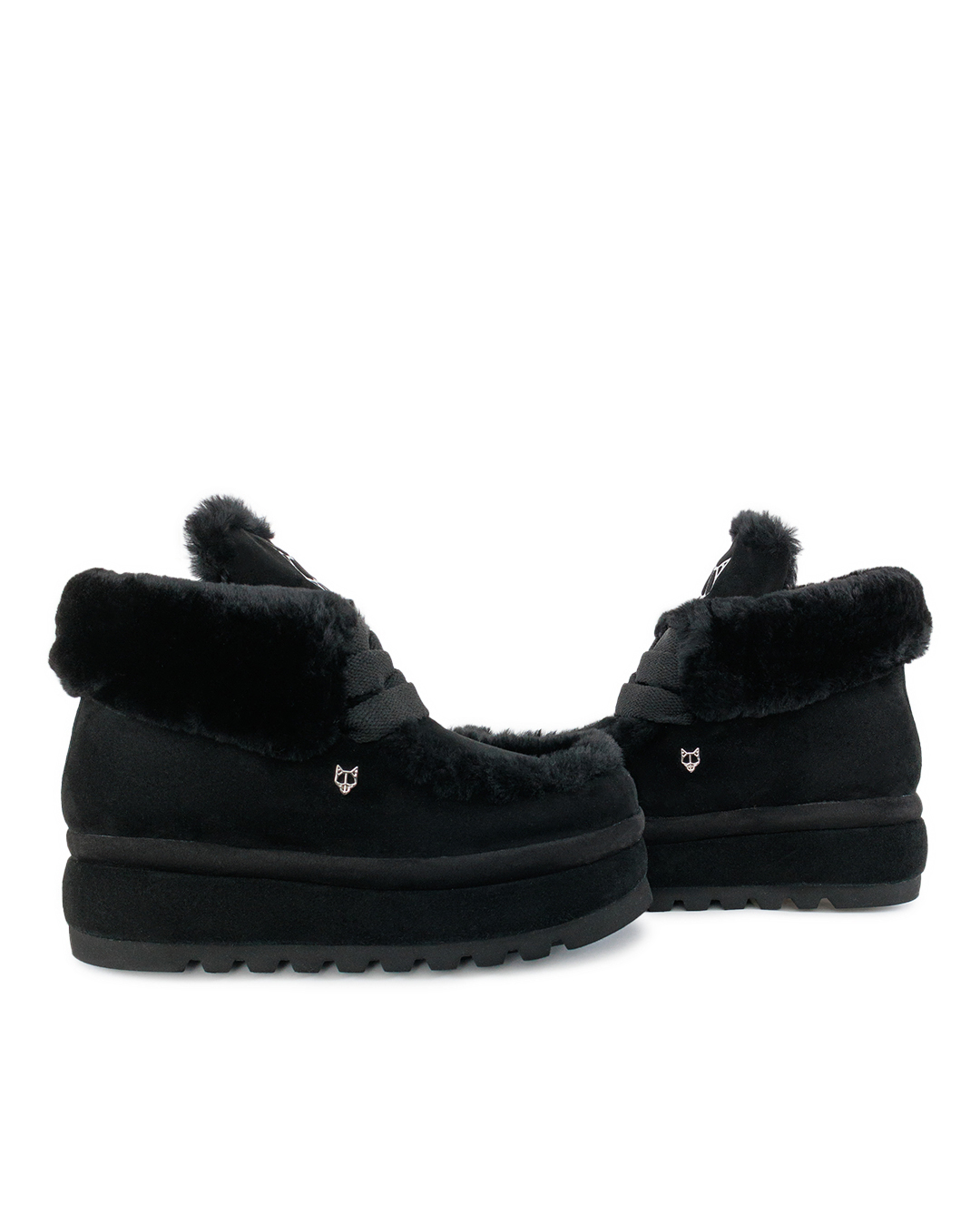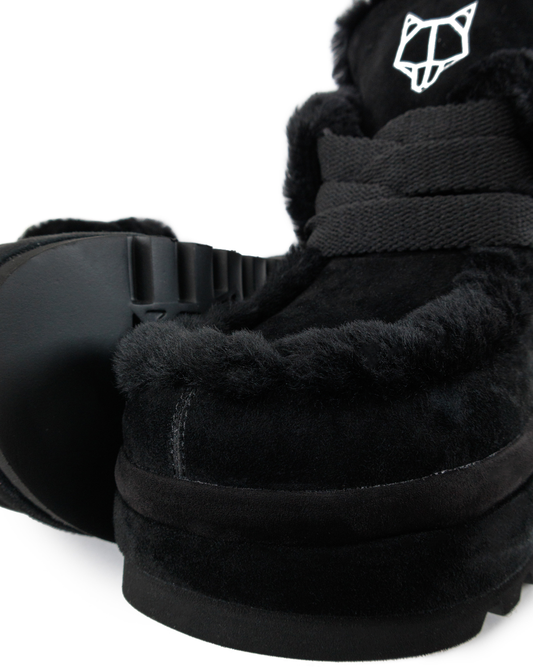 Эти ботинки — воплощение изящной элегантности и современного стиля. Верх выполнен из высококачественной черной замши, которая придает модели изысканность и утонченность. Окантовка из мягкого меха того же оттенка создает сложную игру текстур, добавляя глубину и богатство образу. Подошва с релефным протектором не только обеспечивает надежное сцепление с любой поверхностью, но и создает эффектный акцент на силуэте. Внутренний меховой утеплитель гарантирует тепло и комфорт в течение всего дня. Миниатюрный металлический логотип сбоку представляет собой утонченную деталь, подчеркивающую брендовый стиль и изысканность. Мягкие шнурки дополняют образ, добавляя нотку игривости и уюта. Эти ботинки станут стилевым акцентом вашего гардероба, позволяя выразить индивидуальность и вкус в каждом шаге, гарантируя комфорт и уверенность в любые погодные условия.