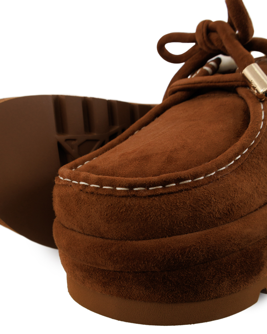 Эти ботинки — воплощение стиля и комфорта, соединяющие в себе элегантность и инновационный дизайн. Верх выполнен из высококачественной замши насыщенного коричневого оттенка, который дарит ощущение теплоты и уюта. Отличительной чертой являются декоративные строчки контрастного цвета, которые добавляют шарма и выделяют дизайн в общей композиции. Внимание приковывает изящный узелок спереди, который служит изысканным акцентом, подчеркивающим креативный подход в деталях. Устойчивость и комфорт достигаются за счет рельефной подошвы, обеспечивающей уверенное сцепление с поверхностью. Внутри ботинок удобно и тепло благодаря мягкой подкладке, придающей дополнительное ощущение комфорта. Декоративный элемент в виде объемного логотипа, украшающего боковую часть, придает обуви индивидуальность и подчёркивает статус. Эти ботинки — выбор для тех, кто ценит стиль и качество, стремясь выделяться в любой обстановке.