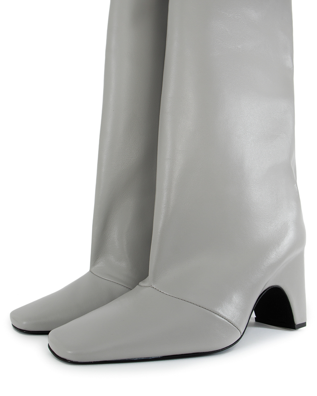 Высокие сапоги COPERNI, выполненные из качественной натуральной кожи серого цвета, идеально сочетают в себе стиль и комфорт. Широкое голенище обеспечивает удобную посадку и позволяет легко надевать и снимать обувь, что делает их отличным выбором для повседневной носки. Модель с квадратным мысом придает обуви современный и актуальный вид, а скошенный каблук добавляет нотку оригинальности и женственности. Высота каблука обеспечивает хорошую поддержку, позволяя вам чувствовать себя уверенно на протяжении всего дня. Сапоги COPERNI прекрасно подойдут как для создания элегантного образа в сочетании с платьями и юбками, так и для более casual-луков с джинсами или брюками. Их универсальный серый цвет легко комбинируется с различными оттенками, что делает эту модель незаменимой в вашем гардеробе. Дополните свой стиль этими высокими кожаными сапогами COPERNI и подчеркните свою индивидуальность!