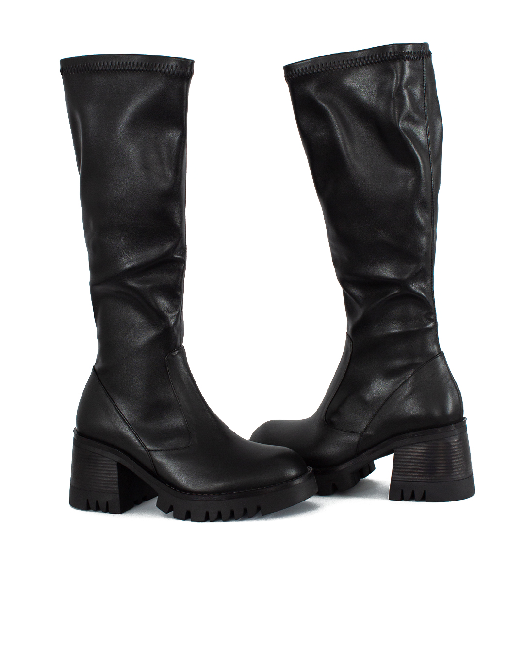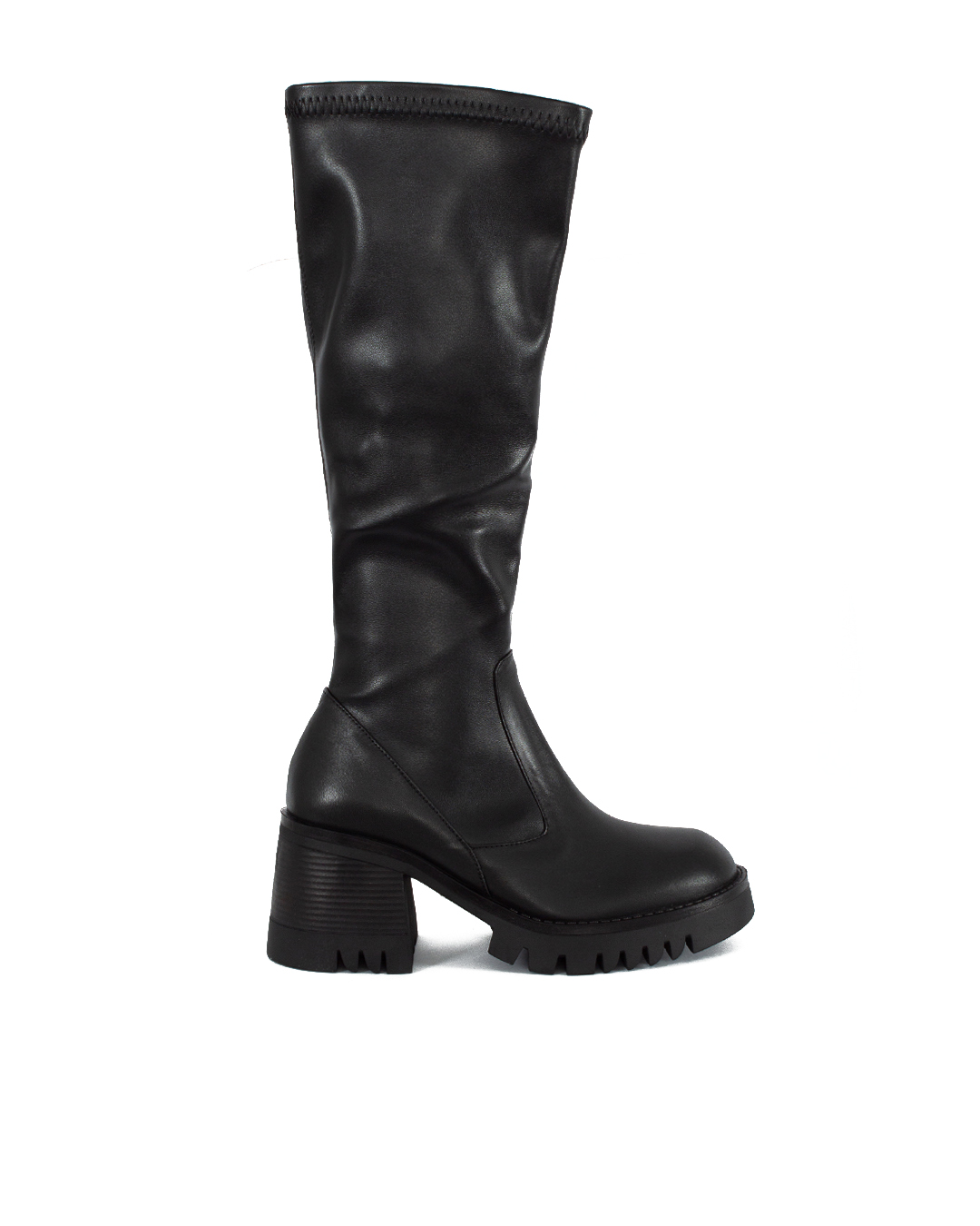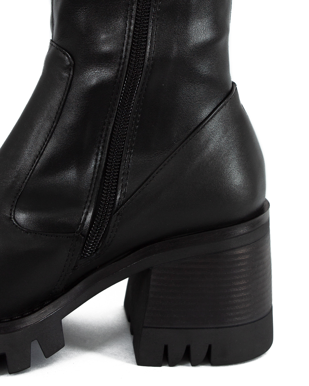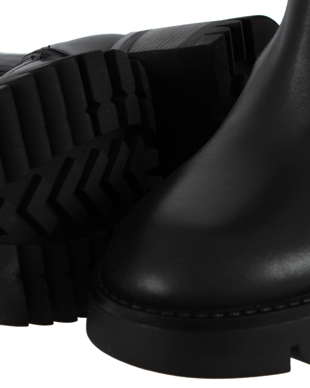 Высокие сапоги DICCI из натуральной кожи. Пара с закругленным мысом и застежкой на молнию дополнена резиновой подошвой с устойчивым каблуком и протектором.