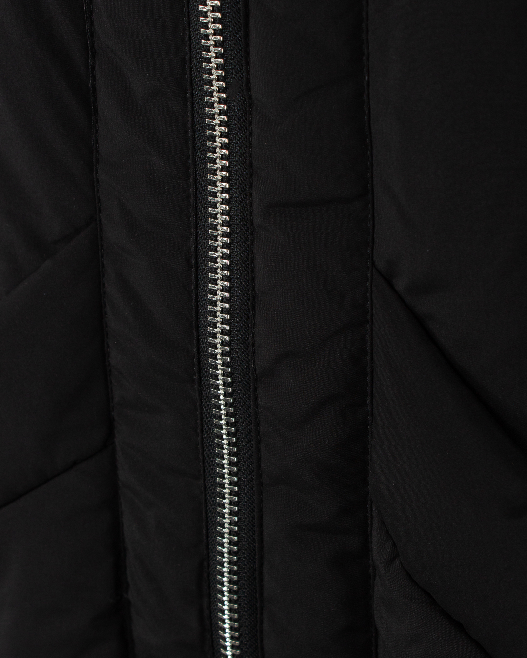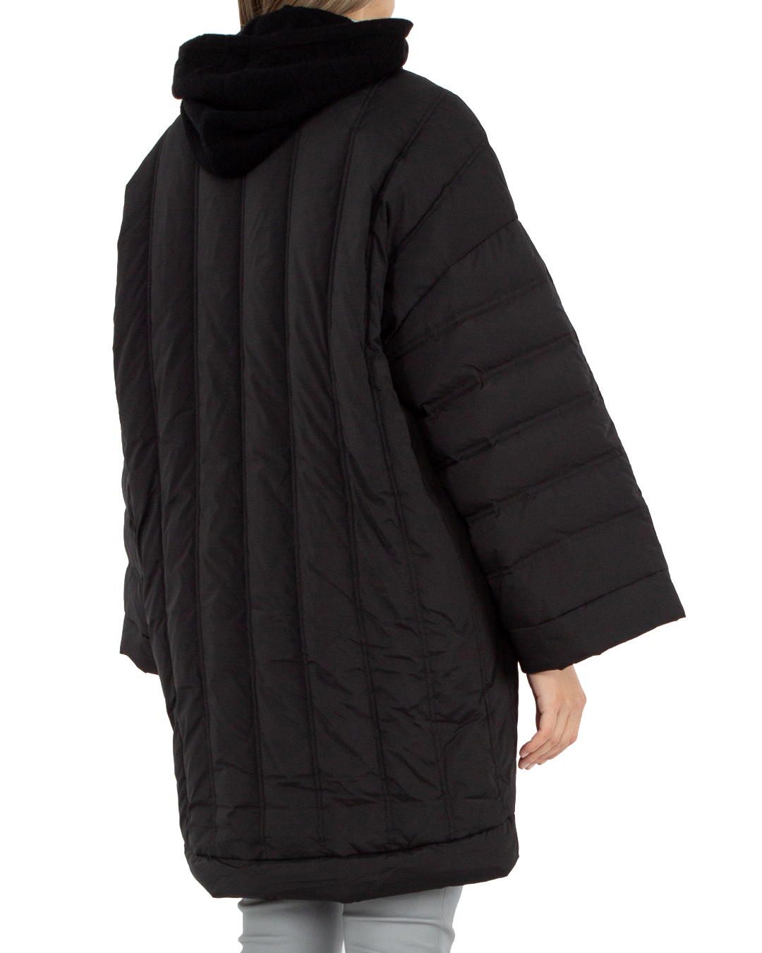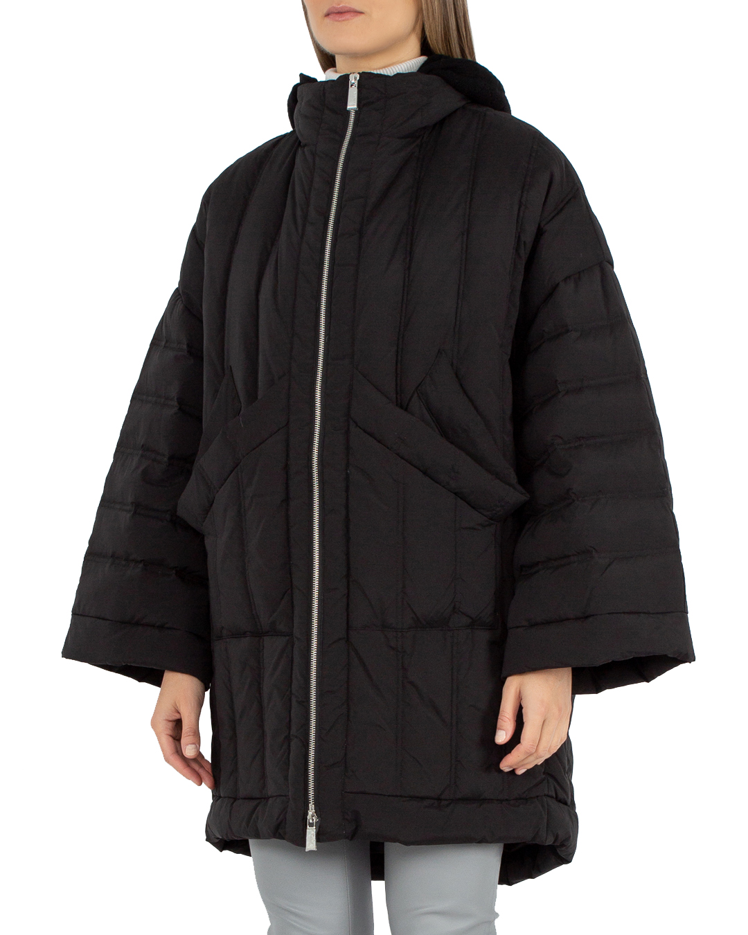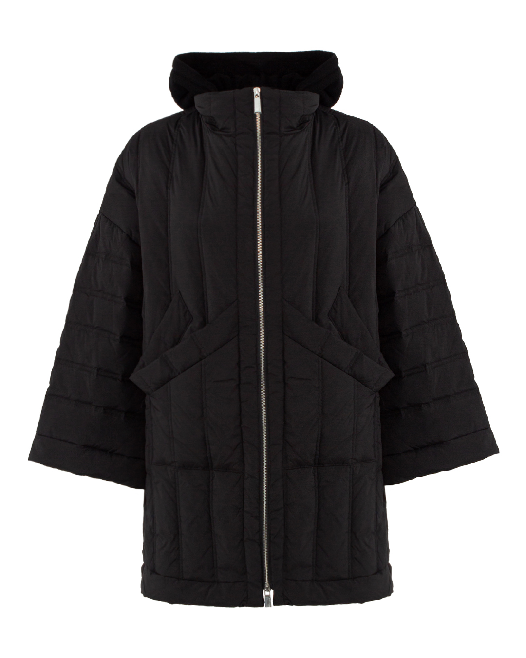 Стеганая куртка MAX&MOI из прочного матового нейлона, утепленная пухом и пером. Модель прямого свободного силуэта с застежкой на молнию. Изделие дополнено карманами и внутренним кашемировым жилетом с капюшоном.