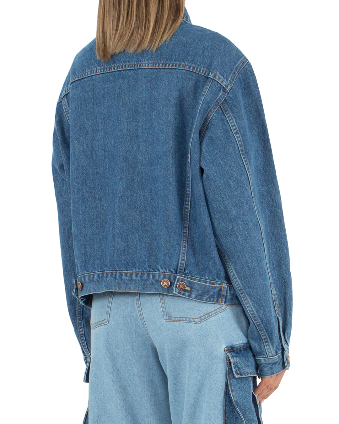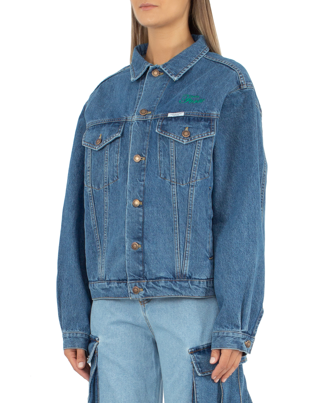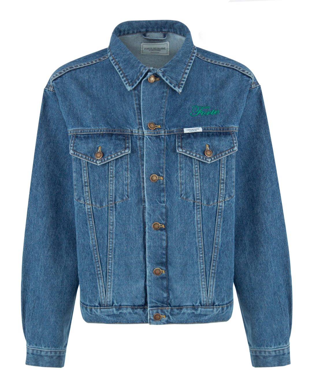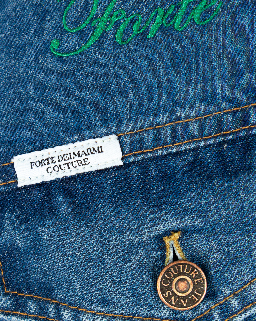 Джинсовая куртка Forte Dei Marmi Couture сшита из плотного хлопкового денима синего оттенка с потертостями. Модель прямого силуэта с застежкой на пуговицы и отложным воротником.
