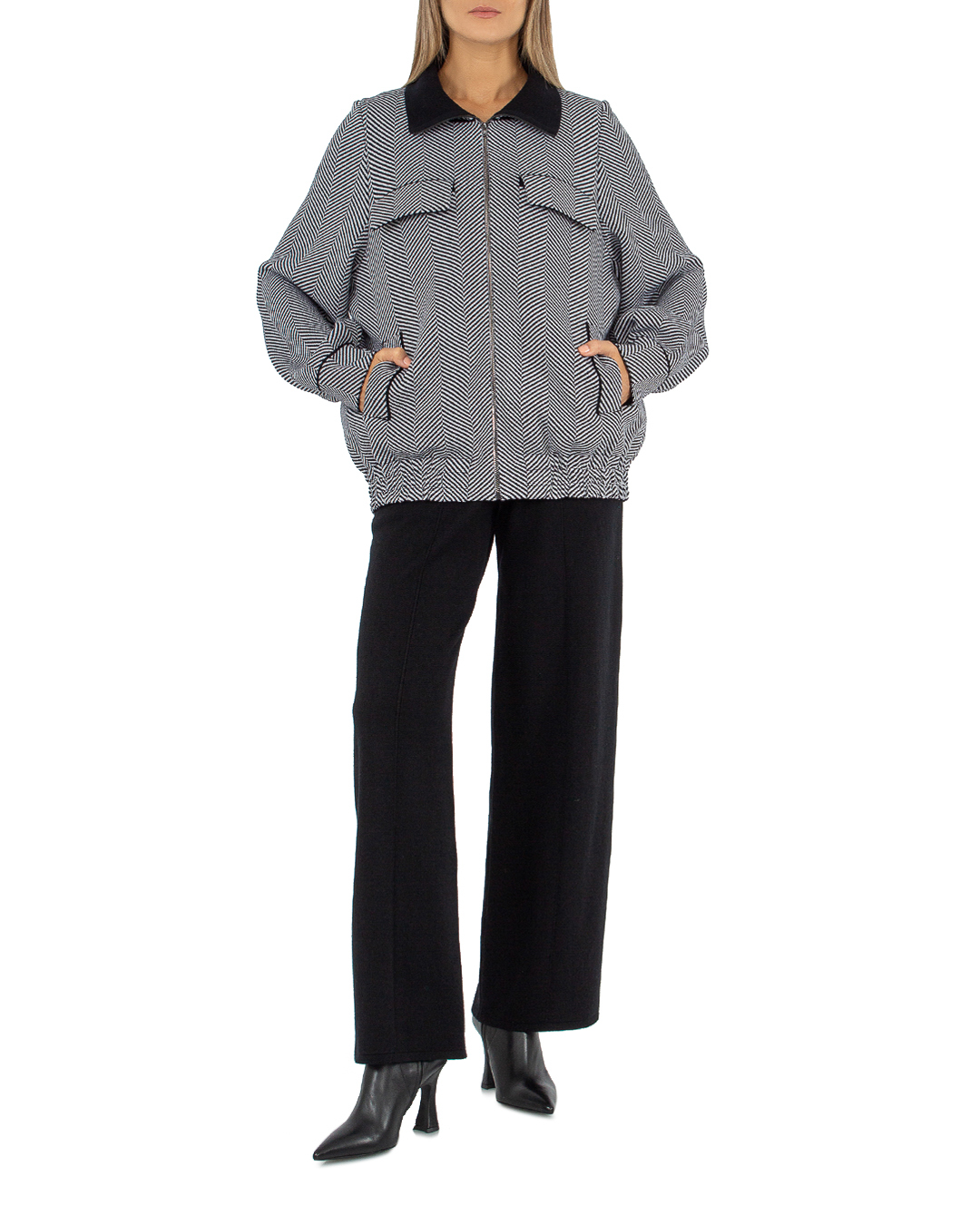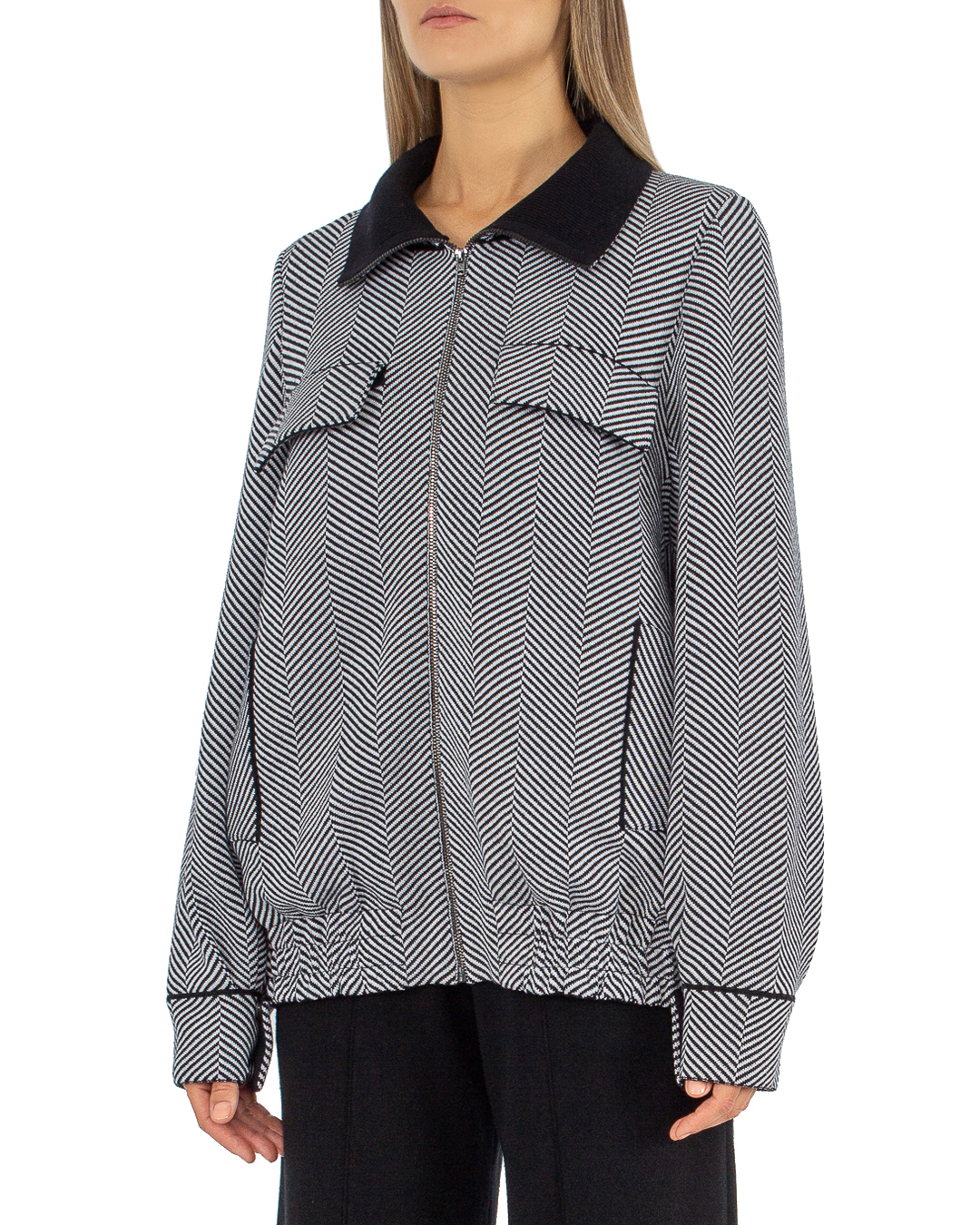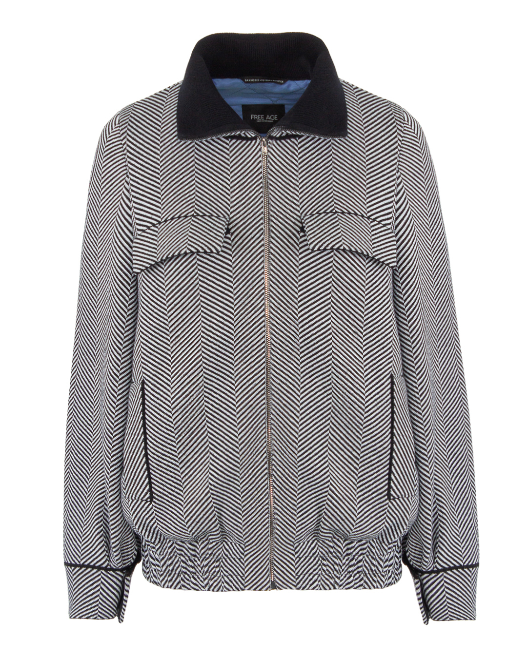 Куртка Free Age из шерсти в рубчик. Изделие объемного силуэта с застежкой на молнию и несколькими карманами дополнено отложным воротником и широкой эластичной линией низа.