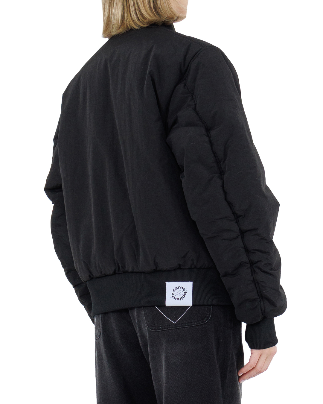 Этот бомбер воплощает в себе все черты современного урбанистического стиля, сочетающего в себе удобство и актуальные тенденции. Выполненный из прочного материала в универсальном черном цвете, он является идеальной основой для создания стильных образов. Классический воротник-стойка и манжеты из эластичного трикотажа формируют узнаваемый силуэт и добавляют ощущение комфорта. Центральная молния, выполненная в металлическом серебряном оттенке, добавляет изделию эффектности и современности. Рельефные швы подчеркивают геометрию и строгую структуру дизайна. Функциональный карман на рукаве с молнией и дополнительные боковые карманы добавляют практичности и подчеркивают акценты, характерные для классического бомбера. Минималистичная вышивка на груди привносит в образ изысканность, создавая ненавязчивый и утонченный брендовый штрих. Этот бомбер идеально подходит для создания динамичных и современных луков, легко сочетаясь с разнообразной одеждой, от джинсов до более элегантных вещей, подчеркивая стиль и уверенность владельца.