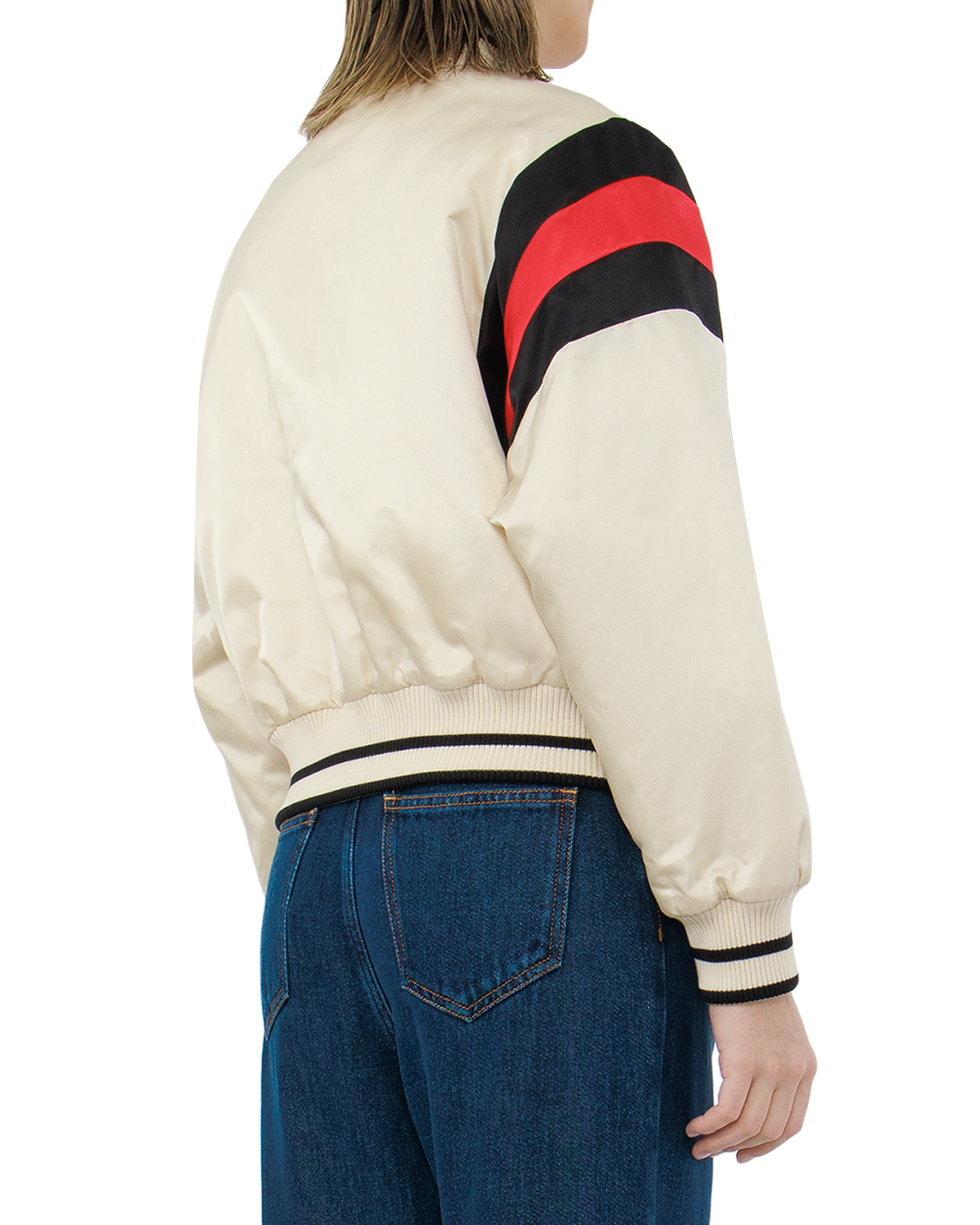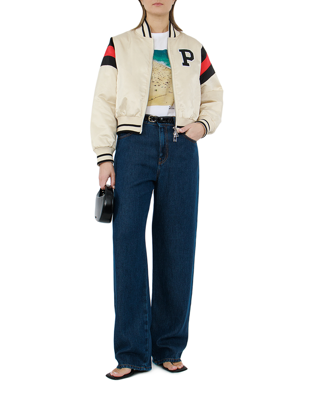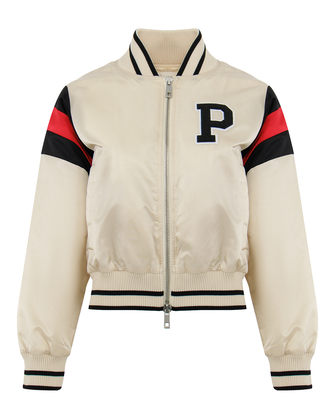 Этот бомбер от P.A.R.O.S.H. представляет собой стильное сочетание ретро-эстетики и современного спортивного шика. Изготовленный из прочной ткани, он обеспечивает комфорт и долговечность, оставаясь при этом легким и практичным. Нежный бежевый оттенок придает модели элегантность и универсальность, отлично выделяя контрастные детали. Черно-красные полосы на рукавах добавляют динамичности и создают модный акцент. Бомбер украшен крупной аппликацией с буквой "P" на груди, придающей изделию индивидуальность и демонстрирующей брендовый стиль. Это также отсылает нас к классическим спортивным традициям. Эластичные резинки на манжетах, воротнике и нижнем крае выполнены с контрастными полосами, обеспечивая удобную фиксацию и дополнительный стильный элемент. Застежка-молния добавляет функциональности и завершает образ. Этот бомбер — идеальное решение для тех, кто ценит сочетание винтажа и современной моды, стремится выразить индивидуальность в повседневном образе.