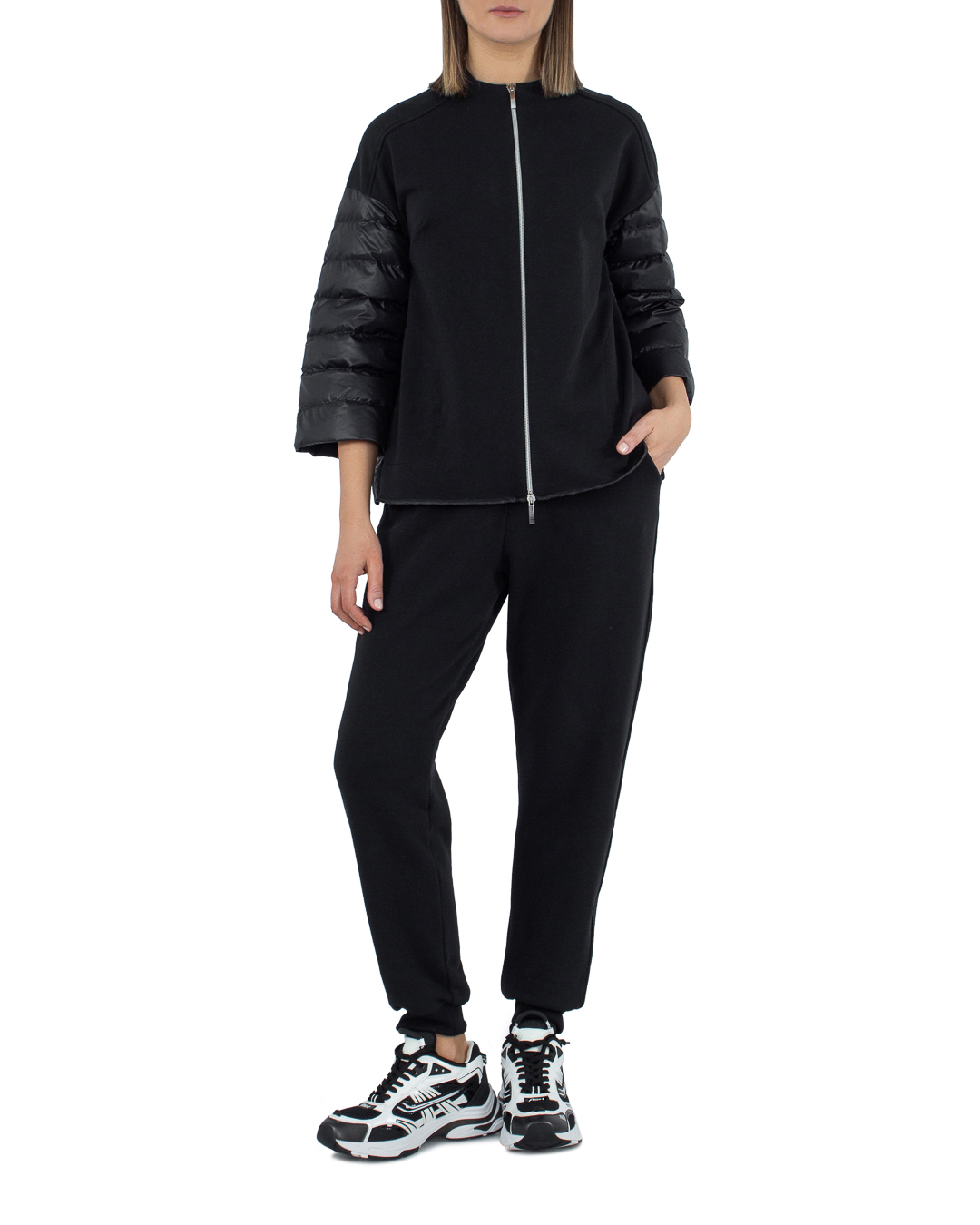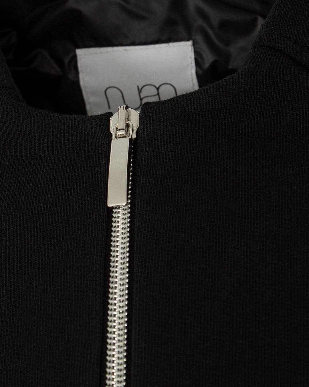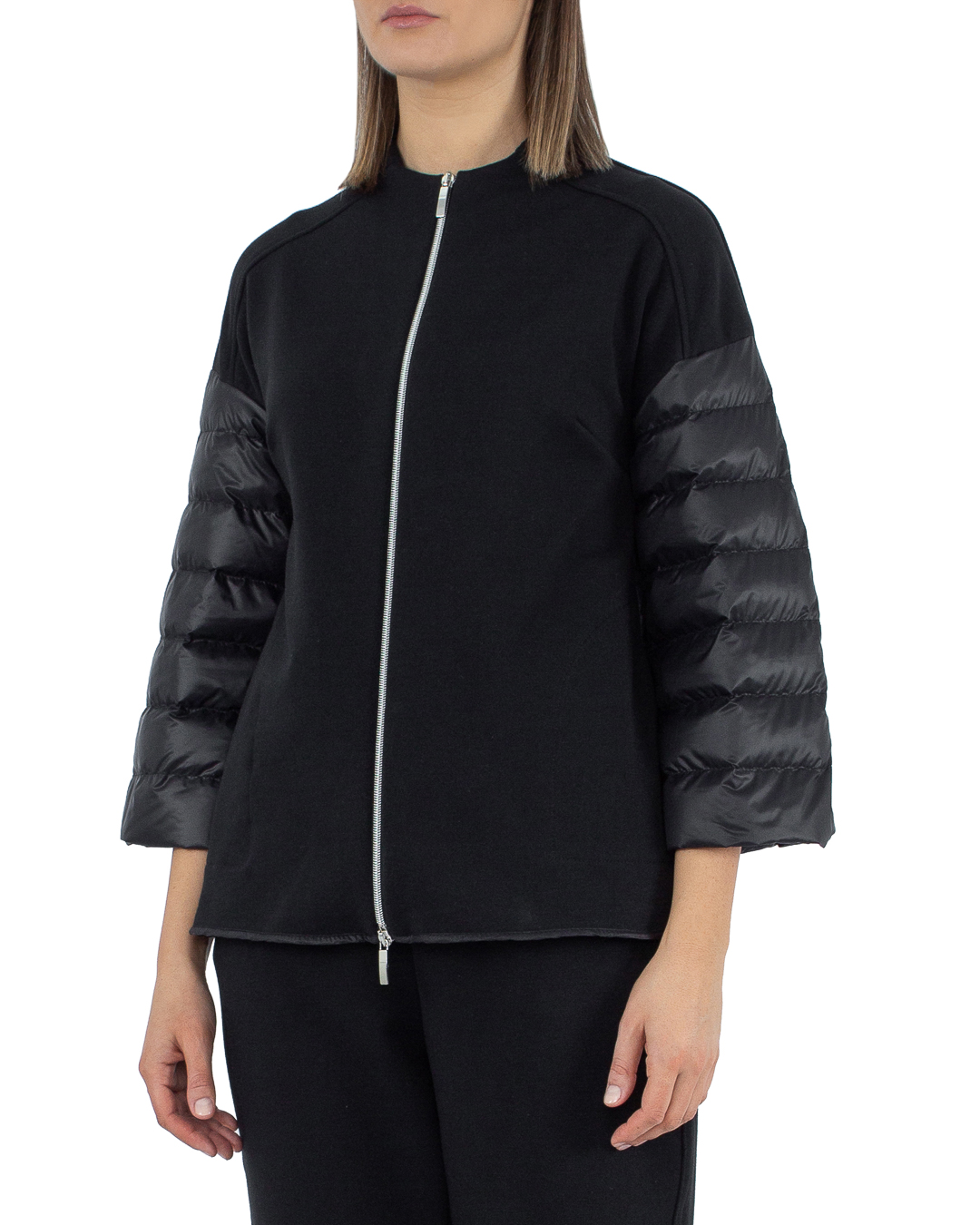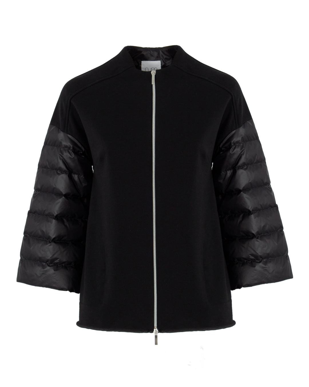 Куртка прямого силуэта с застежкой на молнию дополнена стегаными рукавами из прочного нейлона. Изделие дополнено двумя карманами по бокам.