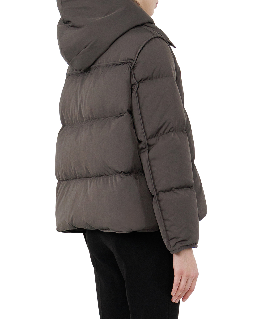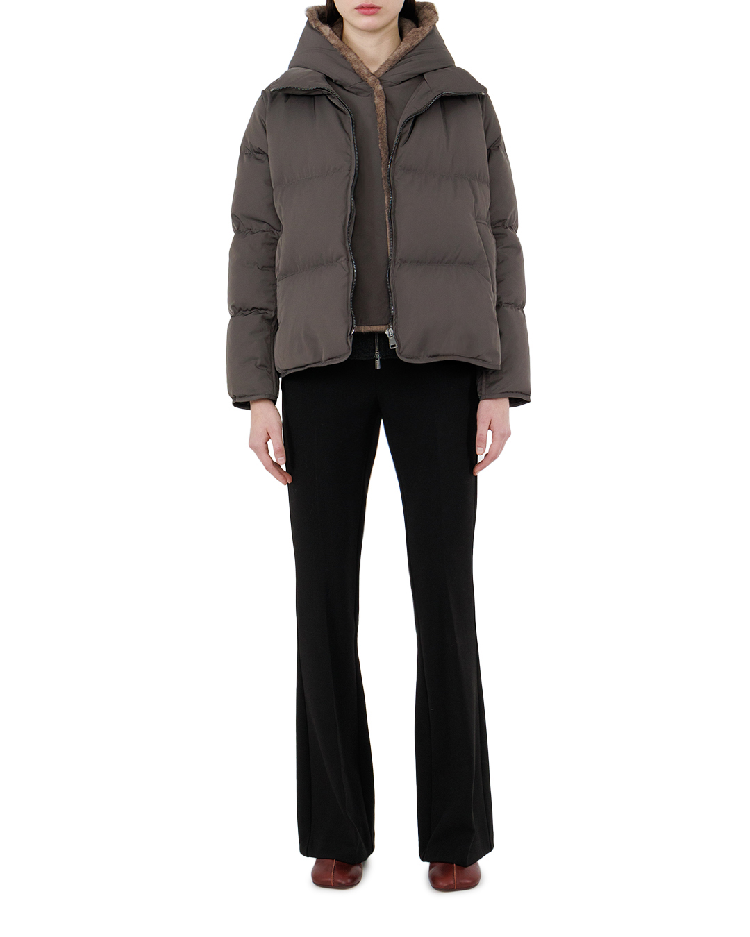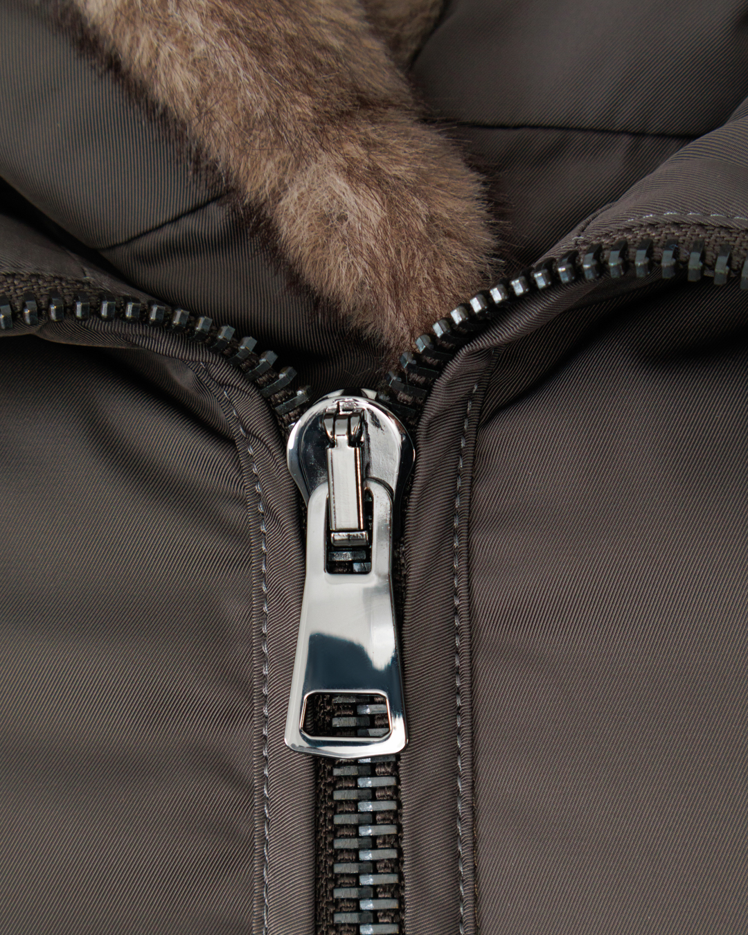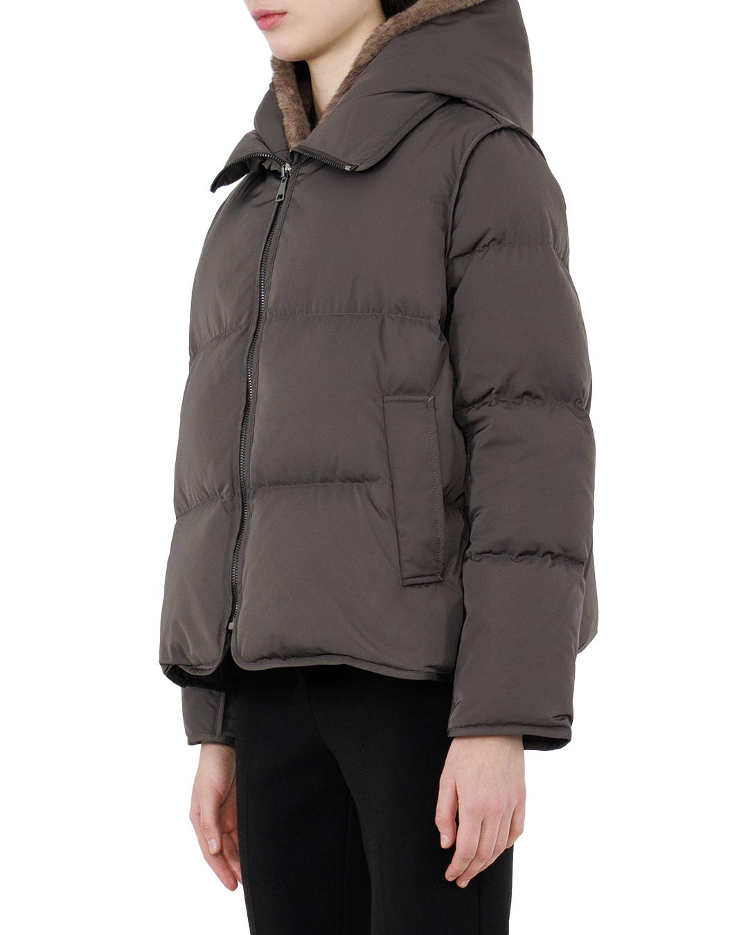 Эта двусторонняя куртка — вершина стиля и функциональности. С одной стороны, она представлена в сдержанном оттенке угольного серого, который органично встраивается в любой гардероб. Изготовлена из современной водоотталкивающей ткани, эта куртка станет идеальным выбором для защиты от непогоды. Обратная сторона выполнена из мягкого искусственного меха глубокого шоколадного цвета, добавляющего тепло и изысканность. Капюшон с меховой отделкой создаёт особый акцент, добавляя текстурный контраст и роскошное обрамление лицу. Прямой крой с утолщенной стёжкой обеспечивает комфорт и стиль, подчёркивая современный городской силуэт. Двухсторонняя молния не только практична, но и позволяет легко менять облик куртки, адаптируя её под настроение. Элегантные прорезные карманы с потайными застежками подчёркивают минимализм и функциональность, сохраняя все необходимые мелочи в безопасности. Эта куртка станет вашим универсальным союзником, сочетая стиль и комфорт в любом сезоне.