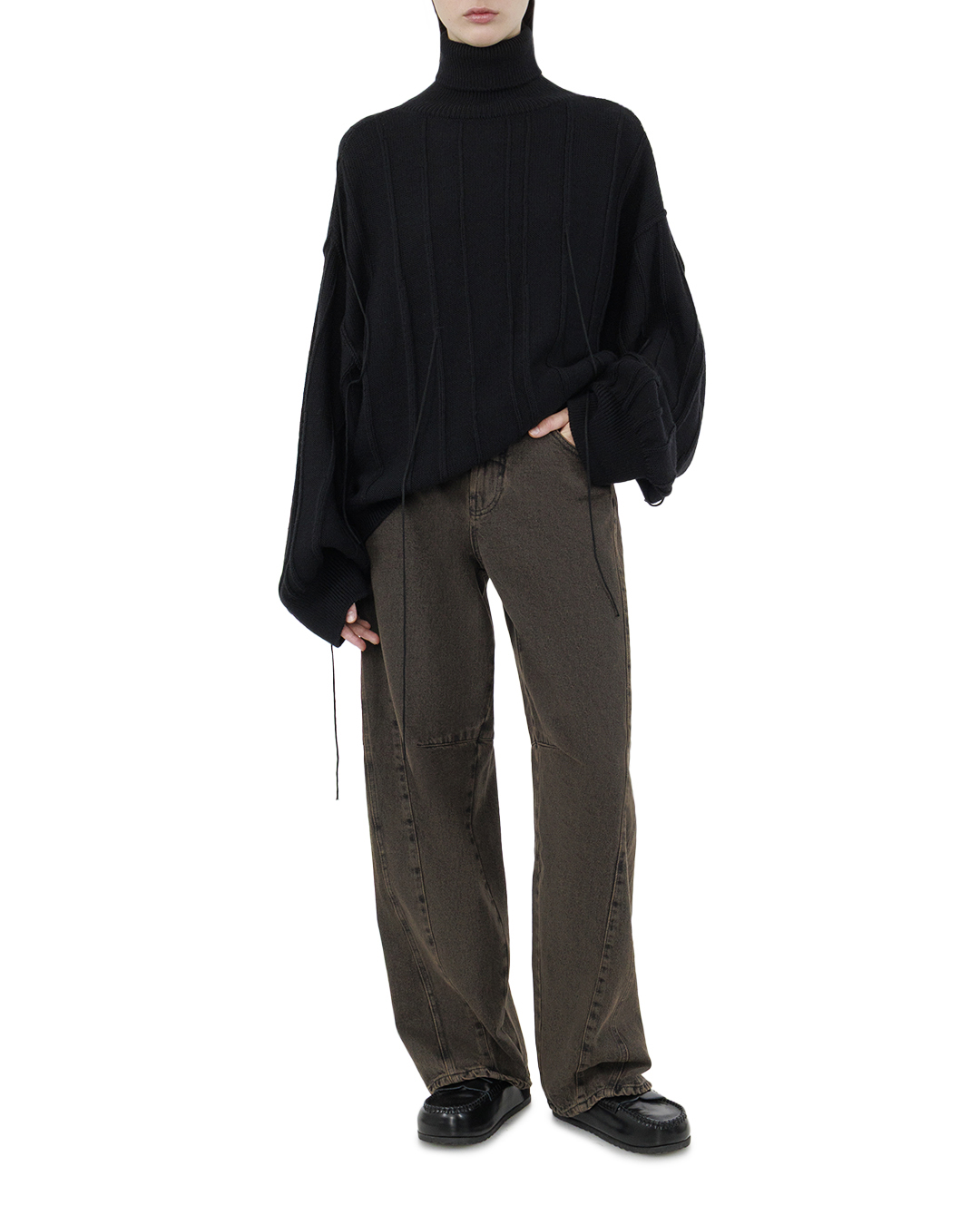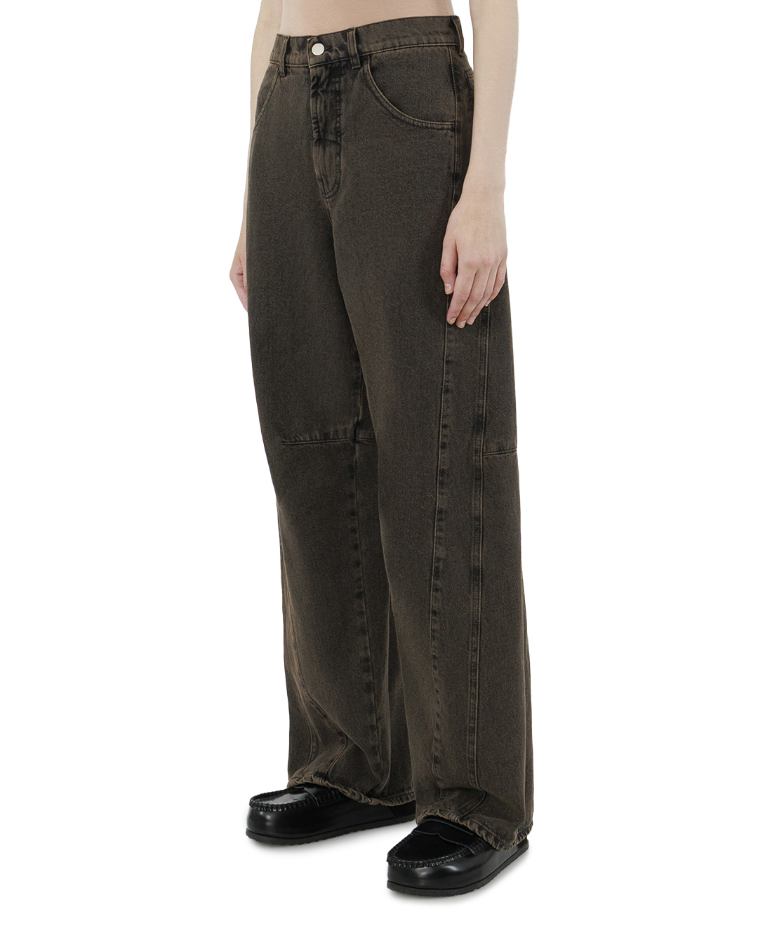 Эти джинсы — воплощение дерзкого стиля и современной эстетики. Выполненные в винтажной обработке, они придают образу характерную небрежность и уникальность, которые подчеркивают вашу индивидуальность и уверенность. Широкий крой и высокая посадка создают комфортный и изысканный силуэт, удлиняя ноги и обеспечивая свободу движений. Такая форма гармонично сочетается с любой обувью, от массивных ботинок до изящных туфель на каблуке. Элементы конструкции, такие как декоративные строчки и видимые швы, добавляют джинсам графичности и динамики. Они подчёркивают мастерство пошива, привлекая внимание к деталям и создавая визуальный интерес. Качественная фурнитура, включая металлические пуговицы и заклепки, усиливает прочность и дополнительно акцентирует ретро-эстетику. Боковые карманы функциональны и стильны, дополняя практичностью общую концепцию. Эти джинсы легко интегрируются в любой гардероб, сочетаясь как с базовыми топами, так и с эффектными блузами, позволяя создавать различные образы — от повседневного до вечернего, подчеркивая вашу стильную утонченность и современный подход к моде.